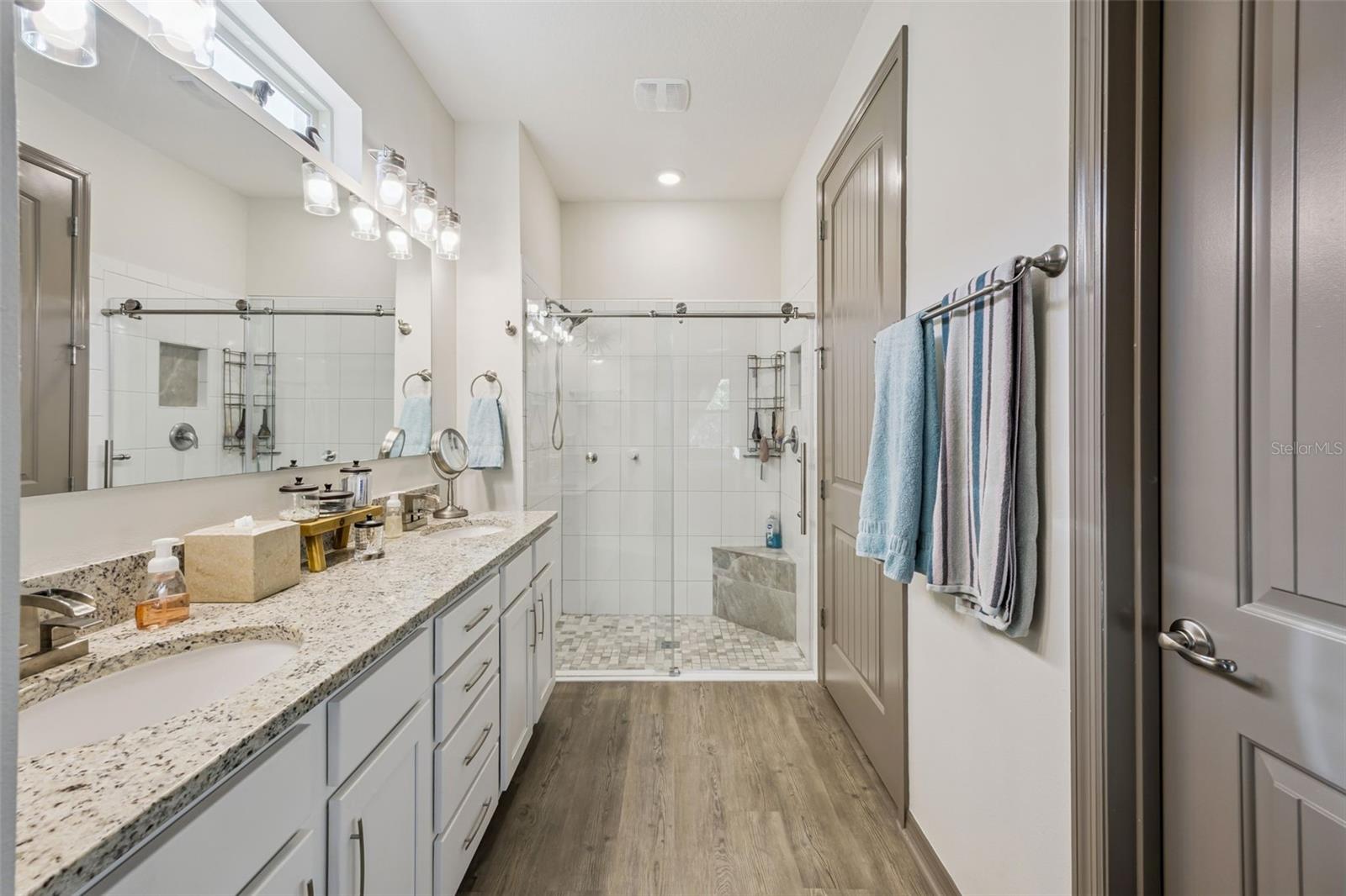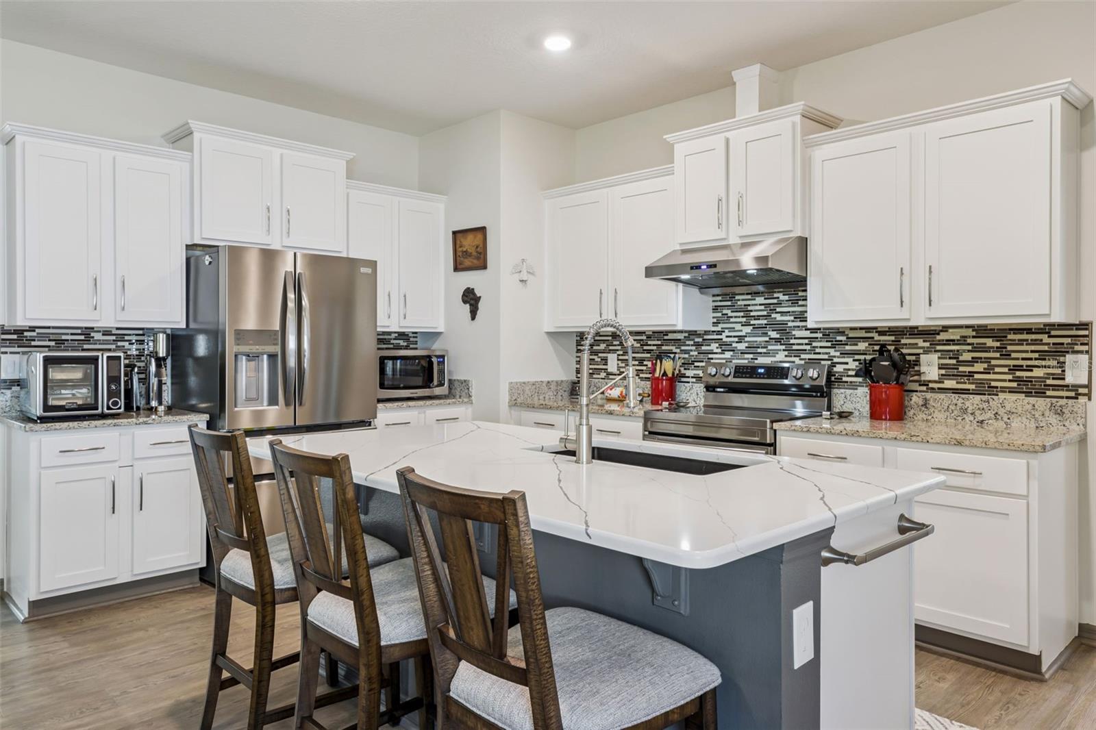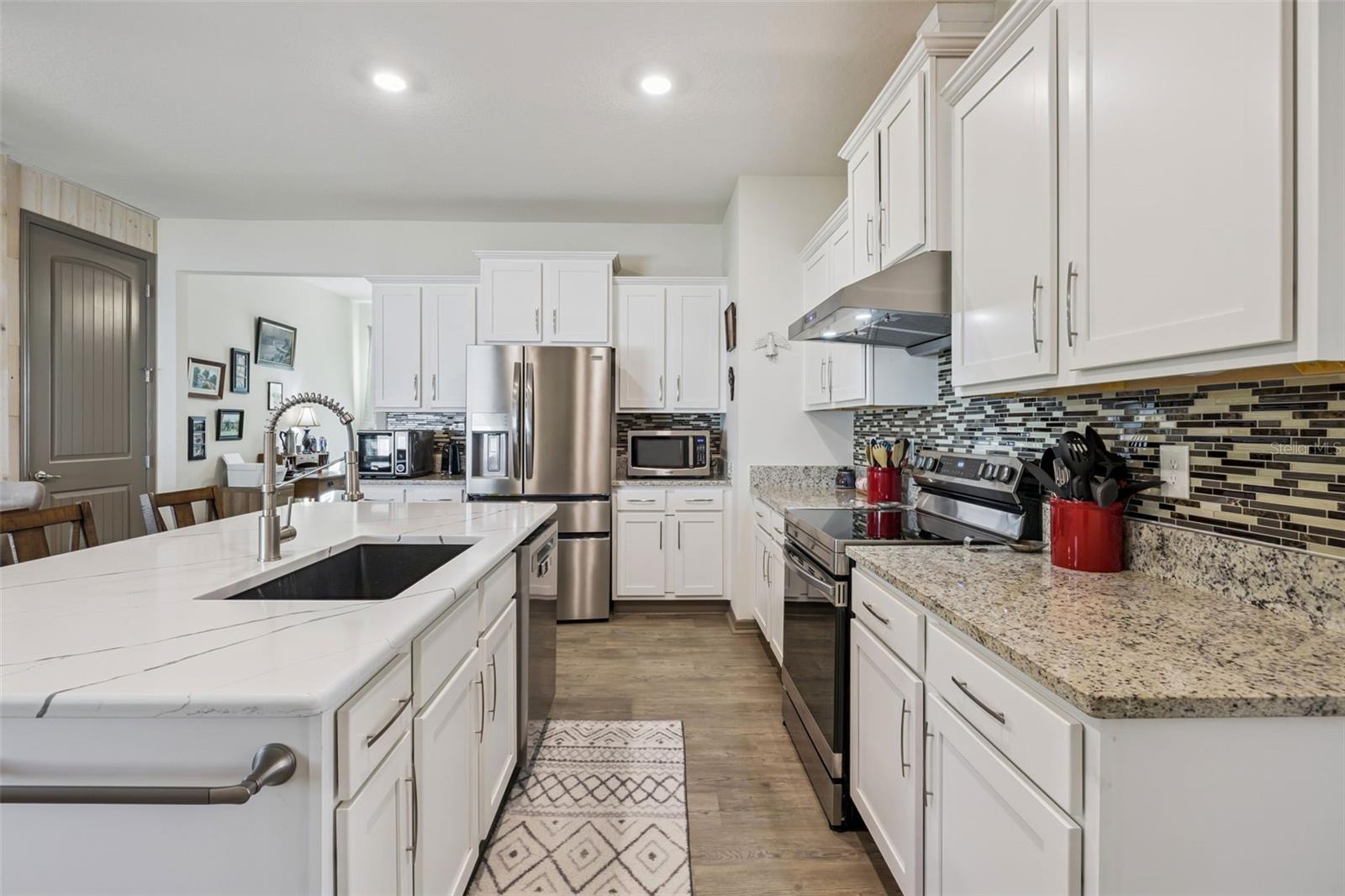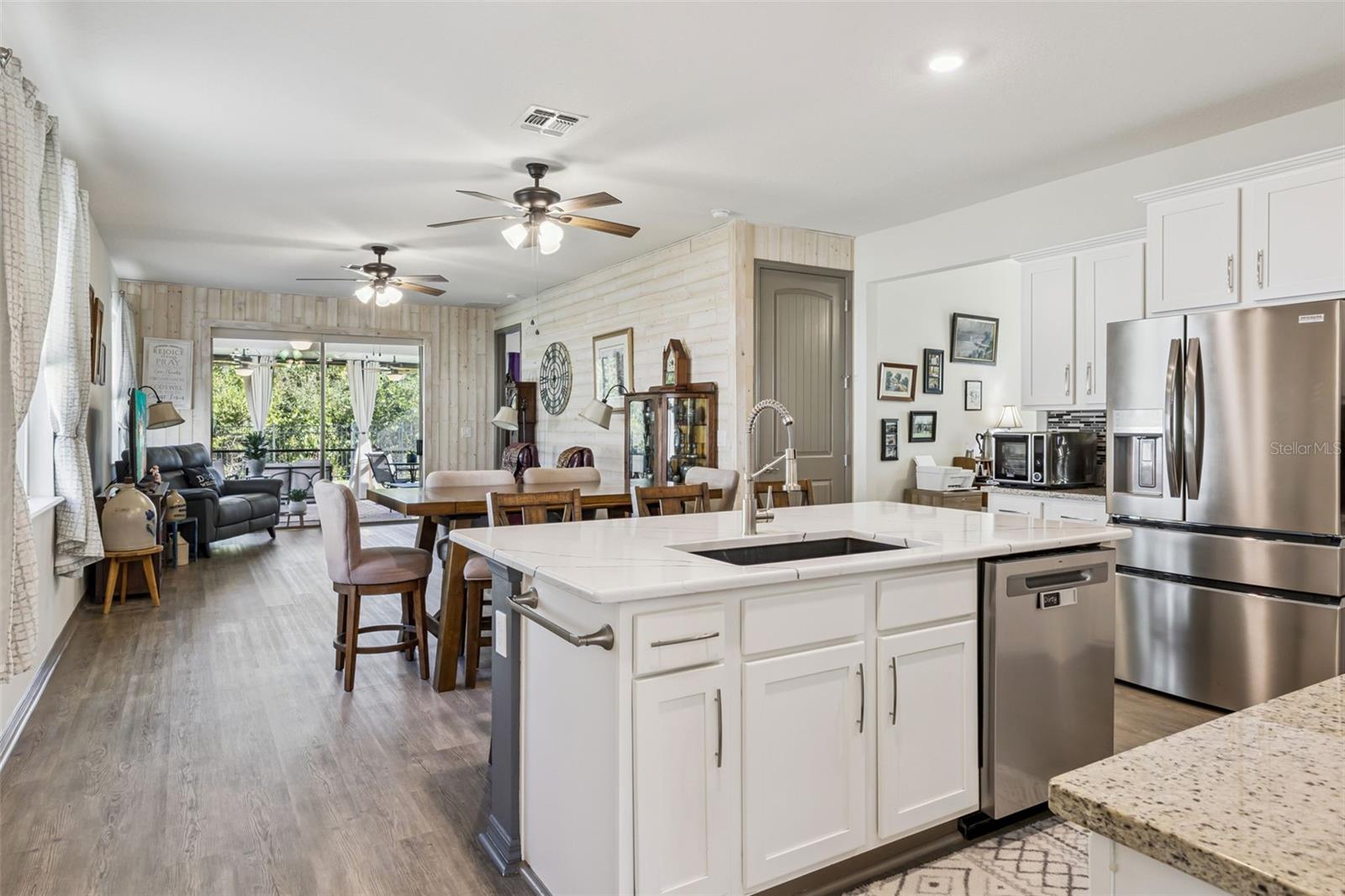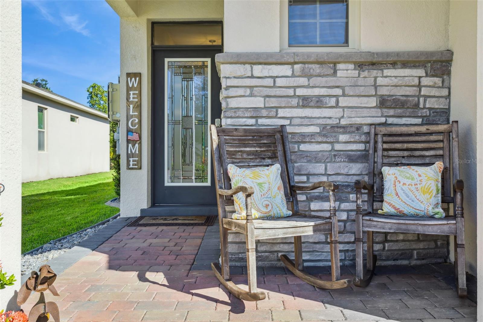Welcome to your dream home in the sought-after 55+ community of Palms at Serenoa, where comfort, style, and sustainability come together seamlessly. This beautifully designed 3-bedroom, 2-bathroom home offers 1, 621 sq ft of open, light-filled living space with fully paid-off solar panels and battery backup, giving you energy efficiency and peace of mind from day one. A pavered driveway and lush landscaping create stunning curb appeal, leading to a bright foyer with a stunning light fixture that sets the tone for the rest of the home. The spacious great room blends the living, dining, and kitchen areas, ideal for both daily living and entertaining. The modern kitchen impresses with a large island, crown-molded cabinetry, stainless steel appliances, and contemporary finishes, all while overlooking the living space so you can stay connected with loved ones while handling any size meal with ease. The private primary bedroom is a true retreat, featuring a walk-in closet and spa-inspired en suite with a dual-sink vanity and oversized walk-in shower. Additional bedrooms provide ample space and natural light, perfect for guests, a home office or a hobby room. Step outside to the screened-in patio overlooking peaceful nature views and enjoy Florida’s warmth without the pests. This home has truly been cared for, with upgrades such as a newly epoxied garage floor! As part of this gated 55+ community, you’ll have access to resort-style amenities including a pool, fitness center, park, and more! Additionally lawn care, cable, internet, and exterior maintenance are all included. Located near Hwy 27 and SR 429, you’re just 25 minutes from Disney World and surrounded by the best shopping, dining, and entertainment Central Florida has to provide. Don’t wait on this gorgeous home, schedule your private showing TODAY!!!
