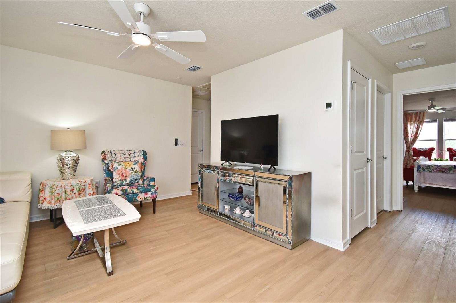 Ceiling Fans(s), Eat-in Kitchen, Kitchen/Family Room Combo, Open Floorplan, Stone Counters, Thermostat, Walk-In Closet(s)