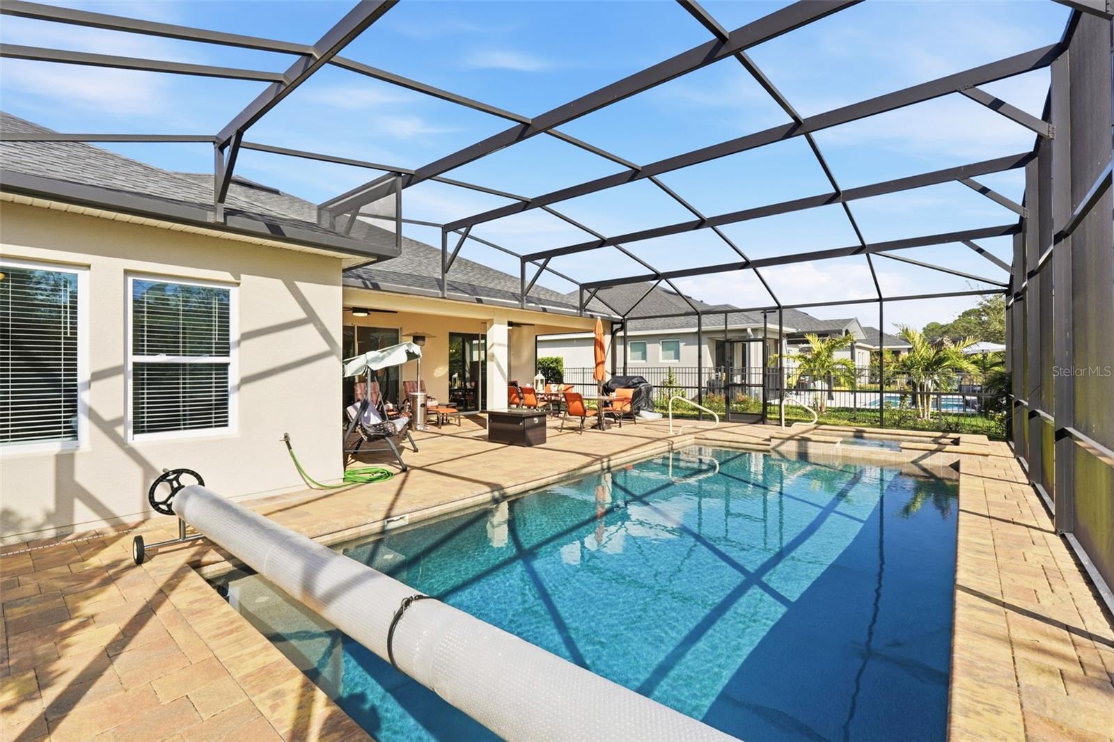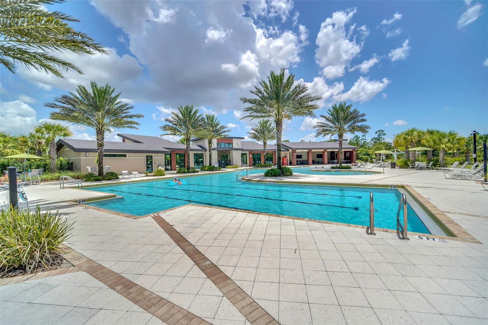 WELCOME TO THIS BEAUTIFULLY DESIGNED DAVID WEEKLEY HOME IN SERENOA VILLAGE, CLERMONT! Built in 2021, this immaculate, like new 4 bedroom 3 bath 2, 676 sq. ft. home exudes modern elegance and includes thoughtful details throughout. Nestled on a prime wooded lot with pond view and no rear neighbors, this home offers privacy, space, and luxurious indoor-outdoor living. As you approach, the brick driveway and three-car garage, this immaculate curb appeal set's the tone for what’s inside. Step through the front door and immediately feel enveloped in high ceilings and recessed lighting, creating a bright and welcoming atmosphere. The Great Room seamlessly combines the living room, dining room, and kitchen, ensuring an open-concept flow that is perfect for both relaxing and entertaining. This home features porcelain tile in the main areas and bathrooms along with large windows and double sliding doors in the flex room and triple sliding doors leading out to lanai and pool area that effectively flood the space with natural light, creating a sense of openness and connection to the outdoors, while also potentially improving energy efficiency by reducing the need for artificial lighting. Hosting gatherings is effortless with the show-stopping super kitchen featuring a large island with a breakfast bar, sleek stainless steel appliances including built in oven, microwave and modern finishes with ample storage and a walk in pantry that make it ideal for preparing meals of any size while staying connected with family and guests. The primary suite is a private retreat, offering a spacious walk-in closet and an en suite bathroom designed for relaxation with a dual vanity and modern finishes. One additional bedroom offers an en suite bathroom while the other bedrooms provide plenty of space, natural light, and comfort for family or guests, ensuring everyone feels right at home. But the true highlight of this property lies beyond the interior, step outside to your own private paradise! The screened in 1450 square feet of living space with a heated salt water 14' x 28' resort-style pool & 6'x8' Whirlpool Spa overlooking the wooded area with small pond make every day feel like a vacation. Whether you’re dining al fresco under the covered patio, soaking up the Florida sunshine, or hosting memorable poolside gatherings and BBQs, this outdoor space is second to none. Located in a vibrant community, you'll have access to top-tier amenities, including a fitness center, splash pad, dog park, walking trails, and an additional community pool. Plus, being just 25 minutes from Disney World and close to scenic nature trails and parks, you'll experience the perfect balance of adventure, convenience, and tranquility. Don’t miss your chance to own this stunning home, schedule your private showing today!