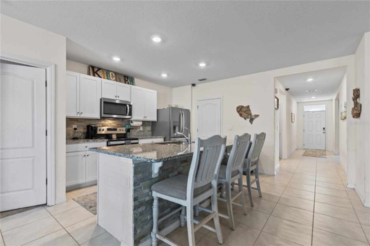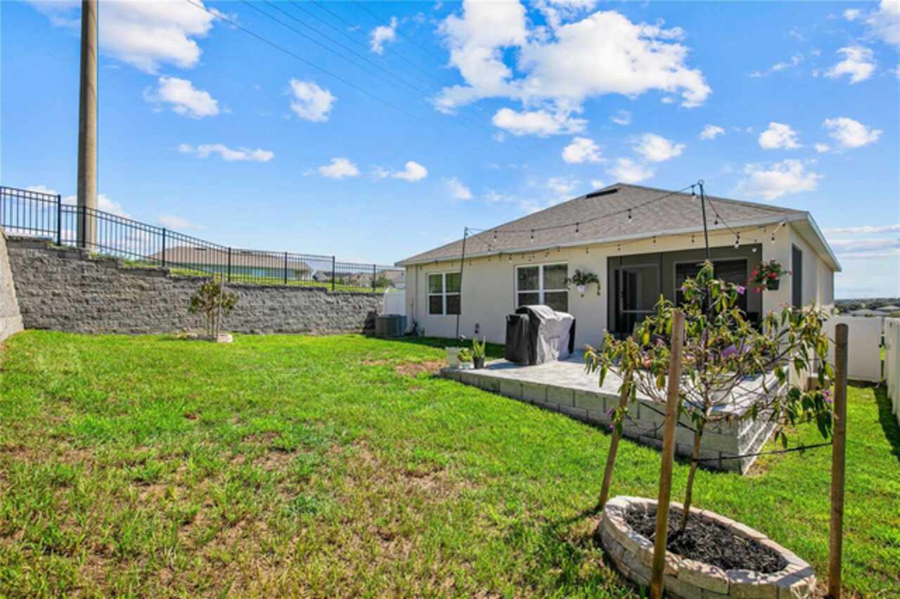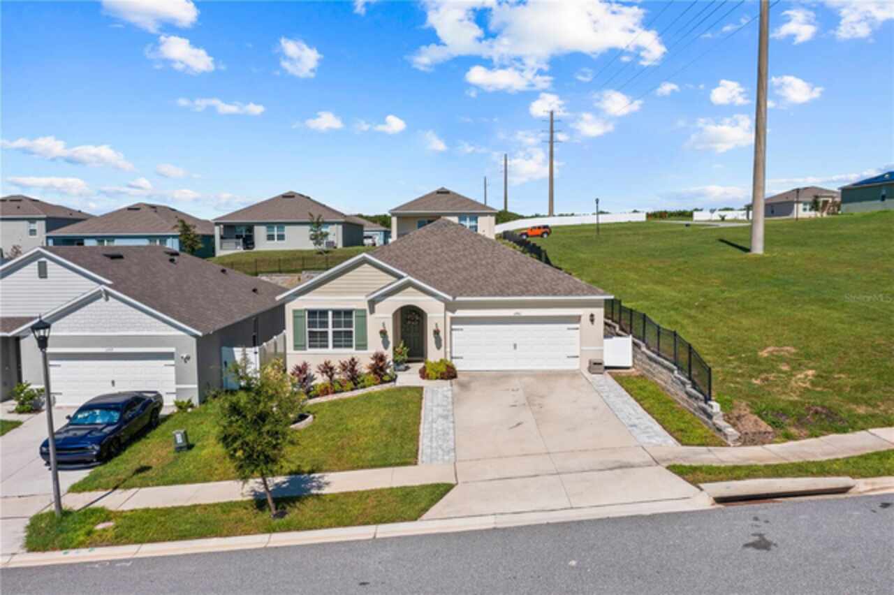 Assumable FHA LOAN with a 4.75% interest rate. ASK YOUR AGENT HOW YOU CAN TAKE ON THIS LOW INTEREST RATE! Welcome to this beautifully maintained 3-bedroom, 2-bathroom, newly built in 2023, home in Arborwood community of Clermont! The Aria floor plan by DR Horton offers a perfect blend of style, comfort, and convenience, this property sits on an elevated lot with a fully fenced backyard and no immediate right side neighbors for added privacy. Step inside to find an open-concept layout with a bright and airy feel. The gourmet kitchen is a showstopper, featuring granite countertops, a stone-accented island with breakfast bar seating, stainless steel appliances, a stylish backsplash, and plenty of cabinet space. The kitchen flows seamlessly into the dining and living areas, making it perfect for entertaining. Enjoy Florida living at its finest in the screened lanai or on the extended paver patio—ideal for grilling, relaxing, or hosting friends. The spacious backyard is enclosed with decorative fencing and surrounded by lush landscaping. Home includes: Granite Counters, 18" ceramic tile, 36" cabinets & LED Lighting. Control your home with our "Home Is Connected" Smart Home package featuring: porch light switch, front door lock, thermostat, doorbell camera, touch screen control hub, Deako Smart switches. You will Save Money with this all block constructed, energy efficient new home complete with 15 Seer AC, dual pane low-E windows. Schedule a private showing today!