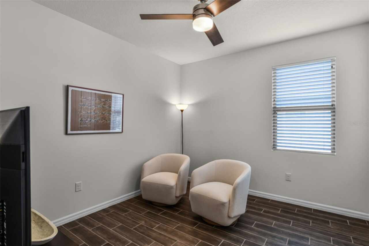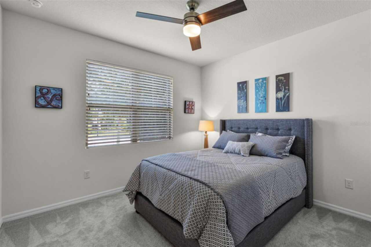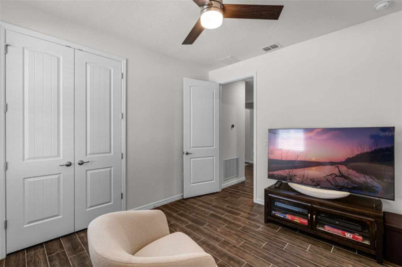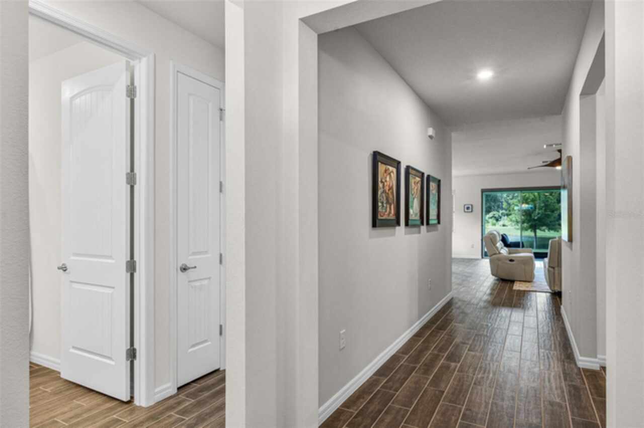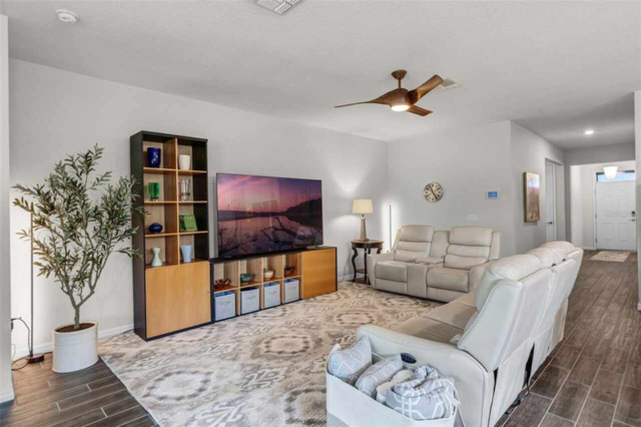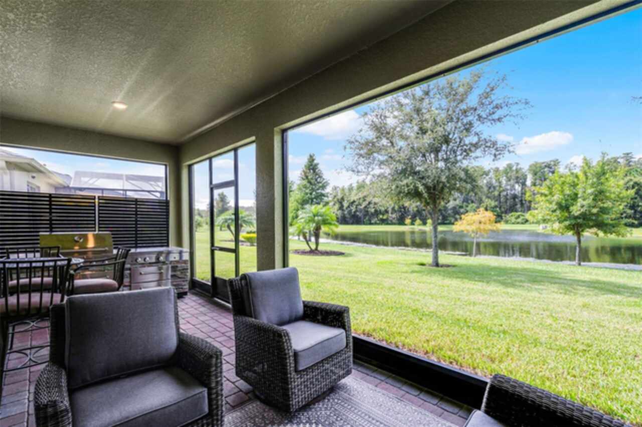 Under contract-accepting backup offers. Water & Conservation Views – Premier Lot! Welcome home to the largest floor plan in The Palms at Serenoa, Clermont’s premier 55+ gated community offering resort-style living just 25 minutes from Walt Disney World. This stunning four-bedroom, two-bathroom single-story home offers 2, 034 square feet of open living space on a premier waterfront lot with tranquil conservation views. The stone elevation, paved driveway, and fresh exterior paint completed in 2025 create beautiful curb appeal. Inside, extended wood-look tile floors, eight-foot doors, and abundant natural light flow through an open-concept design that seamlessly connects the great room, dining area, and gourmet kitchen. The kitchen is a showstopper with a large quartz island, stainless steel appliances, upgraded 42-inch soft-close cabinets with crown molding, a beautiful backsplash, and a custom walk-in pantry. The spacious dining area features a picturesque window overlooking the water and opens into the inviting living room. From there, sliding doors lead to the screened and covered lanai with brick pavers—the perfect spot for morning coffee or evening relaxation while enjoying serene water and nature views. The private primary suite is tucked at the rear of the home with peaceful water views and two walk-in closets. Its beautifully appointed bathroom includes a large walk-in shower, dual sinks, an expansive vanity, and a private water closet. Three additional bedrooms and a second full bathroom provide flexible space for guests, hobbies, or a home office, while the laundry room with a utility sink adds convenience. Thoughtful upgrades elevate this home, including a new roof and gutters installed in 2023, a whole-house water filtration and softener system added in 2025, and fresh exterior paint. With no waiting for construction and a premier lot location, this home is move-in ready. Life at The Palms at Serenoa is centered around an active lifestyle. Residents enjoy a heated resort-style pool with lap lanes, a state-of-the-art fitness and yoga studio, pickleball and bocce courts, a clubhouse with activity rooms, and a full-time lifestyle director who plans daily events and social gatherings. Scenic walking and biking trails, dog parks, and the convenience of included lawn care and internet make life here truly effortless. With just 570 homes, the community provides an intimate neighborhood feel while keeping you close to everything Clermont has to offer. The upcoming Sawgrass Boulevard extension will provide direct access to Winter Garden, Horizon West, and Disney, while Historic Downtown Clermont offers charming restaurants, boutique shopping, a weekly farmers market, and beautiful waterfront parks. You’ll also be just minutes from the upcoming Olympus in Clermont, a fully integrated destination offering an array of health, wellness, sports, and entertainment facilities that will bring exciting new amenities and experiences to the area. This home combines a premier lot, modern upgrades, and a vibrant 55+ lifestyle in a gated community that truly has it all. Schedule your showing today! Be sure to check out the video tour: http://bit.ly/4mzJXq3