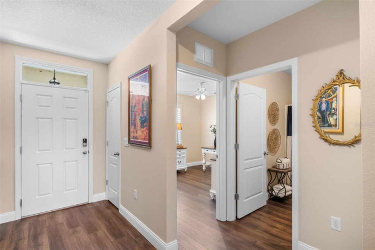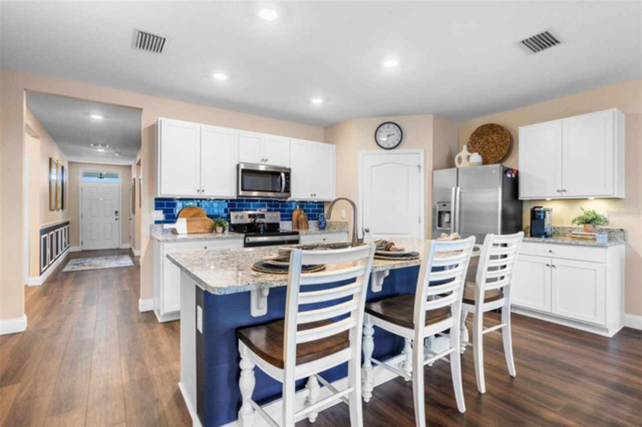 Under contract-accepting backup offers. Beautiful 4-Bedroom, 2-Bath Home on Oversized Corner Lot in Sought-After Arborwood Community Welcome to this spacious and beautifully maintained one-story home, located on an oversized corner lot in the desirable Arborwood community. This property offers privacy, upgraded features, and an ideal blend of indoor comfort and outdoor living. The backyard is fully fenced with three gate access points, enhanced landscaping with stone borders, and plenty of room to add a pool or enjoy fun-filled evenings with family and friends. The front yard features professional landscape lighting, creating warm curb appeal and a welcoming glow at night. Inside, you’ll find thoughtful upgrades throughout, including wainscoting in the hallway, luxury vinyl plank wood-look flooring, and new 5.5-inch baseboards. Two bedrooms are located at the front of the home with a shared full bath that features luxury vinyl flooring, granite countertops, and a tub/shower combo. Toward the center of the home, you’ll find a fourth bedroom, a laundry room with built-in cabinetry, and access to the garage, which has been upgraded for quiet operation. The open floor plan flows beautifully into the heart of the home — a spacious living area and a stunning kitchen with a large island, stainless steel appliances, undercabinet lighting, tile backsplash, ample cabinetry, and a custom walk-in pantry. The adjacent dining area features a decorative accent wall and a sliding glass door that leads to the enlarged screened patio — the perfect space to enjoy morning coffee or unwind at the end of the day. The primary suite is privately located at the rear of the home, offering peaceful backyard views and a luxurious ensuite bathroom with dual granite vanities, walk-in shower, water closet, large linen closet, and a custom walk-in closet. Additional Features: Whole-home water softening system ADT smart home security system Upgraded quiet garage door opener Community Highlights: Located in the welcoming Arborwood neighborhood, this home offers access to amenities, including a community pool, playground, and scenic walking paths. With NO CDD and a low $85/month HOA fee, you’ll enjoy affordability without compromising lifestyle. Just minutes from HWY 27, the Florida Turnpike, and the Groveland Square shopping center, Arborwood offers exceptional convenience. You’re also near the exciting new Crooked Can project in Minneola (only 15 minutes away), Cherry Lake Park (with its event lawn, two large playgrounds, basketball courts, and a fitness center coming soon), and Cherry Lake Preparatory Academy. Nestled among rolling hills and just a short drive to Minneola and downtown Clermont, this home is perfectly situated in one of Groveland’s most desirable communities.