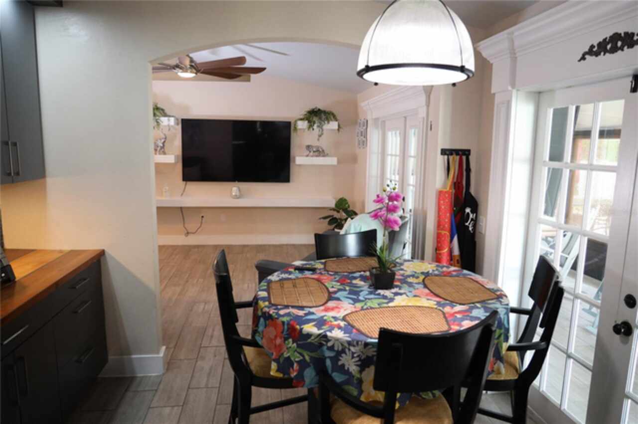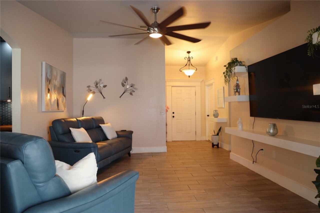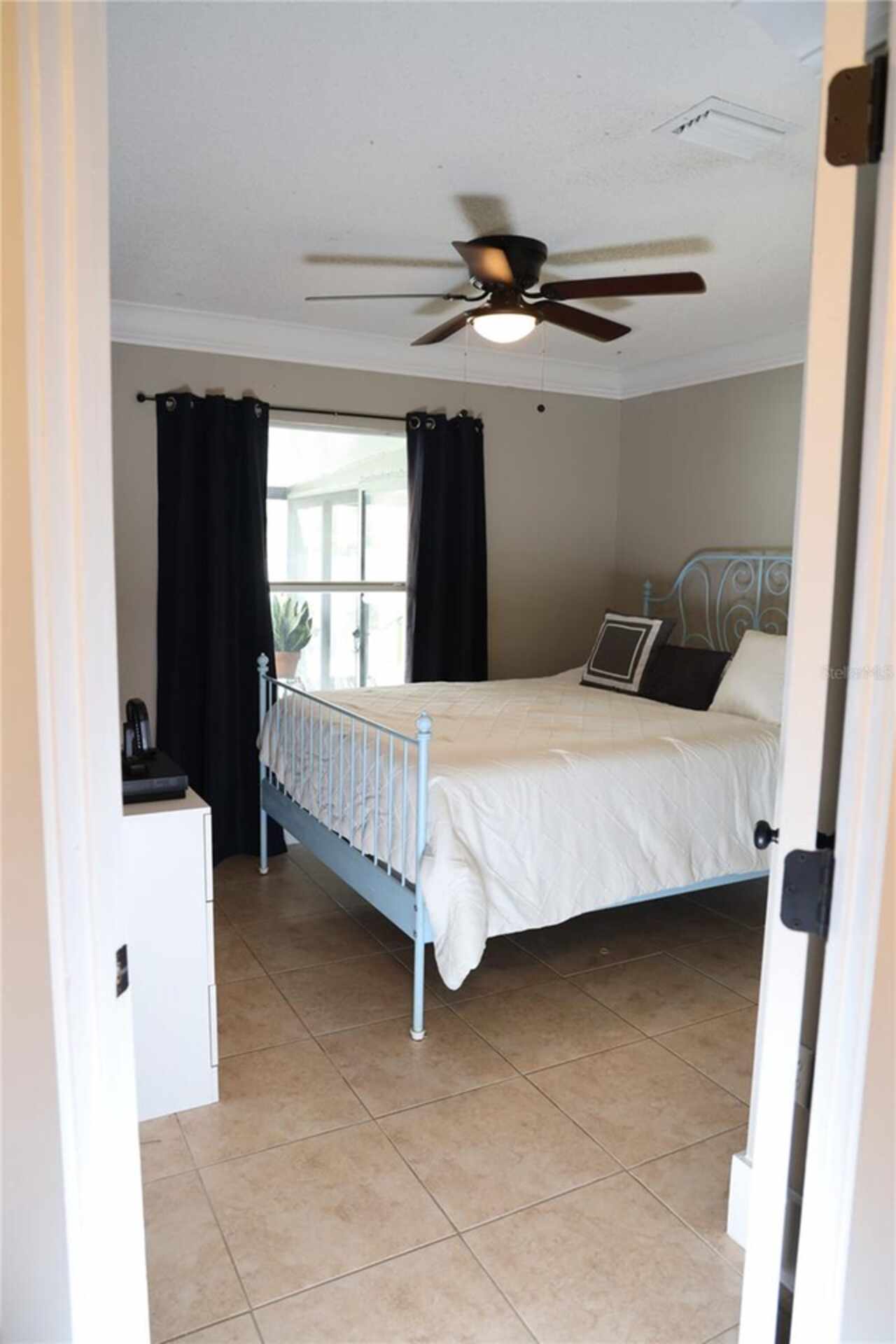 Discover comfort and privacy in this beautiful home, perfectly situated on a secluded cul-de-sac. The split floor plan ensures personal space, while the oversized lot is ideal for outdoor activities. Enjoy mornings on the screened-in front patio or relax in the cozy Florida room. A stand-alone shed/utility room (12ft x 20ft) adds extra storage. The kitchen is a showstopper with custom cabinetry, WOOD CYPRESS countertops, and a CERAMIC tile backsplash. Stainless steel appliances and ample storage make it both stylish and functional. Located in Greater Groves, enjoy a community pool, play area, and sports courts for just a $550 annual HOA fee. Minutes from shopping, dining, and 20 minutes from Disney, this home is perfect for full-time living or as a vacation rental. Key Features: NEW ROOF UNDER A YEAR OLD, Two-car garage with extra storage, Screened-in front patio & Florida room, Stand-alone shed/utility room and Low annual HOA fee: $550