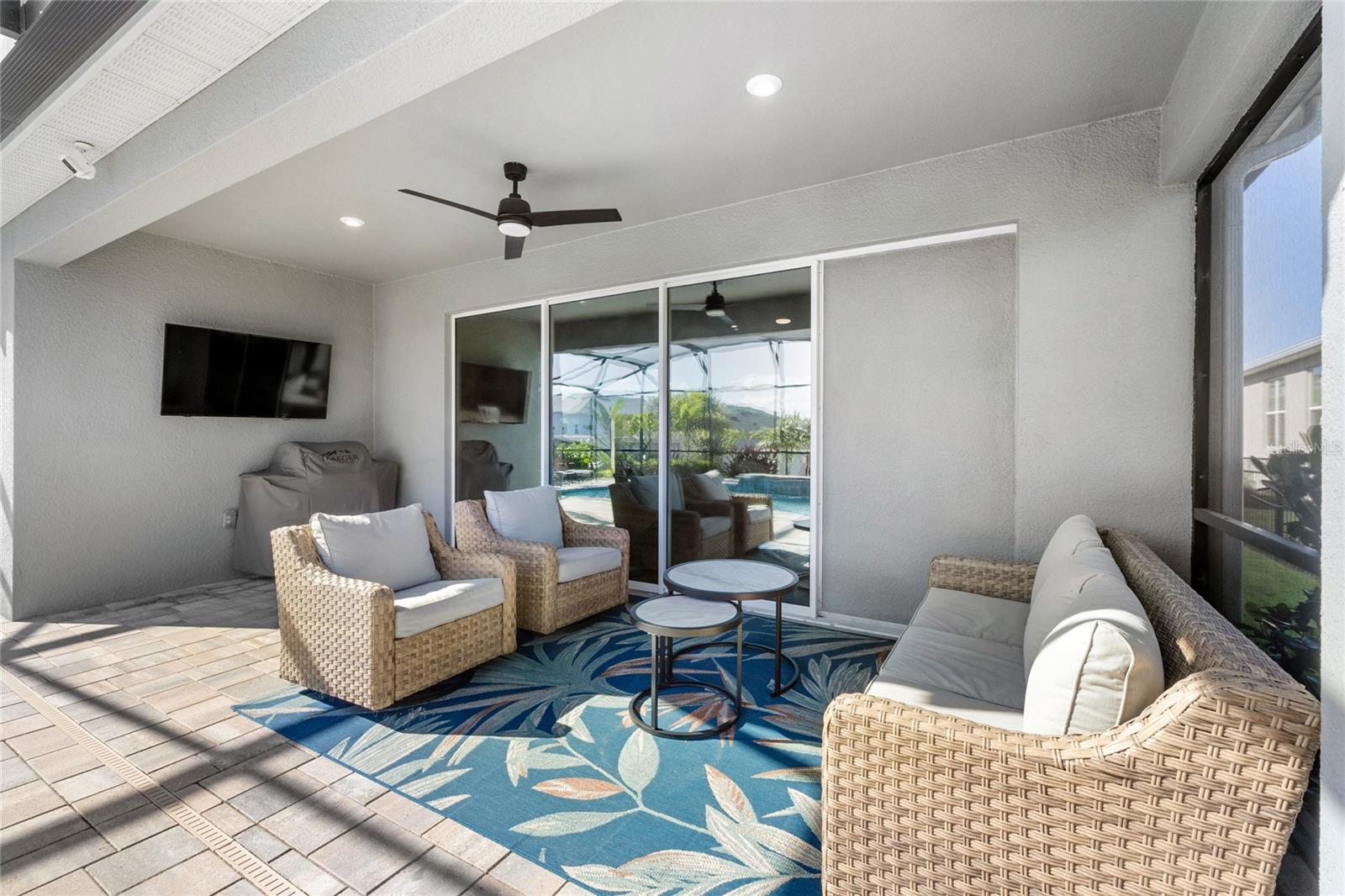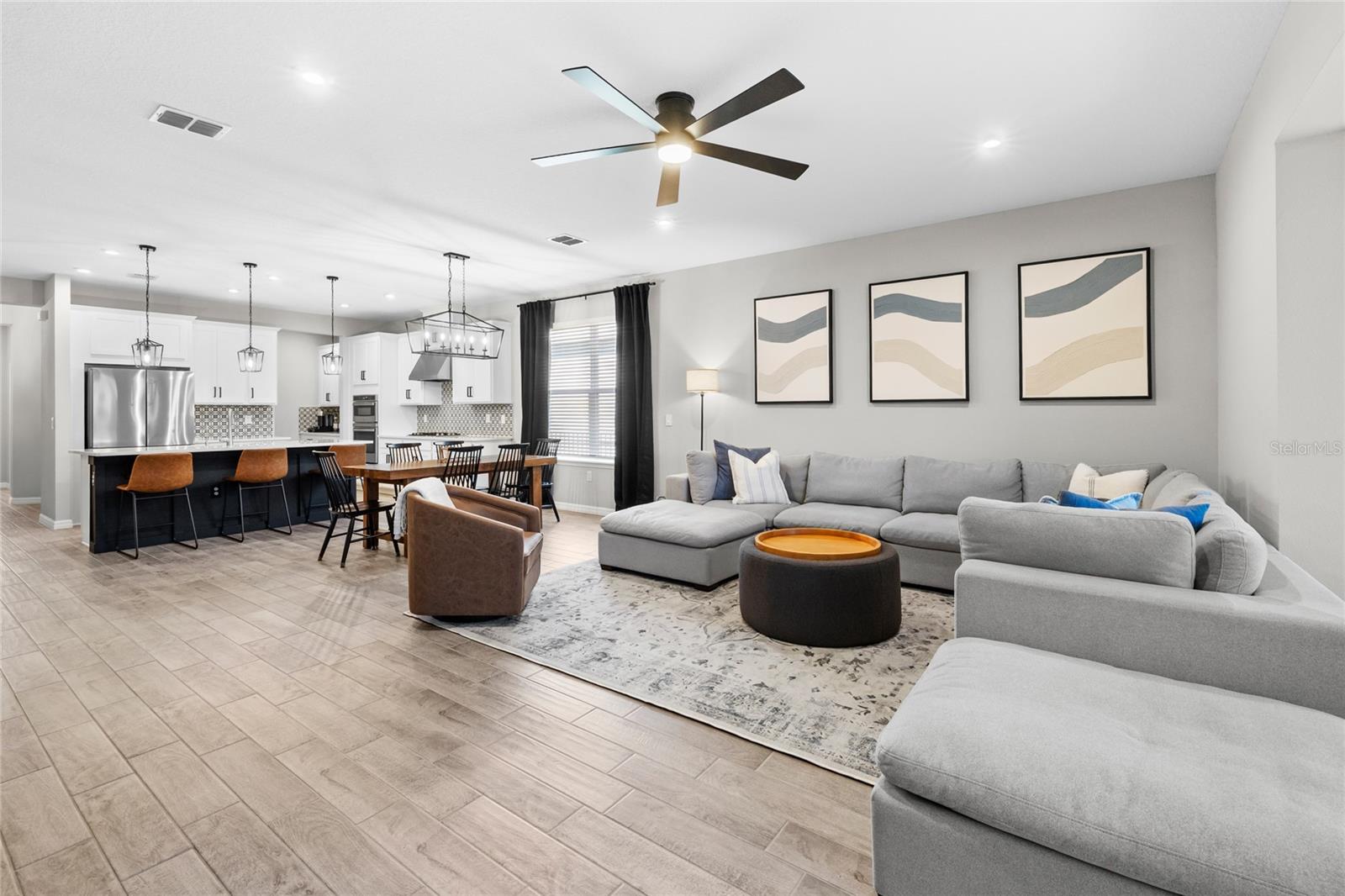 Perched high atop one of Clermont’s scenic hills, this stunning 2023 Taylor Morrison Antigua model blends modern design, thoughtful upgrades, and resort-style living in The Canyons at Highland Ranch. With nearly 2, 400 square feet of single-story space, this 4-bedroom + flex room, 3-bath home offers the perfect balance of function, comfort, and elegance. Inside, you’ll find designer touches at every turn — from feature walls to upgraded lighting and fixtures that make each space feel custom. The gourmet kitchen is a dream for both home cooks and entertainers, complete with a walk-in pantry, butler’s pantry with overflow storage perfect for a coffee bar or holiday bakeware, and a reverse osmosis water system. The primary suite is your private retreat with wood-look tile flooring, a walk-in closet, and a spa-inspired bathroom featuring dual vanities, a soaking tub, and a separate shower. For added comfort and efficiency, tinted sliding doors and bedroom windows provide both privacy and energy savings. A fourth bedroom, also upgraded with wood-look tile, is conveniently tucked away at the front of the home beside a full bath — ideal for guests or a dedicated home office — while a bonus flex room with doors offers the perfect spot for a play area, hobby room, or cozy den. Step outside to your own tropical oasis. The shimmering pool, screened lanai, and pavered patio overlook an elevated backyard, creating a private retreat surrounded by lush landscaping and hardscaping. Additional features include gutters, an aluminum fence, expanded and sealed driveway, and a laundry room with cabinetry and sink for added functionality. Every detail of this home has been meticulously cared for — from lawn and pest treatments to annual dryer vent cleanings and bi-annual AC servicing, ensuring peace of mind for years to come. Living in The Canyons at Highland Ranch means you’ll get to enjoy resort-style amenities including a sparkling pool, pirate-themed playground, splash pad, volleyball and tennis courts, a fire pit, and even a huge dog park where neighbors gather to watch the sunset together. Ideally located just minutes from the Florida Turnpike, you’ll have easy access to Disney World, historic downtown Clermont, and everyday conveniences like Publix, Costco, and Starbucks.