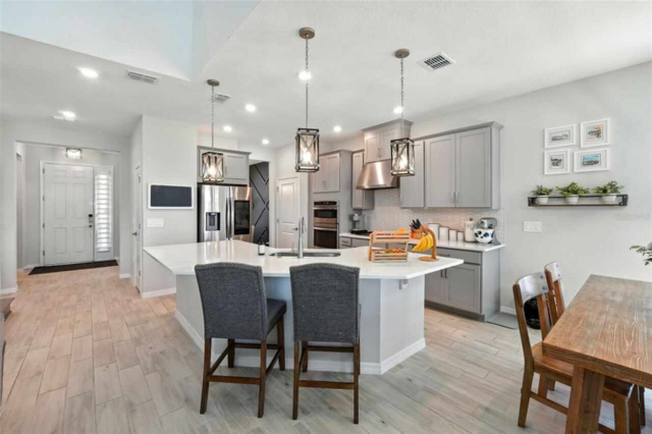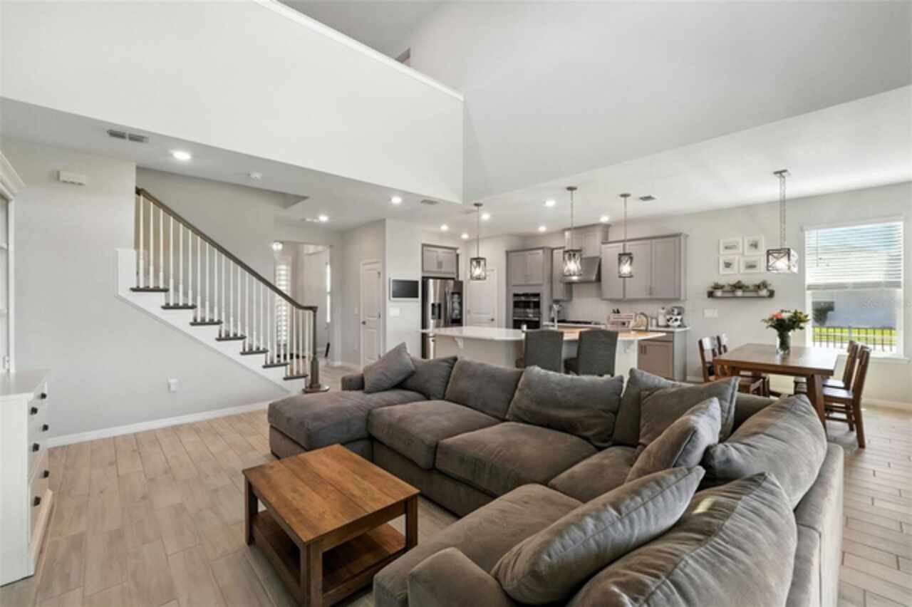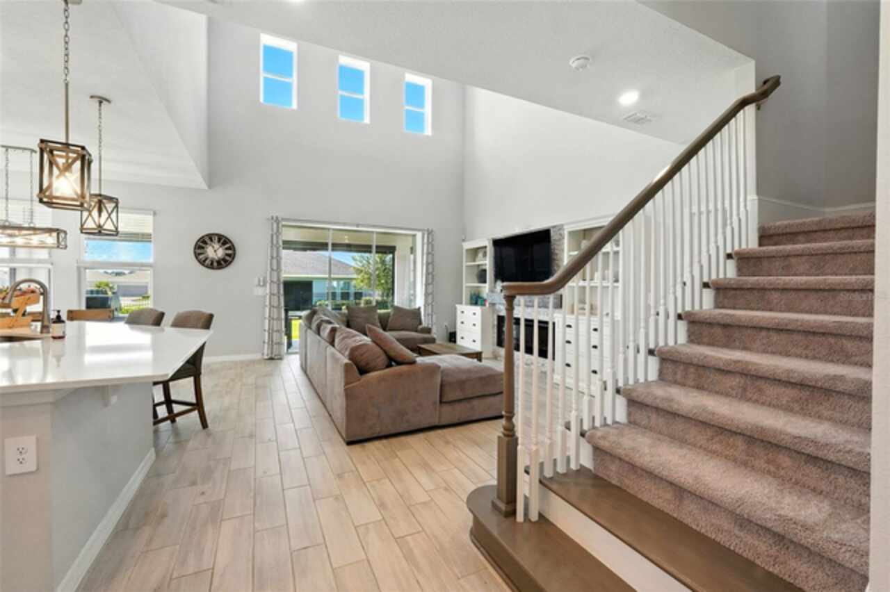 Welcome Home! Built in 2023, this stunning 5-bedroom, 3.5-bath home blends modern design with thoughtful upgrades. High ceilings, an open-concept layout, and abundant natural light create a bright, airy feel throughout. The gourmet kitchen is a showstopper, featuring sleek quartz countertops that pair beautifully with the home’s modern finishes. Upstairs, a spacious LOFT area offers endless possibilities—perfect as a playroom, home office, or media space. Recent upgrades include a built-in entertainment center with a cozy fireplace, updated landscaping with striking stone and gravel accents, and custom retractable screens that enclose the covered patio—perfect for bug-free outdoor living and seamless indoor-outdoor entertaining. Set on a spacious corner lot, the home also features a FULLY FENCED backyard—ideal for entertaining, relaxing, or providing plenty of room for your pets to run and play. With a LOW HOA, Highland Ranch residents enjoy resort-style amenities including a pool, splash area, clubhouse, playgrounds, scenic walking trails, and more! Outdoor enthusiasts will love the nearby access to the South Lake Trail, which leads to downtown Clermont’s charming shops, dining, and waterfront. Conveniently located near top-rated schools, shopping, and restaurants, this home offers the perfect combination of luxury, comfort, and everyday convenience. Don’t miss your opportunity to own this remarkable Clermont property! Schedule your private tour today! See Video Tour: https://www.facebook.com/theeckersonteam/videos/714983554876297