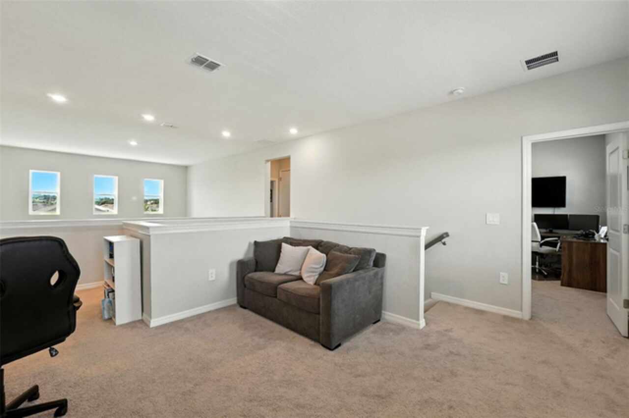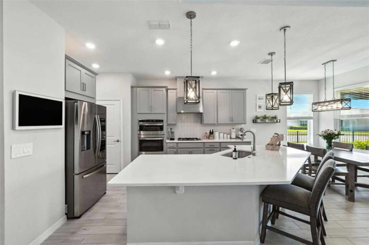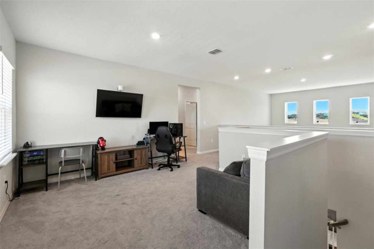 Welcome Home! Built in 2023, this stunning 5-bedroom, 3.5-bath home blends modern design with thoughtful upgrades. High ceilings, an open-concept layout, and abundant natural light create a bright, airy feel throughout. The gourmet kitchen is a showstopper, featuring sleek quartz countertops that pair beautifully with the home’s modern finishes. Upstairs, a spacious LOFT area offers endless possibilities—perfect as a playroom, home office, or media space. Recent upgrades include a built-in entertainment center with a cozy fireplace, updated landscaping with striking stone and gravel accents, and custom retractable screens that enclose the covered patio—perfect for bug-free outdoor living and seamless indoor-outdoor entertaining. Set on a spacious corner lot, the home also features a FULLY FENCED backyard—ideal for entertaining, relaxing, or providing plenty of room for your pets to run and play. With a LOW HOA, Highland Ranch residents enjoy resort-style amenities including a pool, splash area, clubhouse, playgrounds, scenic walking trails, and more! Outdoor enthusiasts will love the nearby access to the South Lake Trail, which leads to downtown Clermont’s charming shops, dining, and waterfront. Conveniently located near top-rated schools, shopping, and restaurants, this home offers the perfect combination of luxury, comfort, and everyday convenience. Don’t miss your opportunity to own this remarkable Clermont property! Schedule your private tour today! See Video Tour: https://www.facebook.com/theeckersonteam/videos/714983554876297