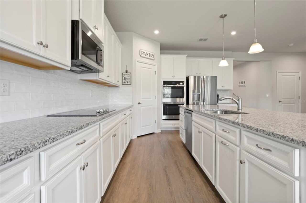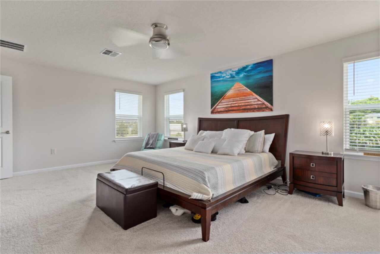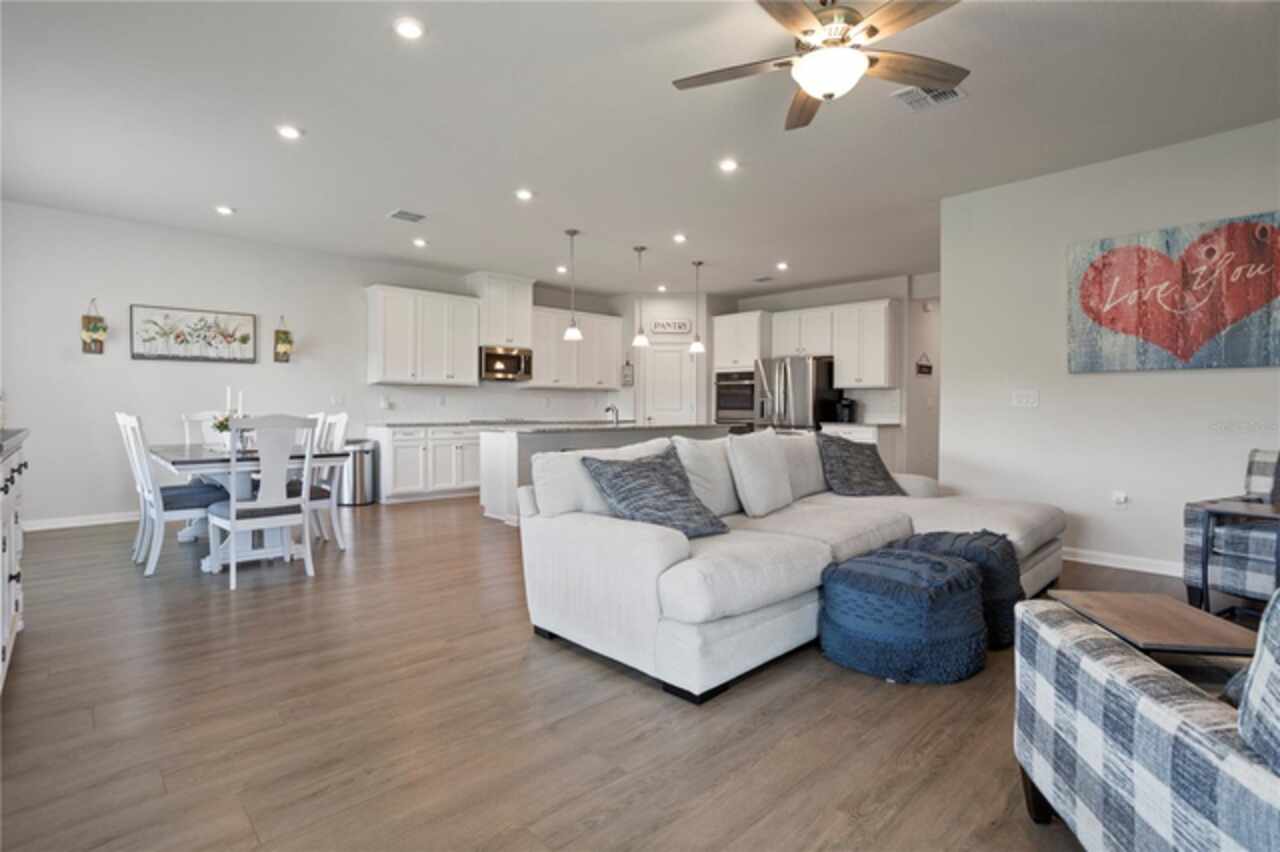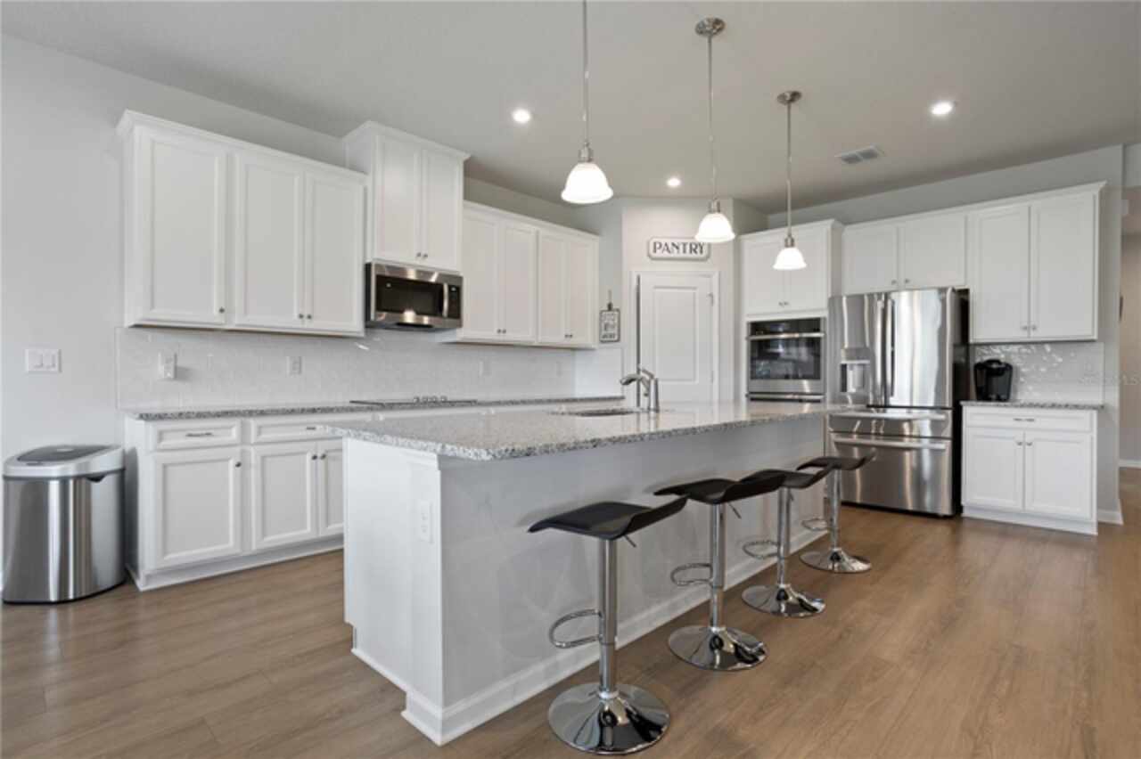 Welcome to Your Dream Home in Bella Terra: Luxury Living with Breathtaking Views! Imagine a life where tranquility meets convenience, where your private oasis built less than a year ago, offers stunning hilltop views and a sense of community. This is it! Nestled within Bella Terra, a charming enclave of just 59 homes, this beautifully designed two-story residence boasts an oversized homesite, private backyard, and an incredibly low HOA. Enjoy unparalleled access to everything you need. Ideally located off US-27, Bella Terra puts you close to nearby schools and a short drive to a world of entertainment and amenities. You're just 10 minutes from the historic charm of Downtown Clermont, 20 minutes from the vibrant energy of Downtown Winter Garden, and a mere 30 minutes from both Downtown Orlando and the magic of Disney! Step inside this expansive 5-bedroom, 4-bathroom home and discover a thoughtfully designed layout perfect for both daily life and grand entertaining. A welcoming foyer immediately greets you, with a private study to your left—ideal for working from home or quiet contemplation. The foyer flows seamlessly into a grand great room, while a generous family room awaits to the right. The heart of the home is undoubtedly the open-concept kitchen and dining area, featuring a large island, abundant cabinetry, a walk-in pantry, and an incredible amount of natural light that bathes the space. Ascend the stairs to find your personal sanctuary. A spacious loft provides the perfect spot to unwind, surrounded by three well-sized secondary bedrooms, a full bath, and a conveniently located laundry room. The luxurious Owner’s Suite is a true haven, boasting a massive walk-in closet and a spa-inspired en suite. Indulge in the dual vanities, private water closet, and a Roman-style shower complete with built-in seating—perfect for melting away the day's stresses. This home is packed with additional highlights designed to enhance your living experience: Smart Storage: Convenient under-stair storage and a large pantry closet keep everything organized. Ample Closet Space: Generously sized bedroom closets ensure everyone has their own space. Stylish Finishes: Enjoy the beauty of 17x17 tile in all wet areas and durable HardieBoard siding. Energy Efficiency: Benefit from a 14 SEER energy-efficient HVAC system and a WiFi-enabled Ecobee smart thermostat for year-round comfort and savings. Modern Conveniences: Top-of-the-line GE appliances and a WiFi-enabled garage door opener add to the ease of living. High-End Throughout: Discover high-end finishes and attention to detail in every corner of this remarkable home. Don't miss the extraordinary opportunity to make this exceptional Bella Terra residence your own. Schedule your private tour today and start living the dream!