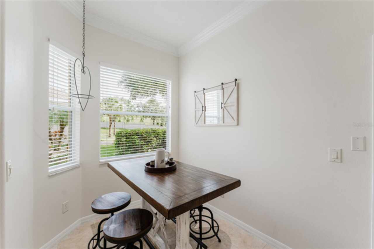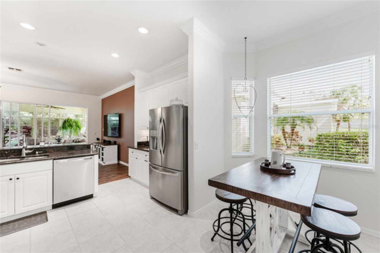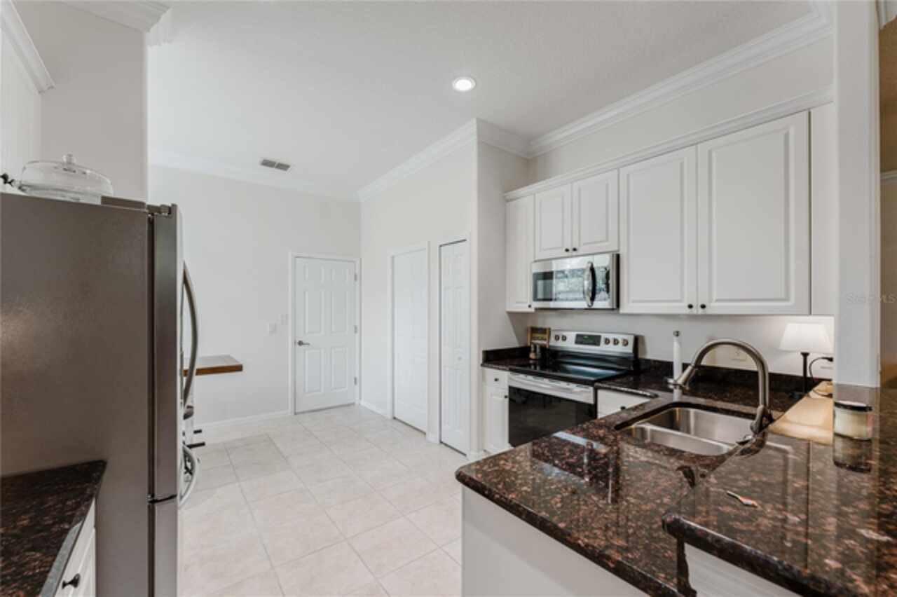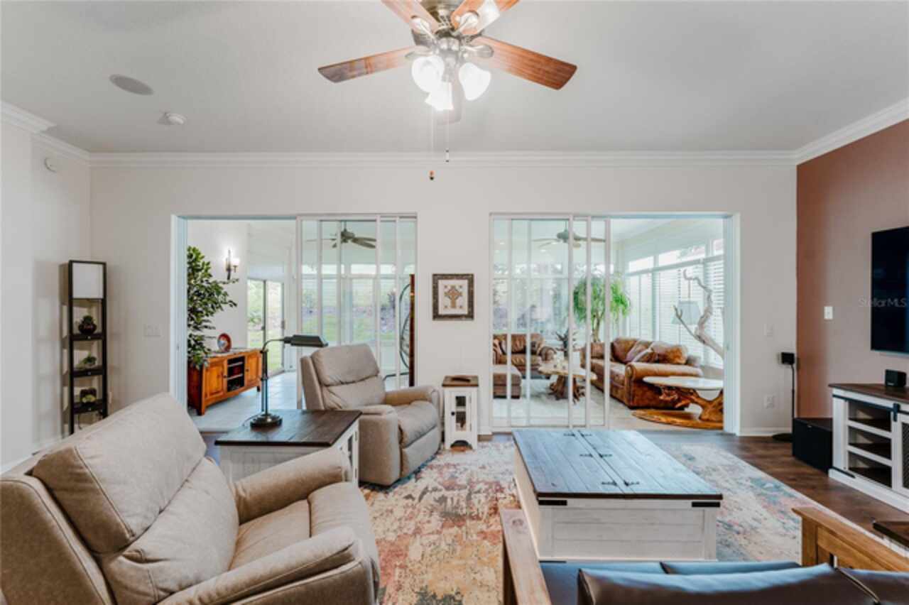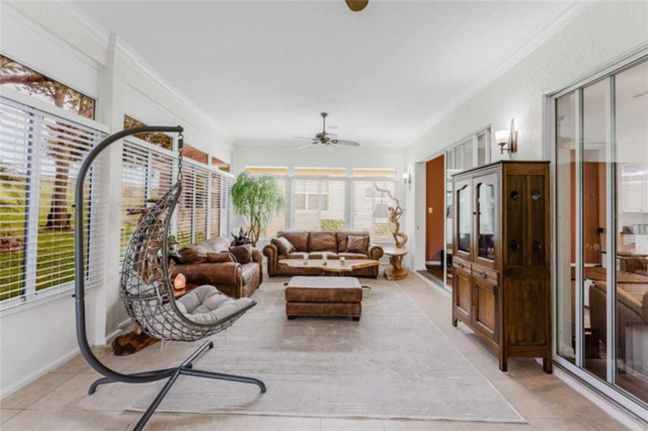 Discover HIGH-VALUE, WORRY-FREE living in this beautifully maintained 3-BEDROOM, 2-BATH home offering 1, 886 square feet of OPEN-CONCEPT living space—plus 364 ADDITIONAL SQUARE FEET in the FINISHED THREE-SEASON SUNROOM overlooking a lush, landscaped backyard with NO REAR NEIGHBORS for maximum privacy. Enjoy seamless indoor-outdoor living by opening the trio of sliding glass doors to take in the tranquil views, or begin your day on the screened front porch (with no-see-um mesh) ideal for your morning coffee and watching the sunrise. Located on a QUIET, LOW-TRAFFIC CUL-DE-SAC, this home provides peace of mind with a BRAND-NEW ROOF AND GUTTERING (June 2025), a high-efficiency A/C and furnace, and newer stainless steel Whirlpool appliances—including refrigerator, stove, microwave, and dishwasher. Stylish design upgrades include granite countertops, rounded corners, architectural arches, large ceramic tile, laminate flooring throughout—no carpet!—and crown molding accenting the entire home. The spacious open floor plan is perfect for entertaining or relaxed living. The HOA includes yard mowing, shrub trimming, expanded TV, and high-speed internet, offering true low-maintenance convenience. Located in Summit Greens, a gated 55+ community with 24-HOUR SECURITY, residents enjoy a wide range of amenities: clubhouse with classes and social activities, indoor/outdoor pools, sauna, hot tub, billiard room, ballroom, tennis, shuffleboard, and pickleball courts. Adjacent to the Clermont National Golf Course, enjoy access to The View—a modern venue with state-of-the-art driving range, restaurant, and outdoor food court with live music, big screen TVs, and panoramic views of Central Florida. This is active 55+ living at its best—schedule your private showing today!