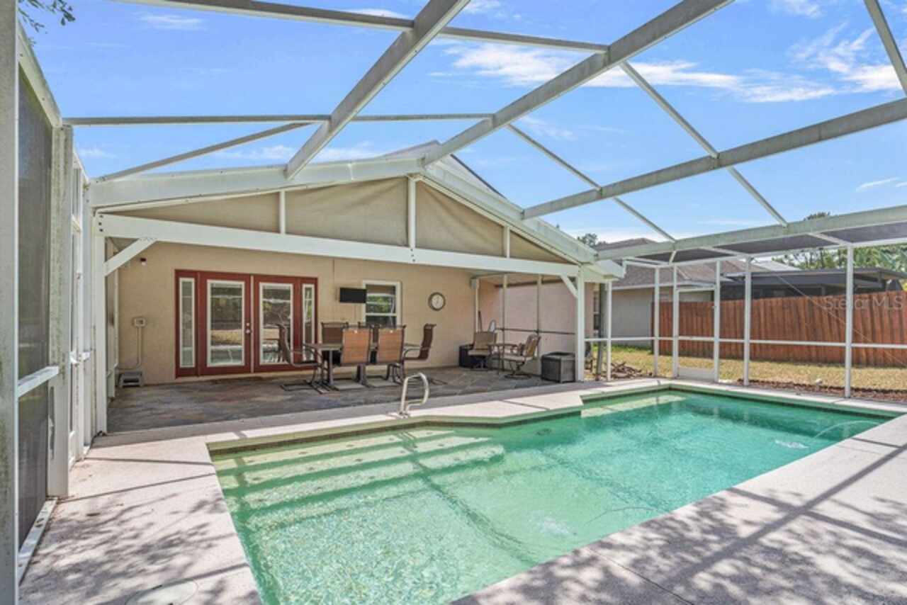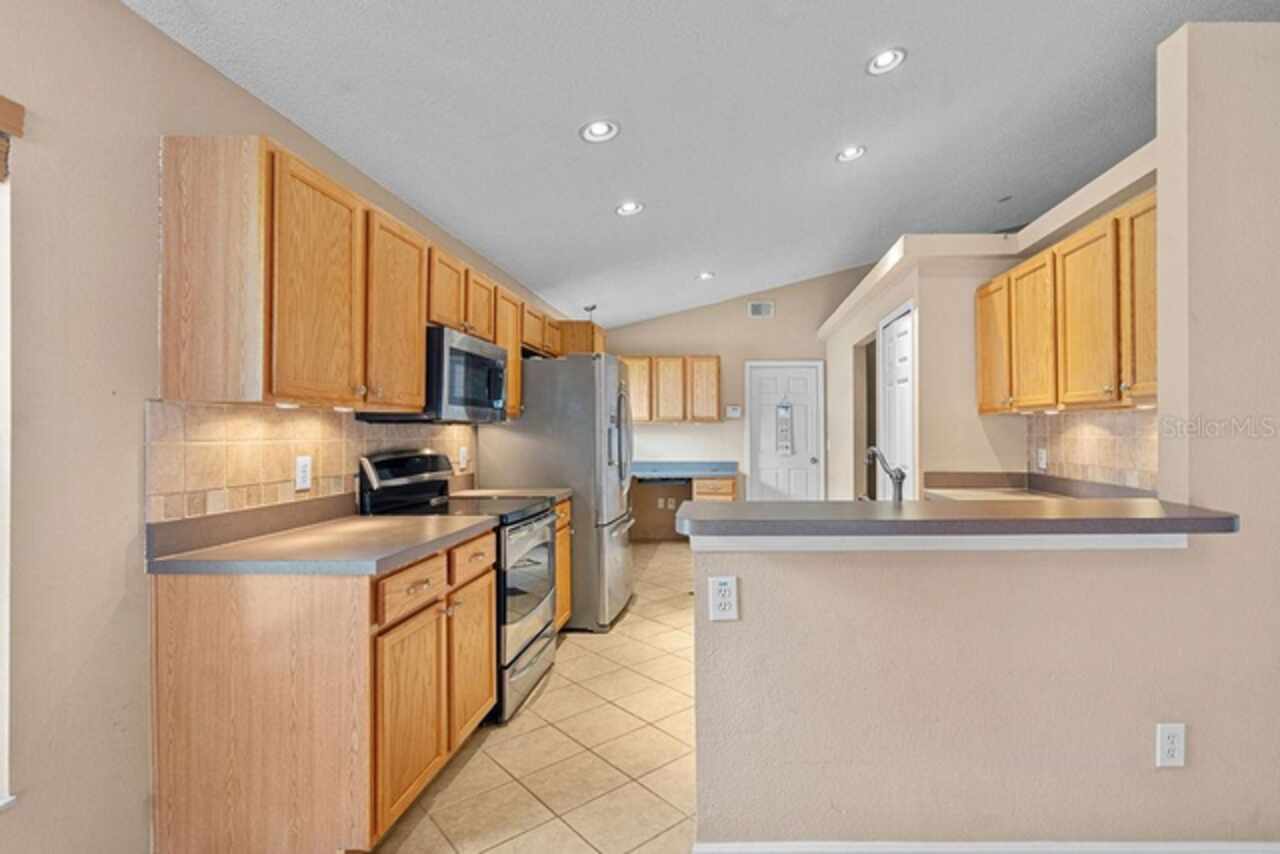 Under contract-accepting backup offers. Expect to be impressed with this updated pool home in the desirable Eagleridge community. Recent quality updates include a new roof (2021), brand-new water heater (2025), and new laminate flooring in two front bedrooms and primary bedroom (July, 2025). Step inside to the heart of the home where you’ll find your common living area – living/dining space and kitchen – a great gathering space that’s versatile to arrange to suit your needs. Contemporary kitchen boasts a breakfast bar, abundant cabinetry and counter space, tile backsplash, under counter lighting, a closet pantry and even a built- in workstation! All kitchen appliances included (and this includes a water softener system). The dining area has direct access to the pool area through beautiful French doors. The primary suite is in the back – ideal for privacy. Bedroom is large enough for a sitting area and has a pool view. The ensuite bathroom features attractive tilework, soaker tub, separate frameless shower and a wall-mounted TV hookup so you can catch up on the news as you get ready in the morning. One big reason to love this home is all that you have out back. There’s an expansive covered lanai and pristine pool, plenty of room for leisure furniture (including a dining spot), a wall-mounted TV set up, and an open patio space that would make a great grill station or firepit spot – all that you need to enjoy fun in the sun. Just around the corner are the Eagleridge amenities - a playground for the younger set, resort-style pool, and tennis court, giving you recreational options outside your backyard. Excellent location – Eagleridge is located just off SR 27, and only a 3-minute drive to your Publix – a great convenience. And you are only 3 miles from SR 192 providing you with quick access to Disney property. You’ll love living here. Property is also USDA loan eligible! Contact agent for more details and come see all that makes this home so special.