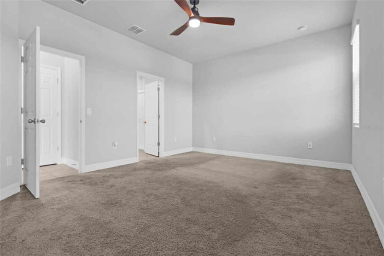 Ceiling Fans(s), Kitchen/Family Room Combo, Living Room/Dining Room Combo, Open Floorplan, Primary Bedroom Main Floor, Solid Surface Counters, Split Bedroom, Stone Counters, Thermostat, Walk-In Closet(s)