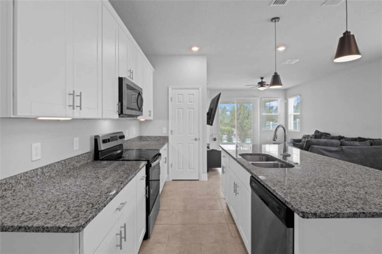 Welcome home to sunny, easy living in the heart of the Hills of Minneola, one of Central Florida’s most exciting and fast-growing communities! This light and bright 3-bedroom, 2-bathroom home, 2-car garage is full of modern upgrades, stylish details, and energy-efficient touches that make everyday life feel like a breeze. From the moment you pull up, the brick paver driveway and covered front porch create a warm, welcoming vibe. Step inside and you’ll be greeted by a fresh, open-concept floor plan that flows beautifully from room to room. The kitchen is a showstopper, featuring granite countertops, 42” white cabinetry, stainless steel appliances, kitchen island that seats four, and seamless connection to the dining and living areas. Whether you’re enjoying a quiet dinner or entertaining guests, this layout is designed to make it easy. The interior laundry room—complete with washer and dryer—adds everyday convenience, and the epoxy-coated garage floors with overhead storage take this home's functionality to the next level. The split-bedroom layout offers extra privacy, with a spacious primary suite that includes dual vanities with granite countertops, huge walk-in shower with glass shower door, and a large walk-in closet. The additional bedrooms are filled with natural light and plenty of space to relax or work. Step outside to a covered patio, perfect for grilling, relaxing, or taking in the fresh air and stunning panoramic views. This home sits near one of the highest elevations in Florida—so every sunset feels extra special. But that’s just the beginning. The Hills of Minneola community offers incredible amenities including two playgrounds, two dog parks, and a resort-style pool, beach entry pool, clubhouse, fitness center, tennis and pickleball courts, and walking trails all coming soon. With a new K–8 school and Advent Health hospital opening in the near future, everything you need is right around the corner. You’re also just minutes from the Florida Turnpike, with easy access to Downtown Orlando, Disney, SeaWorld, Winter Garden, and Clermont’s Waterfront Park. Shopping, dining, and fun are always just a short drive away. This home offers the perfect blend of style, location, and value. Don’t miss your chance to own a slice of this vibrant, growing community—schedule your private tour today! Need 100% financing this home qualifies for USDA home loan. Also ask about 5% down payment assistance for FHA loans through our preferred lender.
