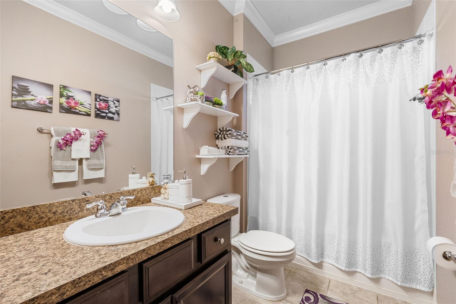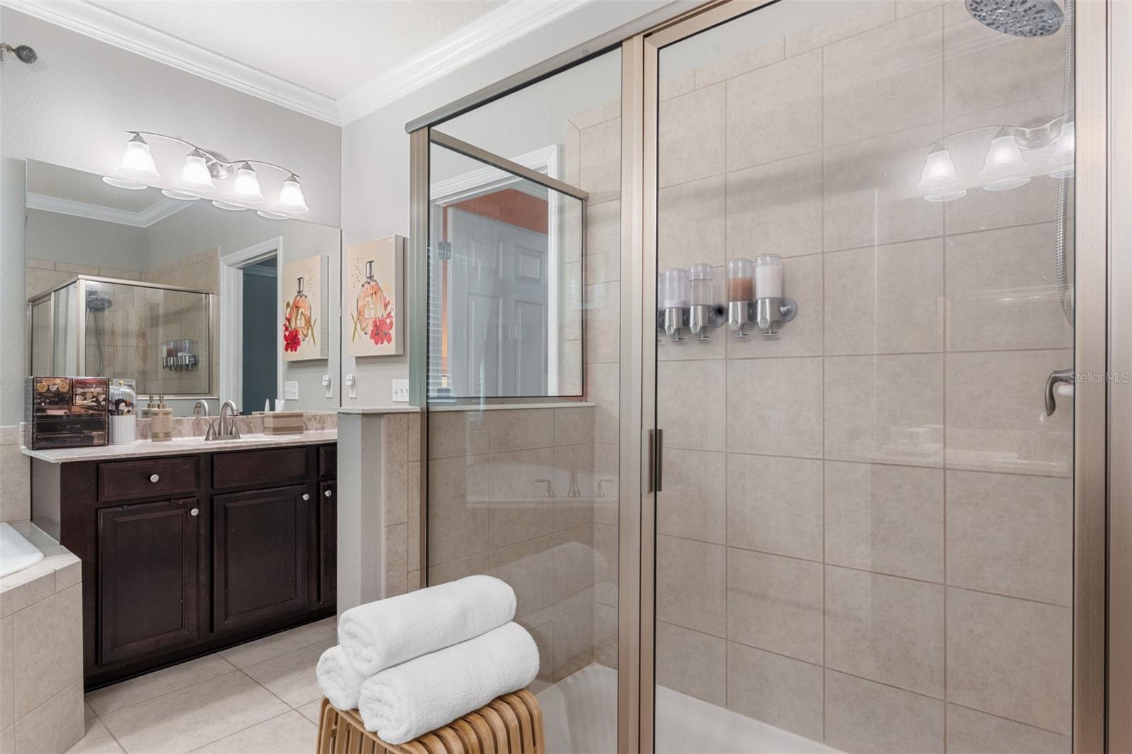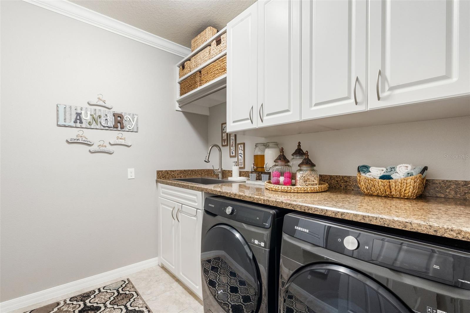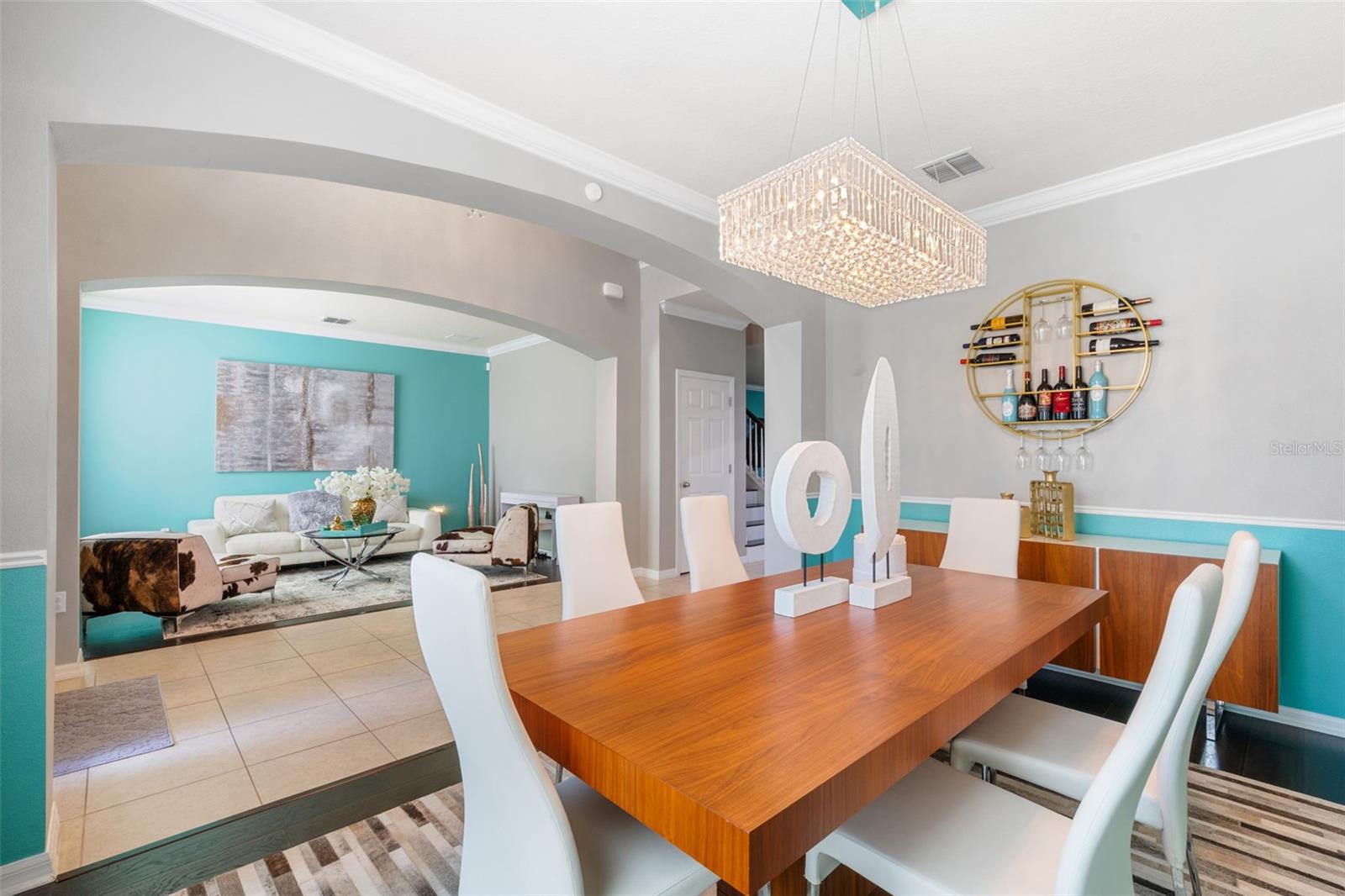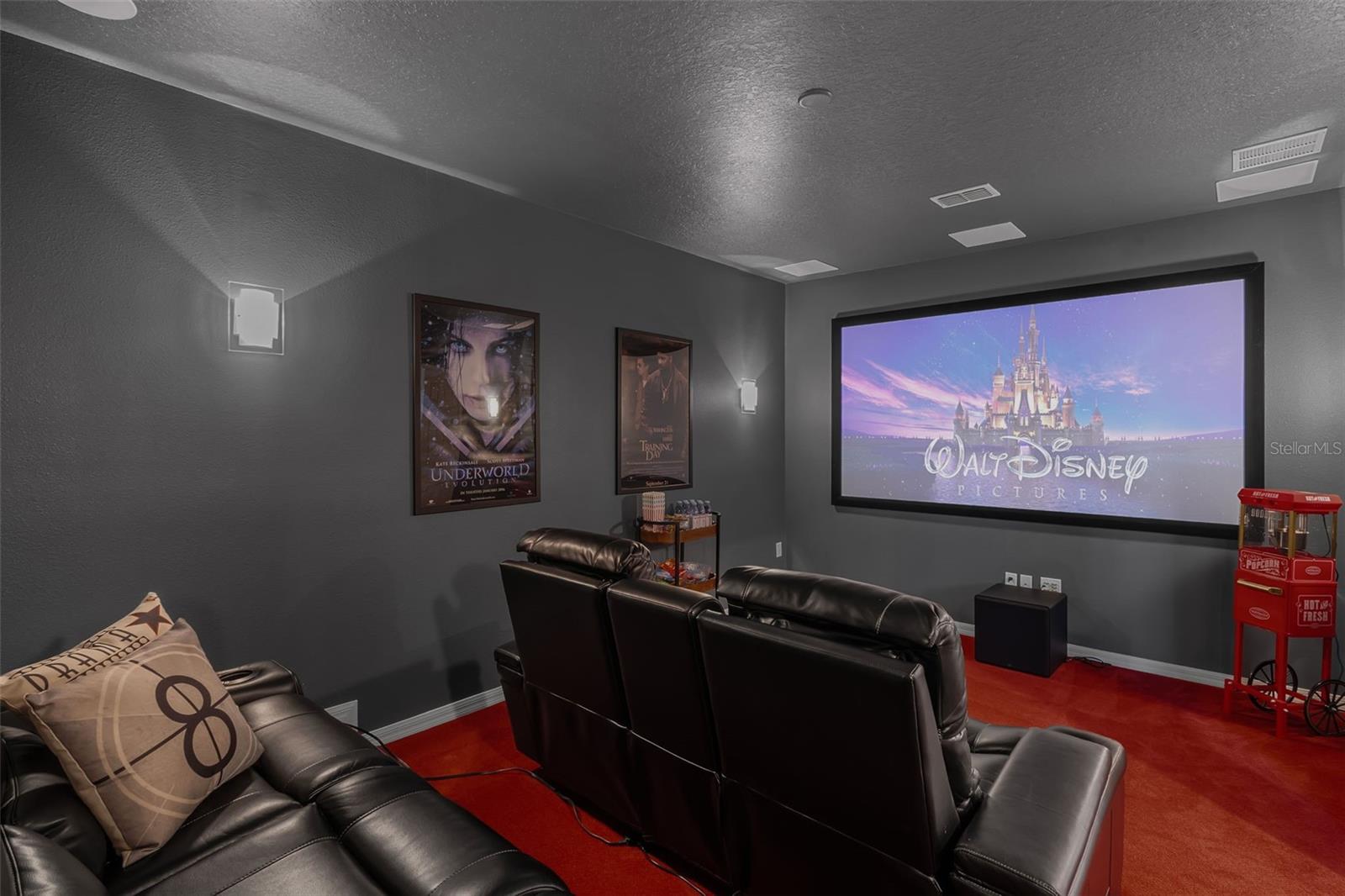 This truly stunning and meticulously cared for five-bedroom, four-bath residence offers over 4, 250 square feet of beautifully designed living space, perfect for both family living and entertaining. When you first walk in you can't help but notice the super high ceiling with a massive, stunningly elegant Swarovski crystal chandelier hanging in the entryway. A true showpiece! The dining room to the right also has a Swarovski crystal chandelier for ultimate elegance while you entertain and impress friends and family. The spacious floor plan features a gourmet kitchen with tons of cabinets, a walk-in pantry and granite counters. The kitchen overlooks the family room and the French doors that lead you to the pool area. There is also a generously sized office and dedicated exercise room on the first level as well as a full bath with a door out to the pool area. Heading to the second level you will find a large, light and bright loft for further entertaining and relaxing. The loft also has another large walk-in storage closet with built-in shelving. The luxury vinyl flooring runs through the second floor except for the awesome theater room. No need to go out to the movies for your cinematic experience. The theater room has a huge screen and fantastic picture quality. The sound quality is great as well. Cross through the loft to find the huge primary bedroom suite, also equipped with surround sound. The primary bath has two completely separate vanities, a huge glass walk-in shower and large soaking tub. The closet is fit for royalty. It measures 11-by-12 feet with custom built-ins to fit an abundance of shoes and wardrobe. There are three more extra large bedrooms upstairs all with luxury vinyl flooring and each with walk-in custom closets. The storage in this home is abundant! You will find two more full baths both with tub/shower combos. Walk down the elegant stairway and then outside to your personal resort oasis. A massive screen enclosure keeps you safe from bugs while you relax or swim in the stunning, crystal blue 15-by-30-foot saltwater swimming pool with a heated spa. Your feet will find comfort walking on the exterior all-paver deck. There is a gazebo in the corner for more shade, lounging and privacy. The stone summer kitchen and bar area are outstanding for entertaining friends and family. Beautifully custom-built with a grill, fridge, sink and granite counter bar. An unbelievable spot to catch the game or unwind in style. The exterior is beautifully landscaped and cared for. The home is set in a wonderful small community located so close to shopping, eateries, schools, places of worship and main highways. The fantastic downtown Clermont area where triathlons, races, festivals, and community events are held, is just minutes away. Two new top of the line AC units were just recently installed. This home also has Energy Star spray foam insulation. With its luxurious amenities, modern design, and resort-style features, this home offers the perfect blend of comfort and sophistication.
