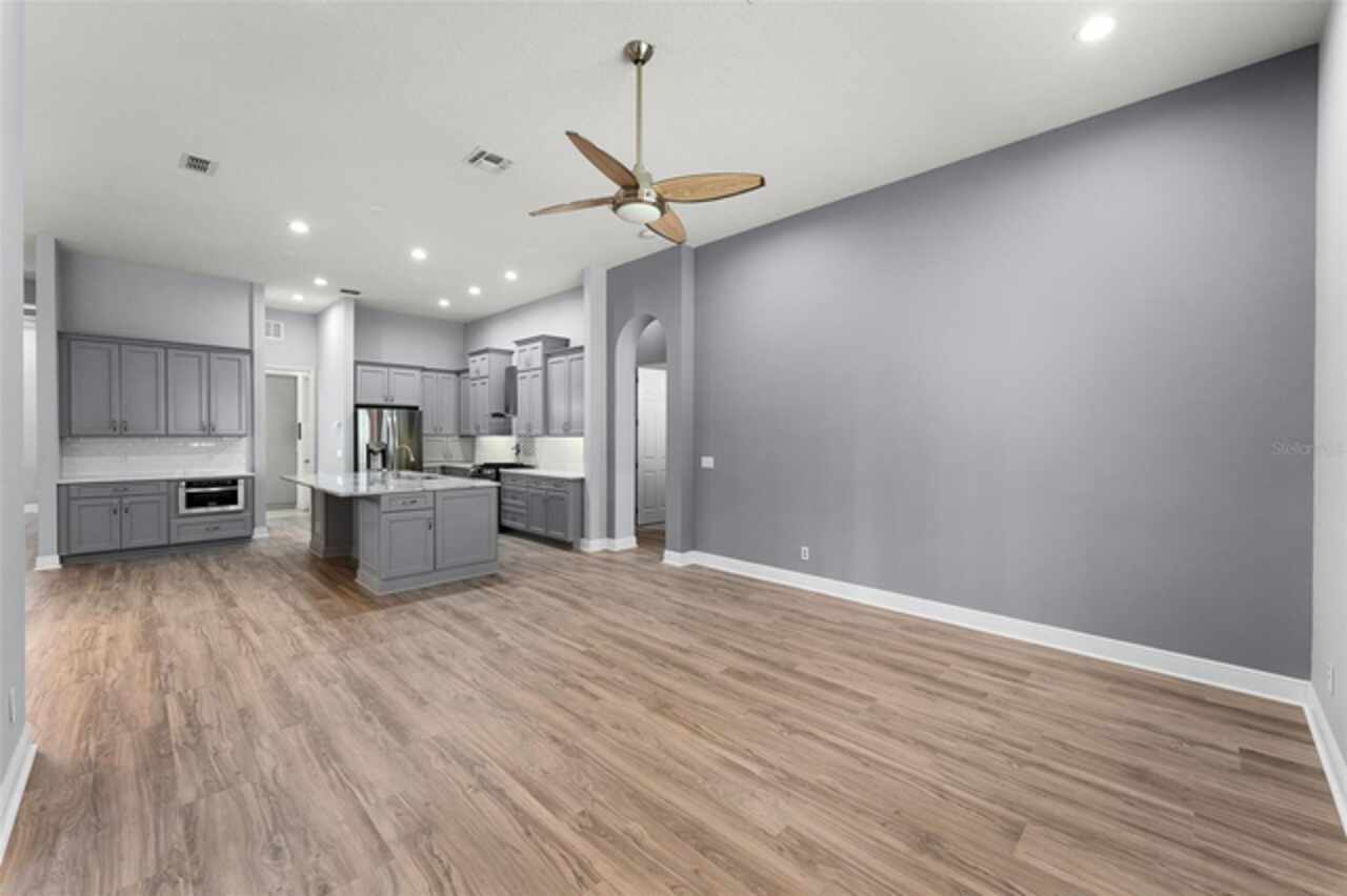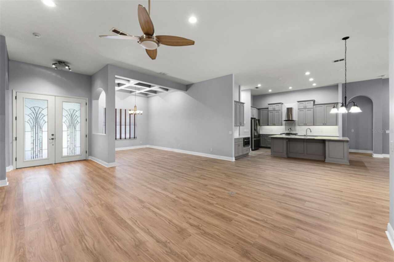 New Roof 2023! Your dream home awaits in Summit Greens. Located in the scenic rolling hills of Clermont, this upgraded three-bedroom, three-bath, a private office offers a refined blend of comfort and tranquility within the sought-after active-adult 55+ community of Summit Greens. With a little under 3, 000 SF, you will love the open-concept, light-filled living space featuring new flooring installed in 2025, enhancing the home’s light airy feel. The renovated kitchen includes granite countertops, a gas stove with custom hood, stainless steel appliances and a drawer-style microwave designed for convenience and entertaining. The spacious primary suite provides a retreat with dual vanities, a garden soaking tub and a separate walk-in shower. Two additional bedrooms and full baths offer comfort and privacy for guests. Designer light fixtures enhance the interior throughout. The private backyard features a stone-terrace wall that provides privacy and security while preserving views from the side patio. The backyard offers an opportunity for inspired gardening, creating your own personal retreat to blend natural beauty with functionality. The backyard also includes a large beautiful screened backyard patio perfect for entertaining dining.The screened front porch overlooks water and rolling hills from across the cul-de-sac, creating an ideal setting to relax. Summit Greens offers world-class amenities behind its 24-hour guard-gated entrance. Residents enjoy a guard gate secure golf community with resort-style indoor and outdoor heated pool, a spacious clubhouse, a fitness center, eight clay tennis courts and pickleball courts. Beyond your neighborhood, Clermont—known as the Choice of Champions—showcases rolling hills, 11 lakes and a variety of outdoor activities from boating and cycling to hiking. Local highlights include the LunaSea Alpaca Farm, a reflection of the area’s small-town charm. This move-in-ready home combines comfort and convenience with the lifestyle of one of Central Florida’s most desirable active-adult communities.