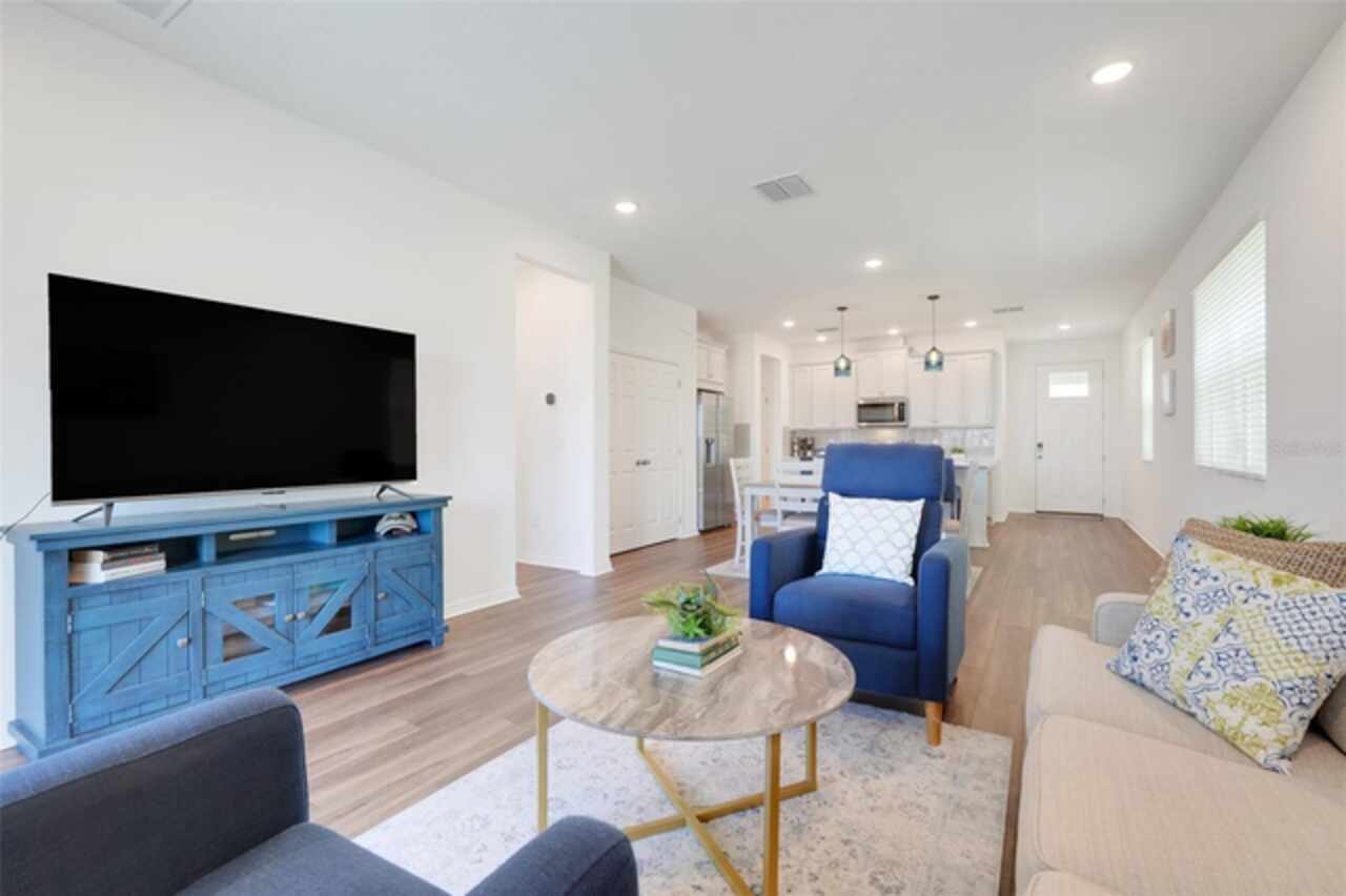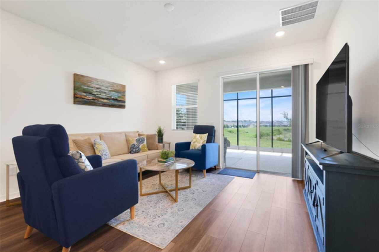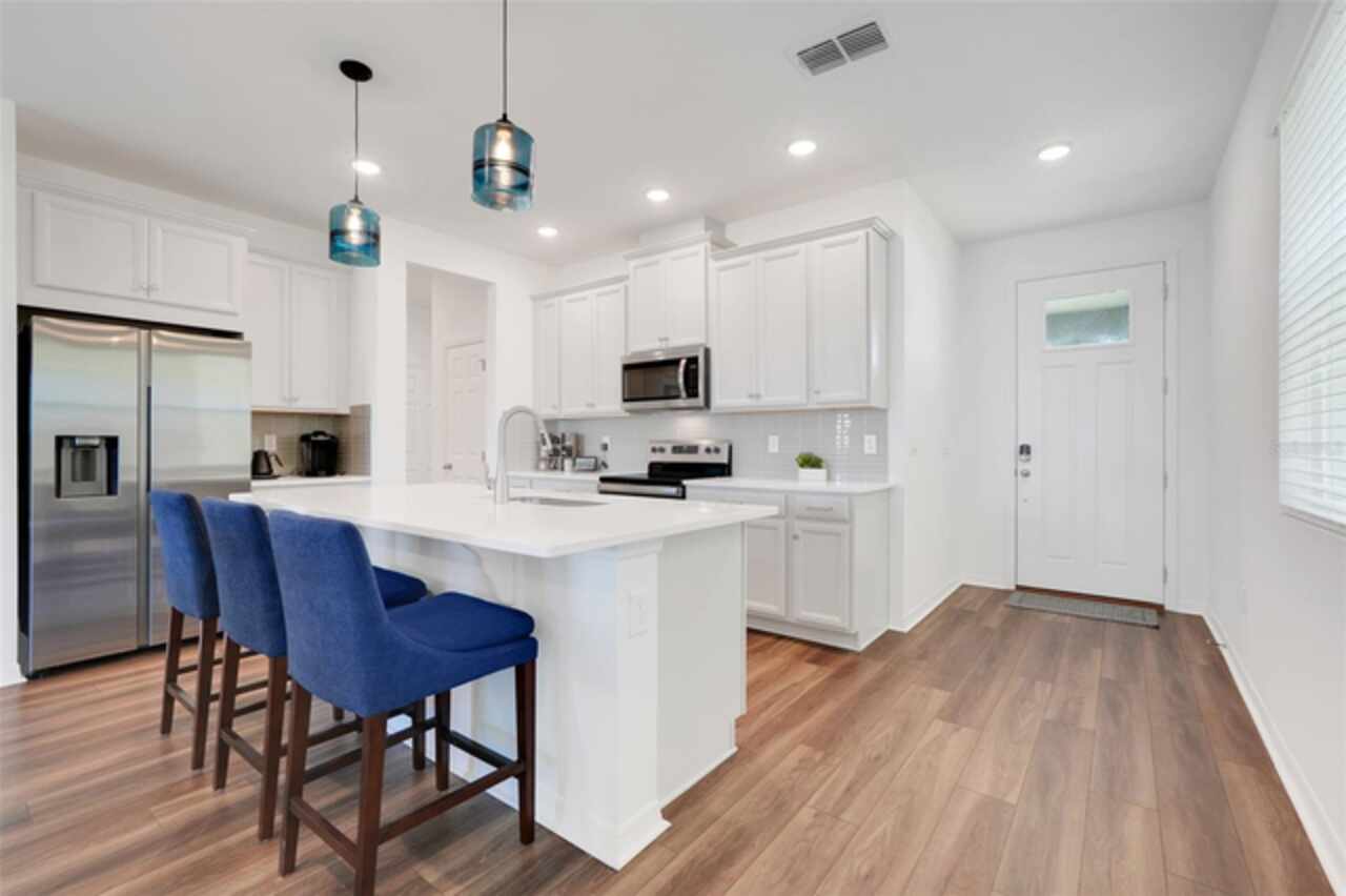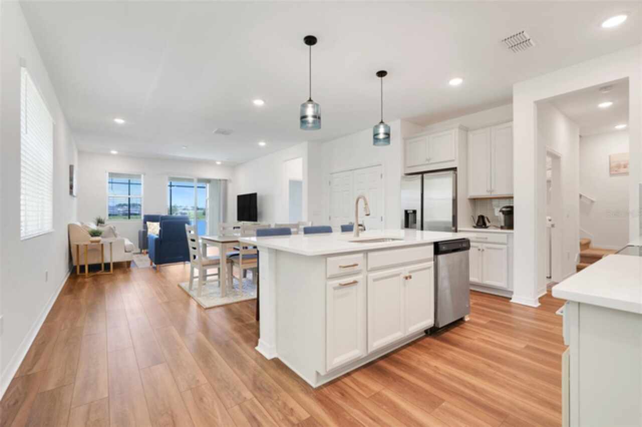 Welcome to your dream home in the GATED COMMUNITY of WATERBROOKE, perfectly positioned with easy access to major roadways including HWY 50/W COLONIAL, HWY 27, FLORIDA’S TURNPIKE, and the 429—making all of CENTRAL FLORIDA easily within reach. Enjoy the charm and convenience of being just minutes from HISTORIC DOWNTOWN CLERMONT, the WEST ORANGE TRAIL, DOWNTOWN WINTER GARDEN, and a vibrant mix of DINING, SHOPPING, and ENTERTAINMENT. This stunning 3-BEDROOM, 3-FULL BATHROOM VILLA showcases the best of FLORIDA LIVING, starting with a COVERED, EXTENDED, and SCREENED-IN PATIO that overlooks a breathtaking WEST-FACING WATER VIEW. Directly across the lake, you'll find Waterbrooke’s exceptional RECREATION CENTER featuring a CLUBHOUSE, FITNESS CENTER, RESORT-STYLE POOL, SPLASH PAD, PLAYGROUND, PAW PARK, YOGA LAWN, and plenty of LOUNGE SEATING. The community also offers TREE-LINED STREETS, WALKING PATHS, NATURE TRAILS, and tranquil WATER VIEWS throughout. This villa is truly LOW-MAINTENANCE living at its finest, with the association fee covering everything from landscaping to exterior paint and future roof replacement. Additional services include Common Area Taxes, Escrow Reserves Fund, Insurance, Grounds, On-Site Management, Pest Control, Private Roads, Recreational Facilities and Trash Removal—giving you peace of mind and more time to enjoy your surroundings. Step inside through a charming COVERED ENTRY into a bright and welcoming FOYER and GREAT ROOM, highlighted by LUXURY VINYL PLANK FLOORING with a rich walnut finish, LED LIGHTING, and windows adorned with WOODEN BLINDS. The heart of the home is the DESIGNER KITCHEN, outfitted with STAINLESS STEEL WHIRLPOOL APPLIANCES, SOLID WOOD CABINETRY, QUARTZ COUNTERTOPS, and a STACKED GLASS TILE BACKSPLASH. The OVERSIZED ISLAND features a SINGLE-BASIN FARMHOUSE SINK, PULL-DOWN FAUCET, ADDITIONAL STORAGE, and a BREAKFAST BAR, ideal for casual dining or entertaining. Adjacent to the kitchen is a spacious DINING AREA with ample room for a large table and a CLOSET PANTRY for added convenience. The FAMILY ROOM flows seamlessly to the outdoors through SLIDING GLASS DOORS, perfectly framing the LAKE VIEW. The PRIMARY SUITE is a serene retreat with WATER VIEWS, a CEILING FAN, a luxurious ENSUITE BATH featuring a large WALK-IN SHOWER, DUAL VANITIES with QUARTZ COUNTERTOPS, and an expansive WALK-IN CLOSET. Both SECONDARY BEDROOMS include CEILING FANS, BUILT-IN CLOSETS, and private access to full bathrooms just steps away. An UPSTAIRS LOFT provides versatile space for an ADDITIONAL SLEEPING AREA, HOME OFFICE, or MEDIA ROOM. Additional features include an INDOOR LAUNDRY ROOM with WHIRLPOOL WASHER AND DRYER, and a 2-CAR GARAGE with EXTRA DRIVEWAY PARKING. Don’t miss this golden opportunity to call this MOVE-IN READY, LAKEVIEW VILLA your very own oasis in one of CLERMONT’S MOST DESIRABLE COMMUNITIES!