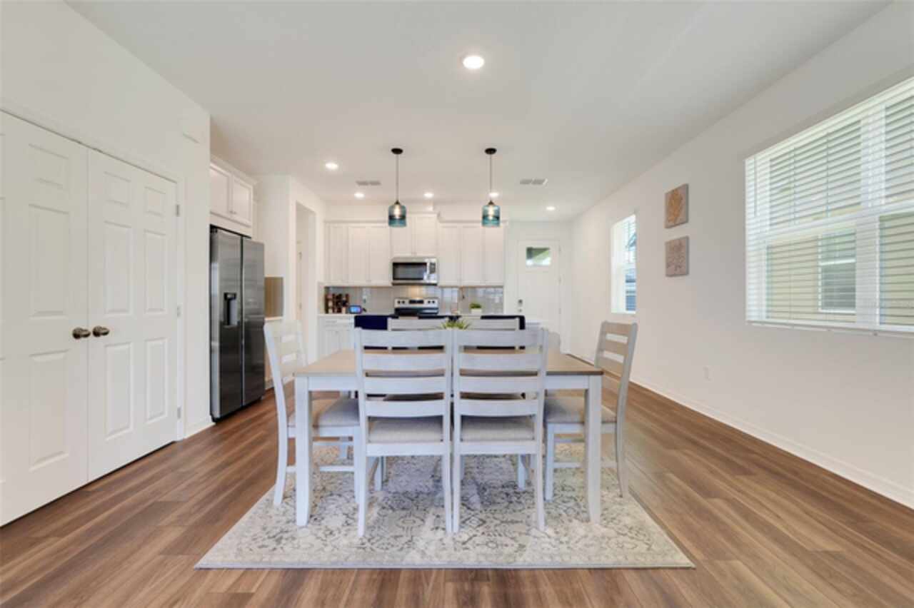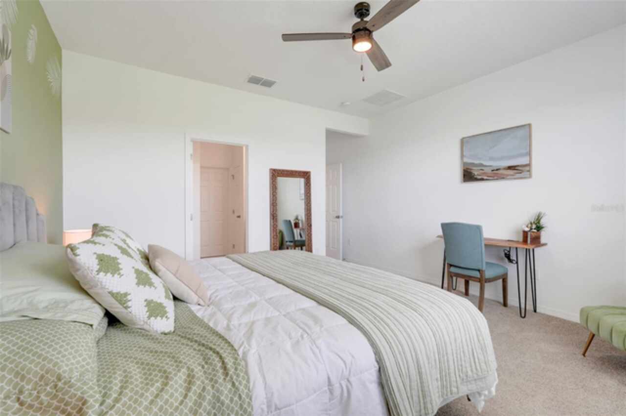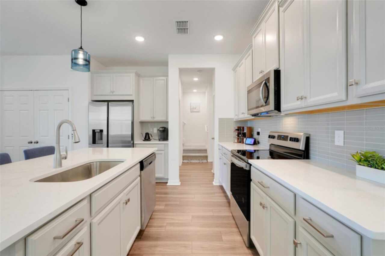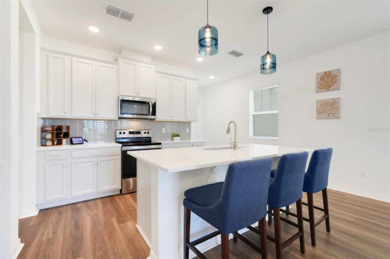 Welcome to your dream home in the GATED COMMUNITY of WATERBROOKE, perfectly positioned with easy access to major roadways including HWY 50/W COLONIAL, HWY 27, FLORIDA’S TURNPIKE, and the 429—making all of CENTRAL FLORIDA easily within reach. Enjoy the charm and convenience of being just minutes from HISTORIC DOWNTOWN CLERMONT, the WEST ORANGE TRAIL, DOWNTOWN WINTER GARDEN, and a vibrant mix of DINING, SHOPPING, and ENTERTAINMENT. This stunning 3-BEDROOM, 3-FULL BATHROOM VILLA showcases the best of FLORIDA LIVING, starting with a COVERED, EXTENDED, and SCREENED-IN PATIO that overlooks a breathtaking WEST-FACING WATER VIEW. Directly across the lake, you'll find Waterbrooke’s exceptional RECREATION CENTER featuring a CLUBHOUSE, FITNESS CENTER, RESORT-STYLE POOL, SPLASH PAD, PLAYGROUND, PAW PARK, YOGA LAWN, and plenty of LOUNGE SEATING. The community also offers TREE-LINED STREETS, WALKING PATHS, NATURE TRAILS, and tranquil WATER VIEWS throughout. This villa is truly LOW-MAINTENANCE living at its finest, with the association fee covering everything from landscaping to exterior paint and future roof replacement. Additional services include Common Area Taxes, Escrow Reserves Fund, Insurance, Grounds, On-Site Management, Pest Control, Private Roads, Recreational Facilities and Trash Removal—giving you peace of mind and more time to enjoy your surroundings. Step inside through a charming COVERED ENTRY into a bright and welcoming FOYER and GREAT ROOM, highlighted by LUXURY VINYL PLANK FLOORING with a rich walnut finish, LED LIGHTING, and windows adorned with WOODEN BLINDS. The heart of the home is the DESIGNER KITCHEN, outfitted with STAINLESS STEEL WHIRLPOOL APPLIANCES, SOLID WOOD CABINETRY, QUARTZ COUNTERTOPS, and a STACKED GLASS TILE BACKSPLASH. The OVERSIZED ISLAND features a SINGLE-BASIN FARMHOUSE SINK, PULL-DOWN FAUCET, ADDITIONAL STORAGE, and a BREAKFAST BAR, ideal for casual dining or entertaining. Adjacent to the kitchen is a spacious DINING AREA with ample room for a large table and a CLOSET PANTRY for added convenience. The FAMILY ROOM flows seamlessly to the outdoors through SLIDING GLASS DOORS, perfectly framing the LAKE VIEW. The PRIMARY SUITE is a serene retreat with WATER VIEWS, a CEILING FAN, a luxurious ENSUITE BATH featuring a large WALK-IN SHOWER, DUAL VANITIES with QUARTZ COUNTERTOPS, and an expansive WALK-IN CLOSET. Both SECONDARY BEDROOMS include CEILING FANS, BUILT-IN CLOSETS, and private access to full bathrooms just steps away. An UPSTAIRS LOFT provides versatile space for an ADDITIONAL SLEEPING AREA, HOME OFFICE, or MEDIA ROOM. Additional features include an INDOOR LAUNDRY ROOM with WHIRLPOOL WASHER AND DRYER, and a 2-CAR GARAGE with EXTRA DRIVEWAY PARKING. Don’t miss this golden opportunity to call this MOVE-IN READY, LAKEVIEW VILLA your very own oasis in one of CLERMONT’S MOST DESIRABLE COMMUNITIES!