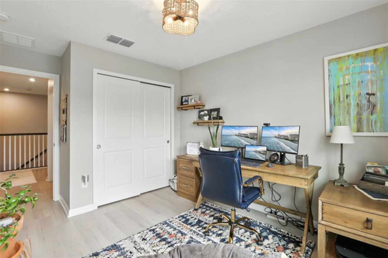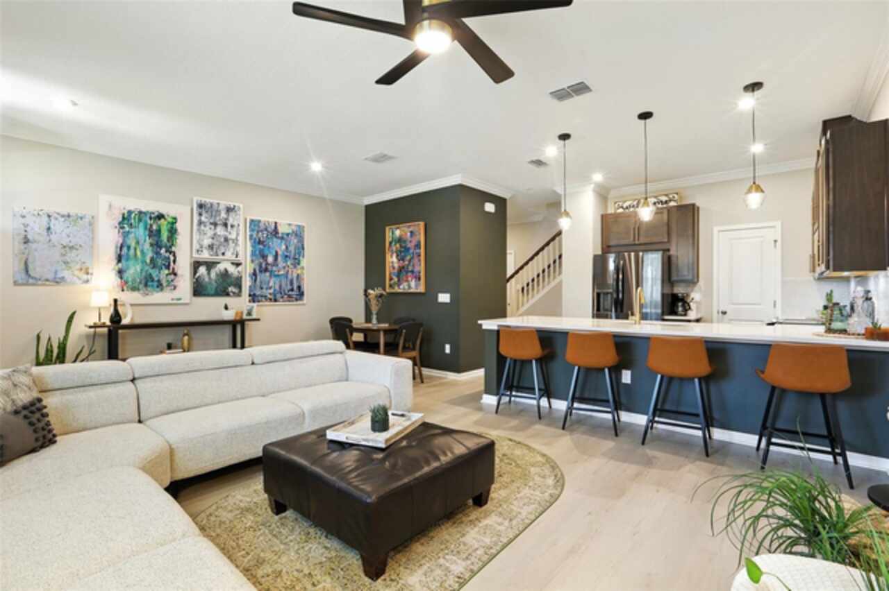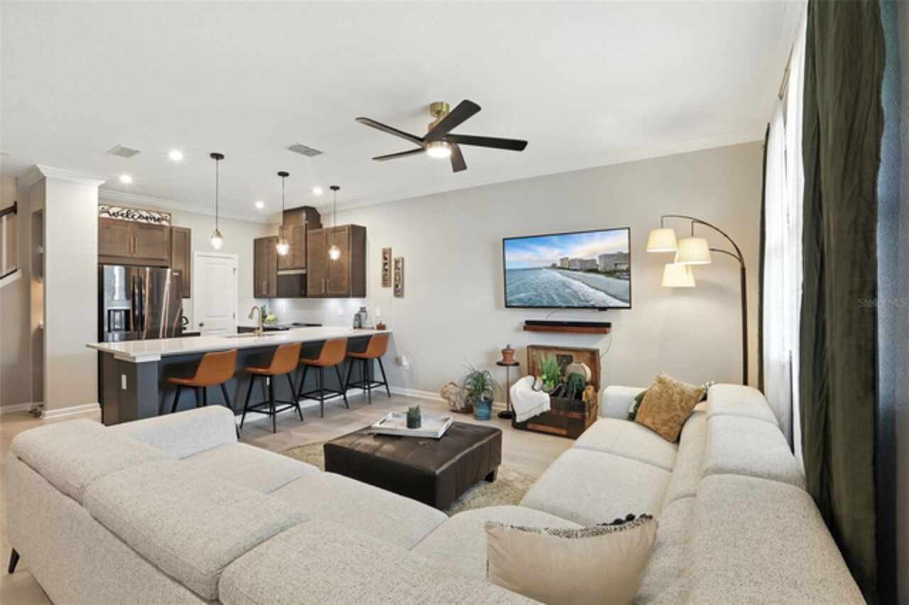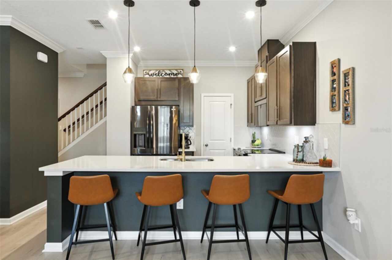 Welcome to your dream home in the highly sought-after Waterbrooke community! This stunning townhome offers the perfect blend of cozy living and spacious comfort. Imagine yourself unwinding on your covered front porch, the perfect spot to start or end your day. As you step inside, you're greeted by an open-concept main floor designed for modern living. The living, dining, and kitchen areas flow seamlessly together, creating an inviting space perfect for entertaining or relaxing. The chef-inspired kitchen boasts gorgeous Quartz countertops, a full suite of Whirlpool appliances, and a Frigidaire refrigerator, all complemented by a custom-built pantry with ample storage. The first floor also features crown molding and a convenient half bath, with stunning luxury vinyl plank (LVP) flooring that extends throughout the entire home. Upstairs, you'll find the serene living quarters, including a luxurious primary suite designed for relaxation. The en-suite bathroom is a true retreat, featuring a spacious walk-in shower, quartz counter tops, dual sinks, and a walk-in closet with custom-built ins offering a generous storage system to keep all your items organized. Two additional secondary bedrooms and a guest bathroom provide plenty of space for guests or loved ones. You'll also love the convenient upstairs laundry closet, making laundry day a breeze. This home is packed with tasteful upgrades, from the upgraded light fixtures and faucets to the modern drawer pulls. The generous two-car garage is a tinkerer's dream, featuring two ceiling storage racks to keep your space neat. Beyond the home, the Waterbrooke community offers amenity-rich living. Take advantage of the 24-hour fitness center, clubhouse, sparkling pool/ splash pad, or playground. Your furry friends will love the dedicated dog park, and with included lawn care and exterior pest control, you can enjoy a low-maintenance lifestyle. Located just minutes from downtown Winter Garden and the West Orange Trail, you'll have easy access to charming shops, delectable dining, and endless outdoor activities. For the theme park enthusiasts, this home is a short drive to Central Florida's major attractions: Walt Disney World~20 minutes, Universal Studios Orlando ~30 minutes, International Drive~ 30 minutes. This home is a rare opportunity to experience the best of Clermont living. Schedule your private showing today!