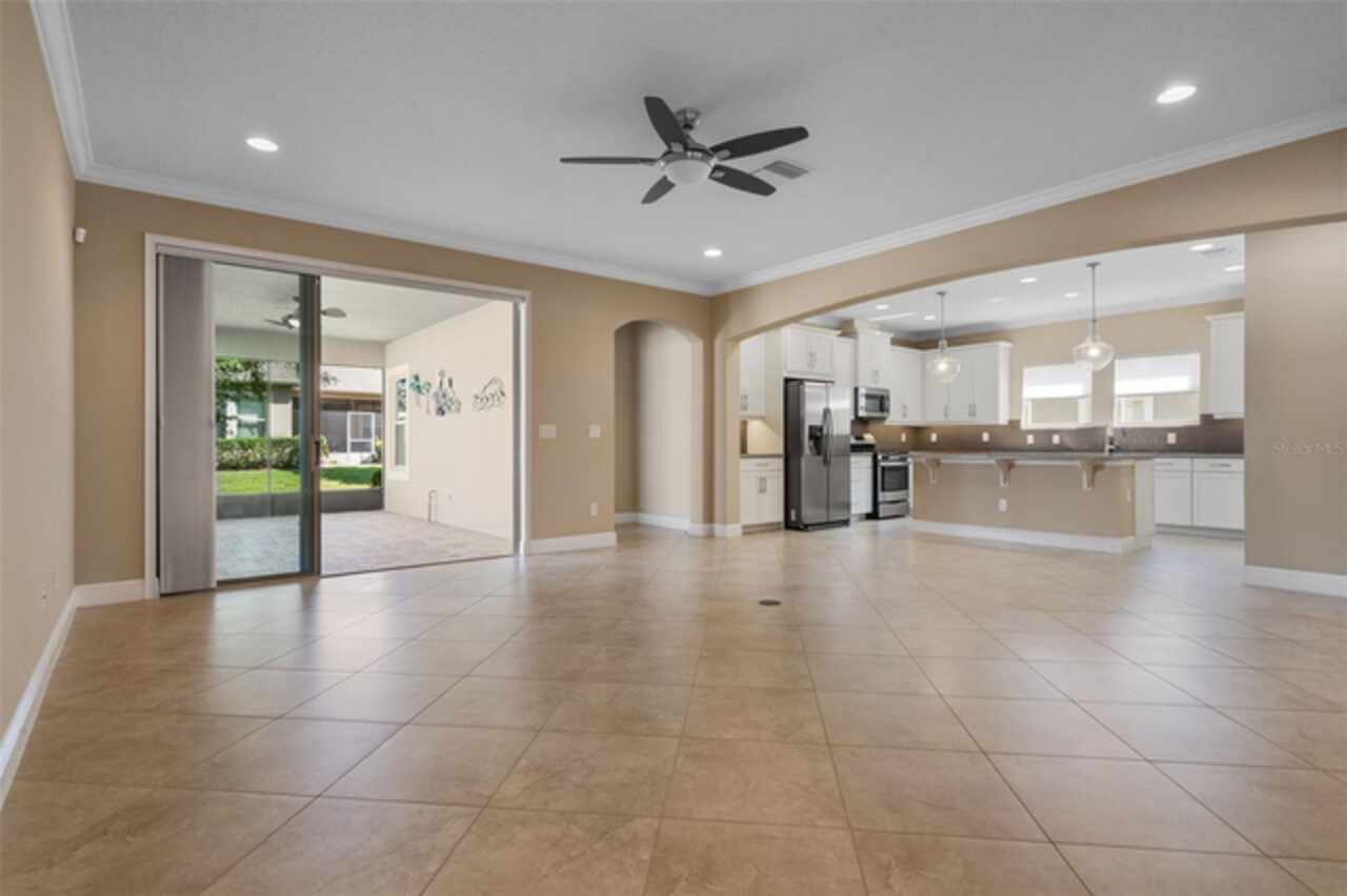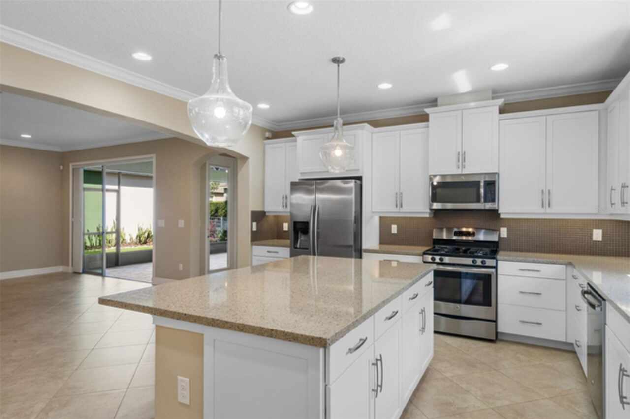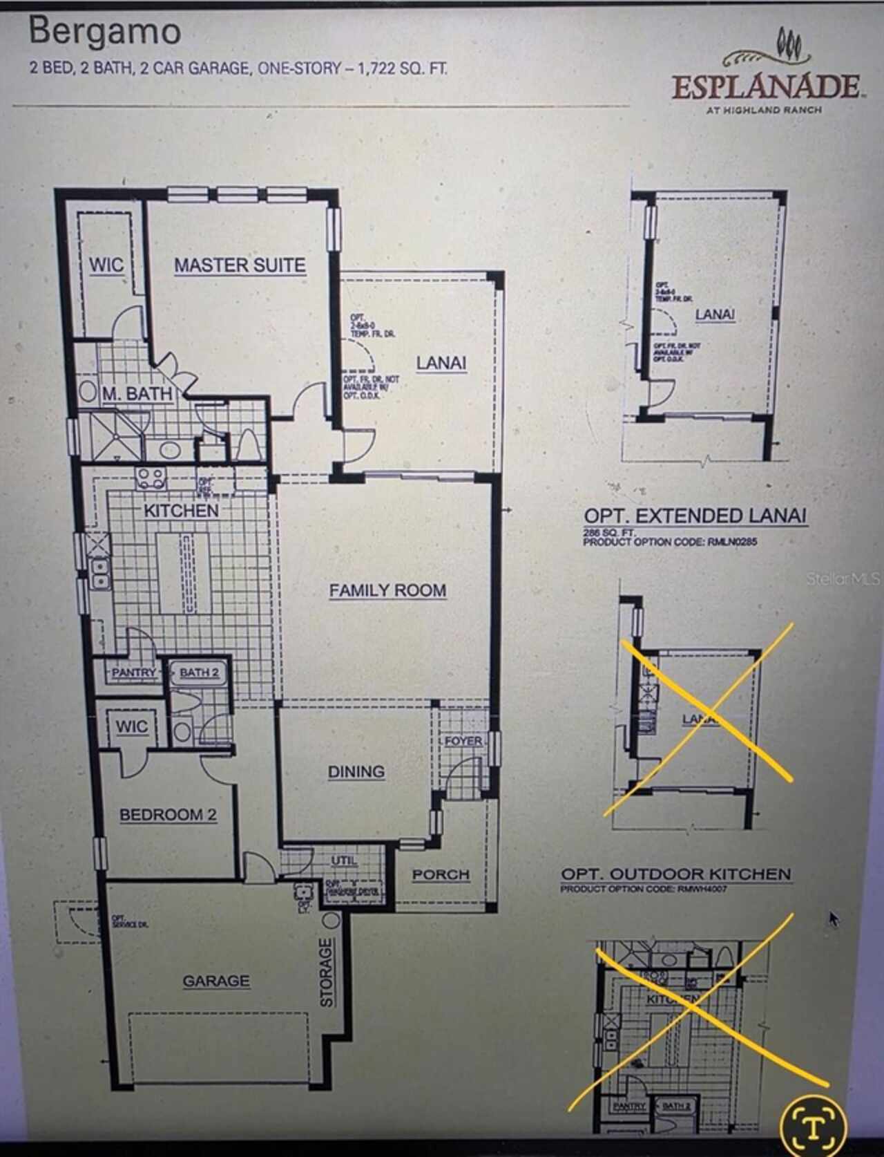 One or more photo(s) has been virtually staged. Welcome to exceptional resort-style living in the highly desirable gated 55+ community of Esplanade at Highland Ranch, built by Taylor Morrison. This beautifully maintained one-story Bergamo planwith a charming "C" elevation offers 2 bedrooms and 2 bathroom, blending comfort, functionality, and style in a thoughtfully designed layout.As you step inside, you're welcomed by a foyer, formal dining area with tray ceiling, spacious living room, and an open concept , kitchen with a large island, all enhanced by 20-inch diagonal-set tile flooring** and elegant crown molding. The main living areas seamlessly flow to an extended screened lanai, accessible through stacking sliders in the living room and a French door near the primary suite. The lanai features a connected gas line installed under brick pavers . The kitchen is a highlight, featuring 42-inch white solid wood cabinetry, quartz countertops, a tile backsplash, walk-in pantry, two pendant lights over the island, and stainless steel appliances, including a gas stove. The primary suite includes a tray ceiling, large walk-in shower, double vanities, and a walk-in closet with built-in shelving that remains with the home .Both bedrooms offer privacy in a split-bedroom layout and are finished with plank-style porcelain tile flooring. A utility room sits just off the hallway, conveniently located near the two-car garage, which includes an access door, an insulated garage door, a keyless entry pad, and a myQ smart garage opener.Additional features include plantation shutters in the foyer, bedrooms, and dining area, cordless cellular window treatments in the kitchen and living room, ceiling fans, and a screened lanai perfect for enjoying the Florida lifestyle. This home is ideally located just a short walk to the clubhouse and community mailboxes. The HOA fees cover full lawn care, fertilization, and irrigation, along with access to the community's incredible resort-style amenities. These include a clubhouse with a full-time Lifestyle Director, a lagoon-style pool, lap pool, resistance pool, and spa, an outdoor kitchen with barbecue area and fire pit, an event and fitness lawn, and a variety of sports courts, including tennis, pickleball, and bocce. There's also a bark park, fitness center, movement studio, game room, great room, a catering kitchen with coffee bar, and an expansive covered lanai for social gatherings.The community is ideally located near a new Publix, the Florida Turnpike, shopping centers, South Lake Hospital , the library, restaurants, and more. Plus, you'll love being close to Downtown Clermont, known for its scenic hills, chain of lakes, and local events like First Friday Food Trucks and the Sunday Farmers' Market. Home is located 30 miles west of Orlando , 45 minutes to Disney, Sea World or Universal Studios . Home is also minutes away from the Advent Hospital and Crooked Can Brewery that is set to open at the end of year. FLOOR PLAN, SURVEY, FEATURE SHEET, HOA DOCUMENTS, ARE AVAILABLE.