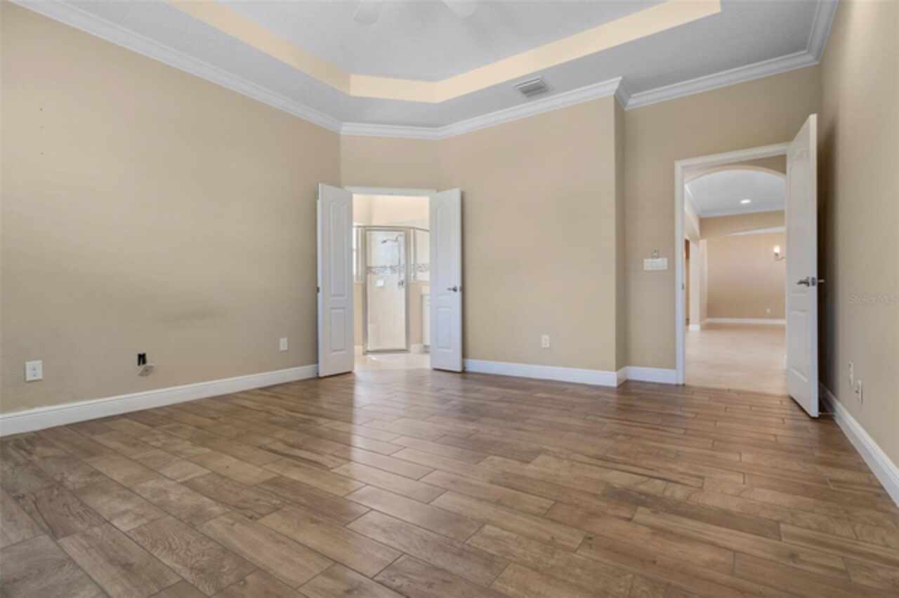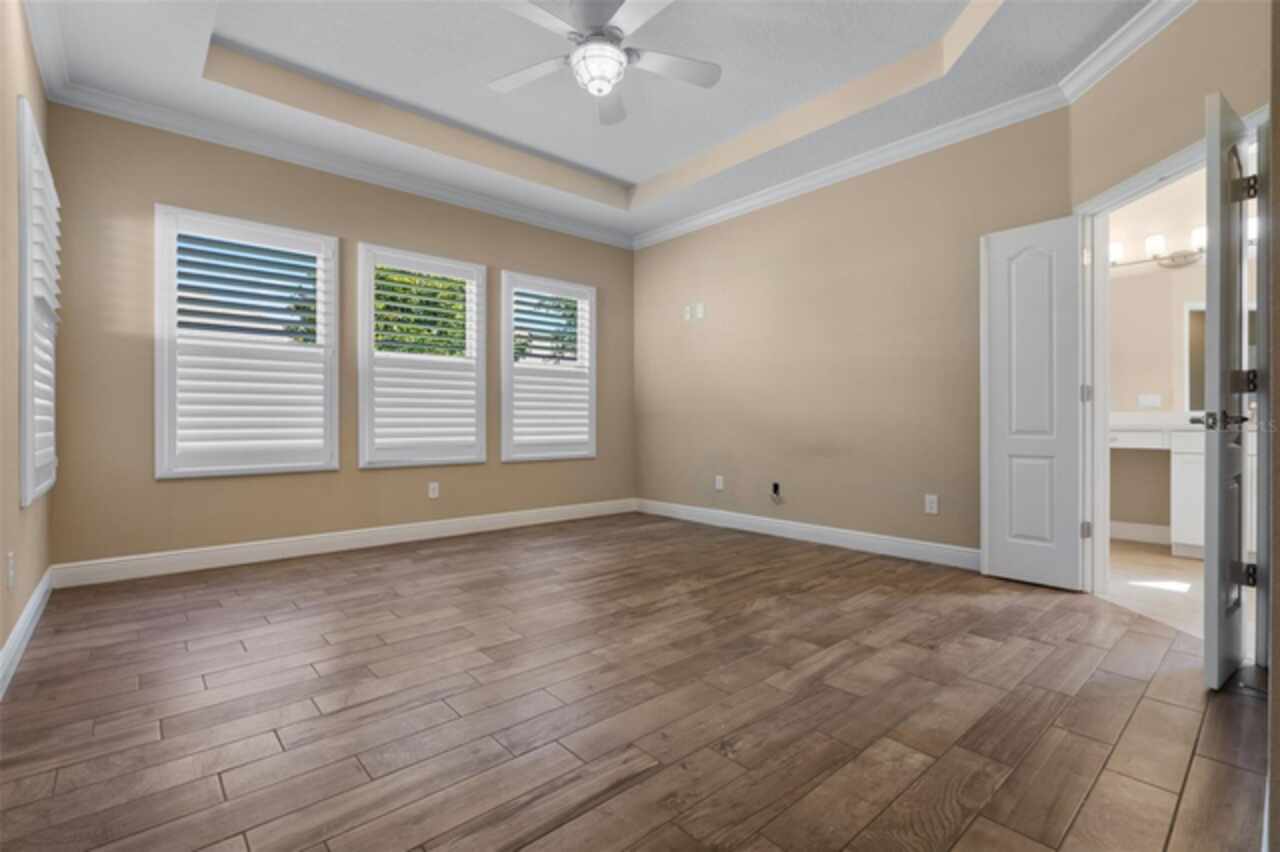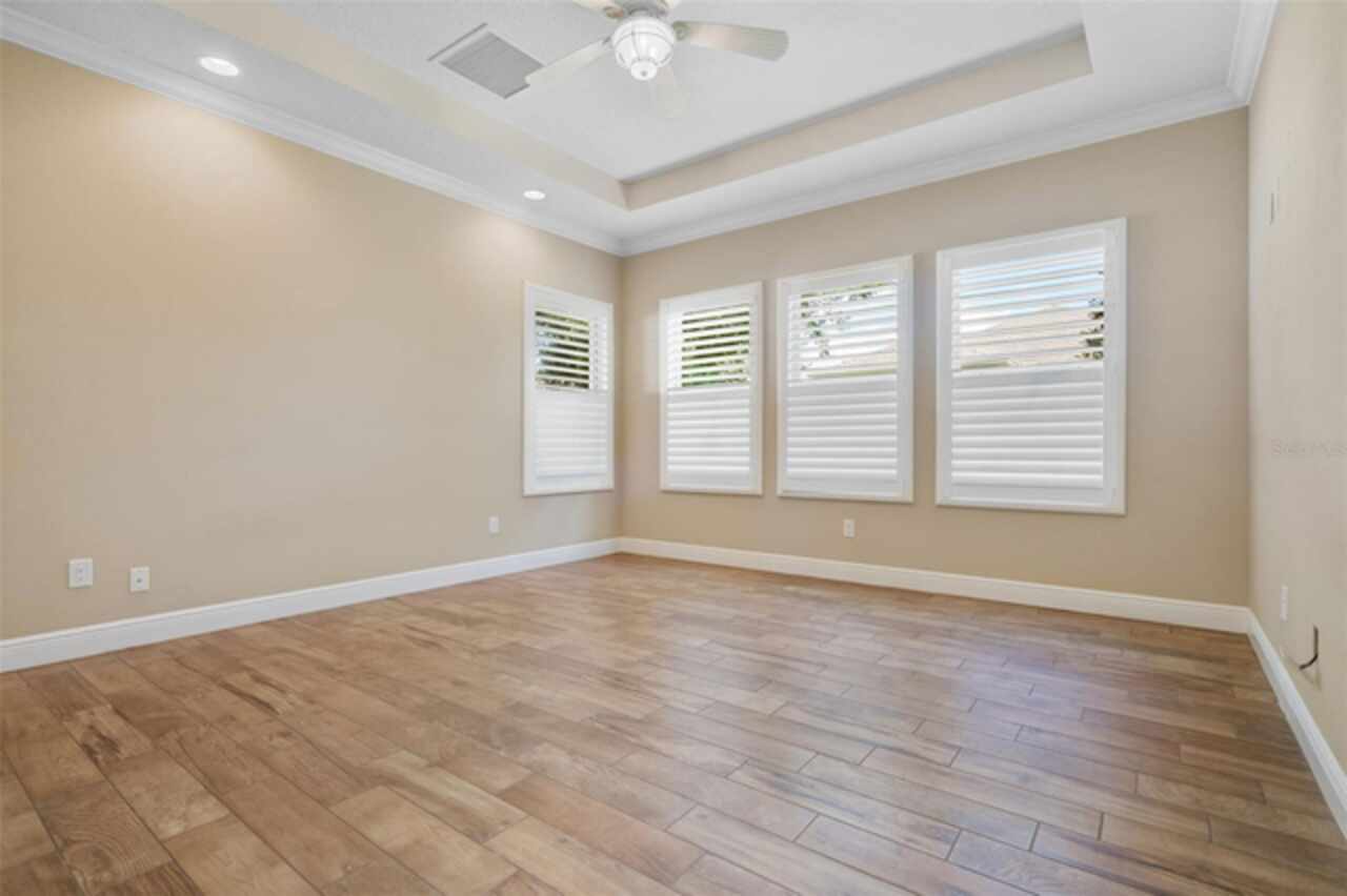 One or more photo(s) has been virtually staged. Welcome to exceptional resort-style living in the highly desirable gated 55+ community of Esplanade at Highland Ranch, built by Taylor Morrison. This beautifully maintained one-story Bergamo planwith a charming "C" elevation offers 2 bedrooms and 2 bathroom, blending comfort, functionality, and style in a thoughtfully designed layout.As you step inside, you're welcomed by a foyer, formal dining area with tray ceiling, spacious living room, and an open concept , kitchen with a large island, all enhanced by 20-inch diagonal-set tile flooring** and elegant crown molding. The main living areas seamlessly flow to an extended screened lanai, accessible through stacking sliders in the living room and a French door near the primary suite. The lanai features a connected gas line installed under brick pavers . The kitchen is a highlight, featuring 42-inch white solid wood cabinetry, quartz countertops, a tile backsplash, walk-in pantry, two pendant lights over the island, and stainless steel appliances, including a gas stove. The primary suite includes a tray ceiling, large walk-in shower, double vanities, and a walk-in closet with built-in shelving that remains with the home .Both bedrooms offer privacy in a split-bedroom layout and are finished with plank-style porcelain tile flooring. A utility room sits just off the hallway, conveniently located near the two-car garage, which includes an access door, an insulated garage door, a keyless entry pad, and a myQ smart garage opener.Additional features include plantation shutters in the foyer, bedrooms, and dining area, cordless cellular window treatments in the kitchen and living room, ceiling fans, and a screened lanai perfect for enjoying the Florida lifestyle. This home is ideally located just a short walk to the clubhouse and community mailboxes. The HOA fees cover full lawn care, fertilization, and irrigation, along with access to the community's incredible resort-style amenities. These include a clubhouse with a full-time Lifestyle Director, a lagoon-style pool, lap pool, resistance pool, and spa, an outdoor kitchen with barbecue area and fire pit, an event and fitness lawn, and a variety of sports courts, including tennis, pickleball, and bocce. There's also a bark park, fitness center, movement studio, game room, great room, a catering kitchen with coffee bar, and an expansive covered lanai for social gatherings.The community is ideally located near a new Publix, the Florida Turnpike, shopping centers, South Lake Hospital , the library, restaurants, and more. Plus, you'll love being close to Downtown Clermont, known for its scenic hills, chain of lakes, and local events like First Friday Food Trucks and the Sunday Farmers' Market. Home is located 30 miles west of Orlando , 45 minutes to Disney, Sea World or Universal Studios . Home is also minutes away from the Advent Hospital and Crooked Can Brewery that is set to open at the end of year. FLOOR PLAN, SURVEY, FEATURE SHEET, HOA DOCUMENTS, ARE AVAILABLE.