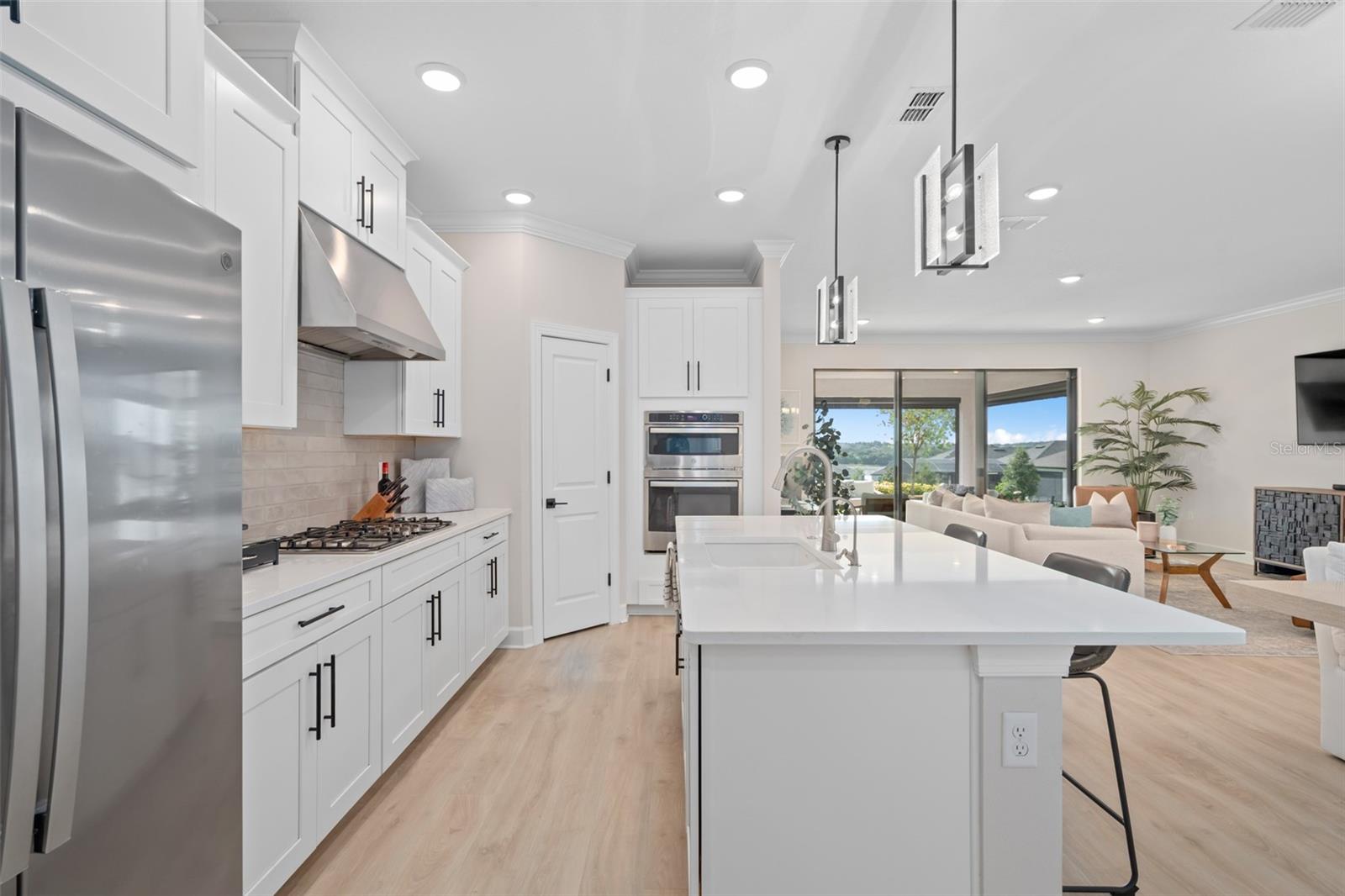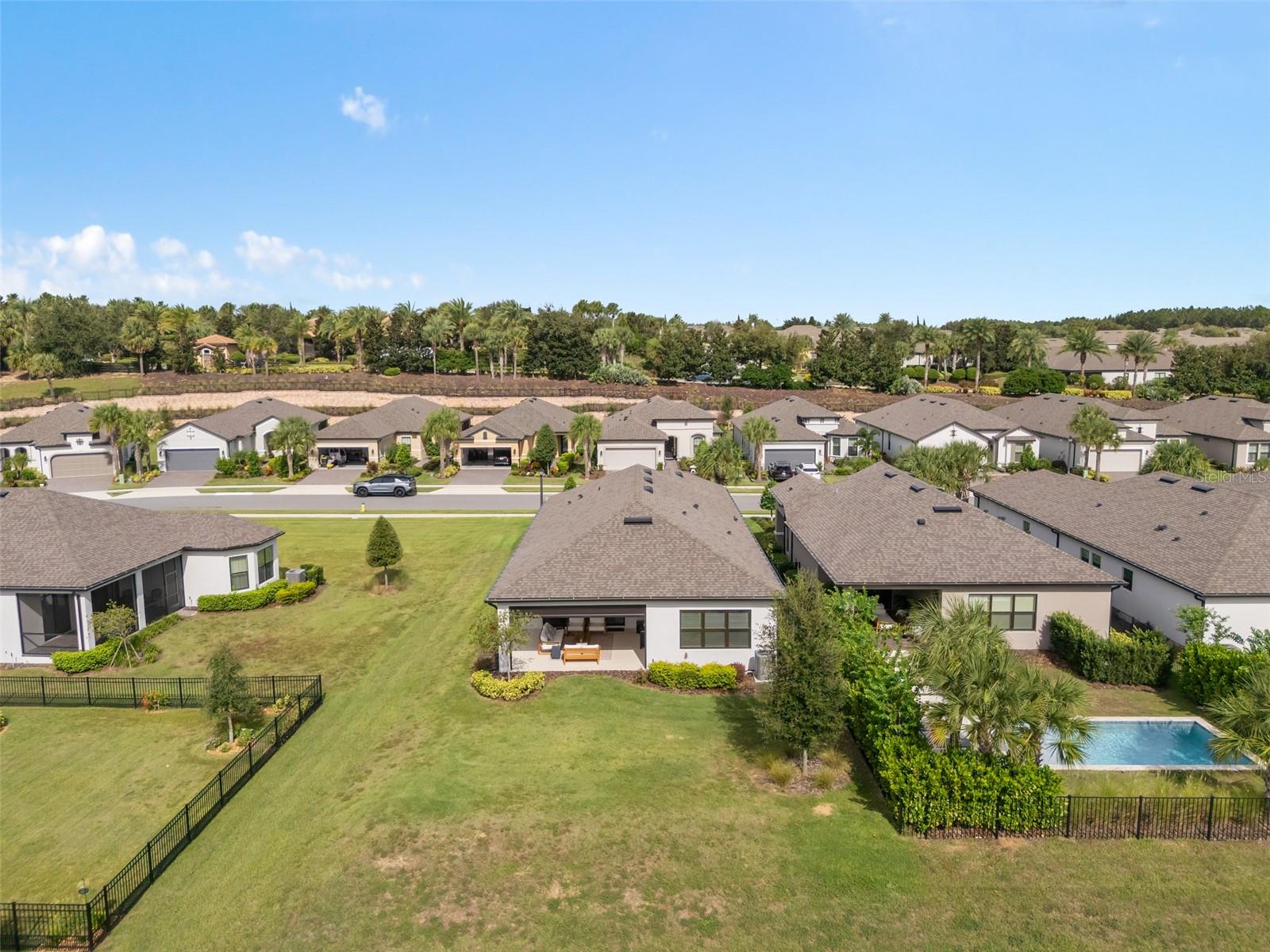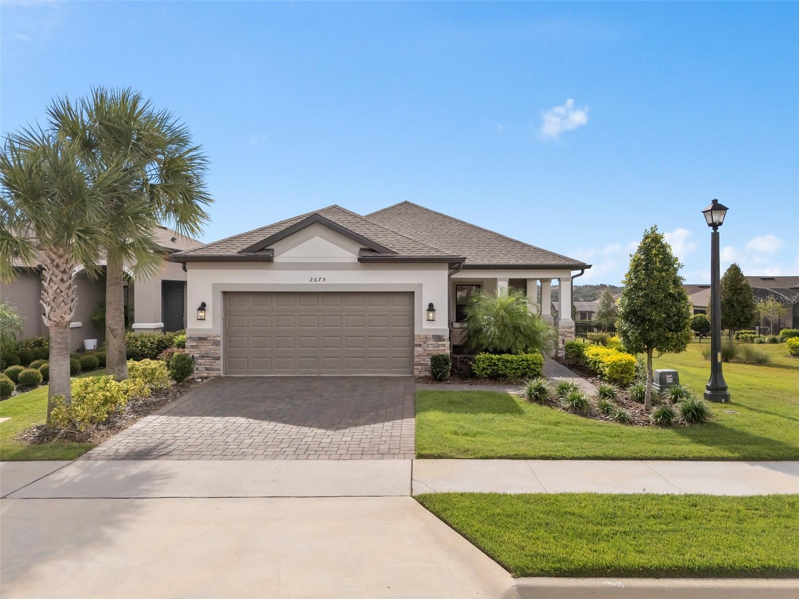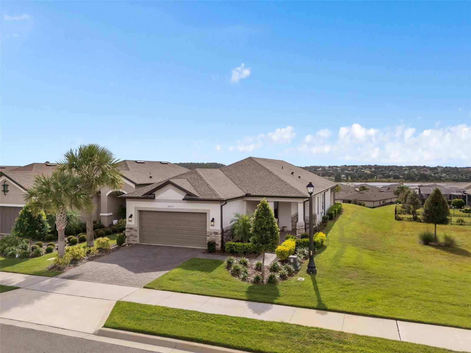 This Beautiful Matera model featuring an Upgraded Front Elevation with Stone Accents on a PREMIUM and ELEVATED LOT with BEAUTIFUL VIEWS and No Immediate Rear Neighbors will make you feel like you're home. Located in the Highly Sought after GATED 55+ Community of the Esplanade at Highland Ranch, this is surely a Home and Community you will be able to picture yourself being comfortable in. Once inside, the Neutral Color Palette Enhances the look of this 3 bedroom, 2.5 bath, 1, 829 sq ft ONE STORY home. The Open Floor Plan offers, GREAT room sizes, and many UPGRADES, all situated on a fabulous lot. You will appreciate the Wonderful GOURMET Kitchen Option with 42" Solid Wood Shaker Cabinetry offering Soft Close Drawers and Doors, Upgraded Cabinet Crown Molding, Under Counter Dual Trash Containers, Upgraded Stainless Steel Appliances, Ceramic Tile Backsplash, Quartz Countertops Throughout, Large Corner Pantry with Custom Organizational Shelves, Pendant Lighting over a BEAUTIFUL ISLAND with BREAKFAST BAR. Luxury Vinyl Plank Flooring is a beautiful Upgrade in the Main Living Area. The GENEROUS size of the Owners Suite offers a large WALK-IN SHOWER with a Seat, Frameless Glass Shower Enclosure, Comfort Height DOUBLE SINK Vanity, Separate Water Closet with a Comfort Height Toilet and WALK-IN CLOSET with a Fantastic Closet Organization System is sure to meet your needs. For convenience the LAUNDRY Room has Upper Storage. The Additional Two Bedrooms have Ample Space for Guests or a Private Office/Den. Other Included Features are 9'4" Ceilings, Additional Ceiling Lighting in the Family Room and Lanai, Crown Molding in the Main Living Areas and Primary Suite, Oversized Trim Throughout the Home, Window Blinds, Under Cover Front Porch Area, Under Roof Extended Lanai with Power Roll Down Shades, Energy Efficient Gas Tankless Hot Water Heater, R-38 Ceiling Insulation, Foam Filled Block Wall Insulation in the Living Areas, Rain Gutters and a PREMIUM Lot with Beautiful Views. The Garage is EXTENDED 4' and also has two Ceiling Storage Racks for your Convenience. COMMUNITY AMENITIES include an RESORT STYLE POOL, Clubhouse, Spa, Resistance Pool, Tennis, Pickle Ball and Bocce Courts (All of the Sports Courts are Lighted for Night time Play), Fire Pit, Movement Studio, Many Activities, Billiards & more. Don't forget the DOG PARK for your furry family members too! Close to SOUTH LAKE HOSPITAL, Advent Health Hospital is under construction, VA, Medical Offices, NTC (National Training Center), SHOPPING & DINING, Miles of Biking/Walking Trails for your Outdoor Endeavors, and a 15 minute drive to either Downtown Clermont or Winter Garden for more enjoyment and great Farmers Market's. For your traveling convenience, The Esplanade at Highland Ranch is a few minutes to the Florida Turnpike and Approximately 35 Minutes to Orlando International Airport (OIA) Attractions and Orlando's Dr Phillips Famed Restaurant Row. HOA includes Amenities, Lawn/Shrub Care, Fertilizing, and Irrigation Maintenance. The Esplanade at Highland Ranch DOES NOT have a CDD. Come and take a look at this GREAT HOME.