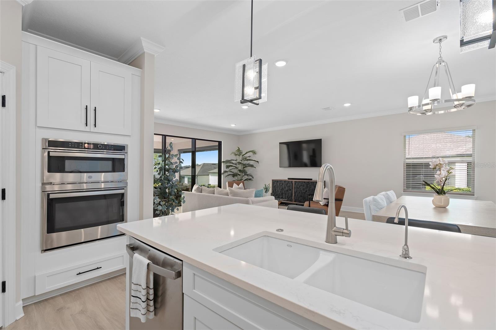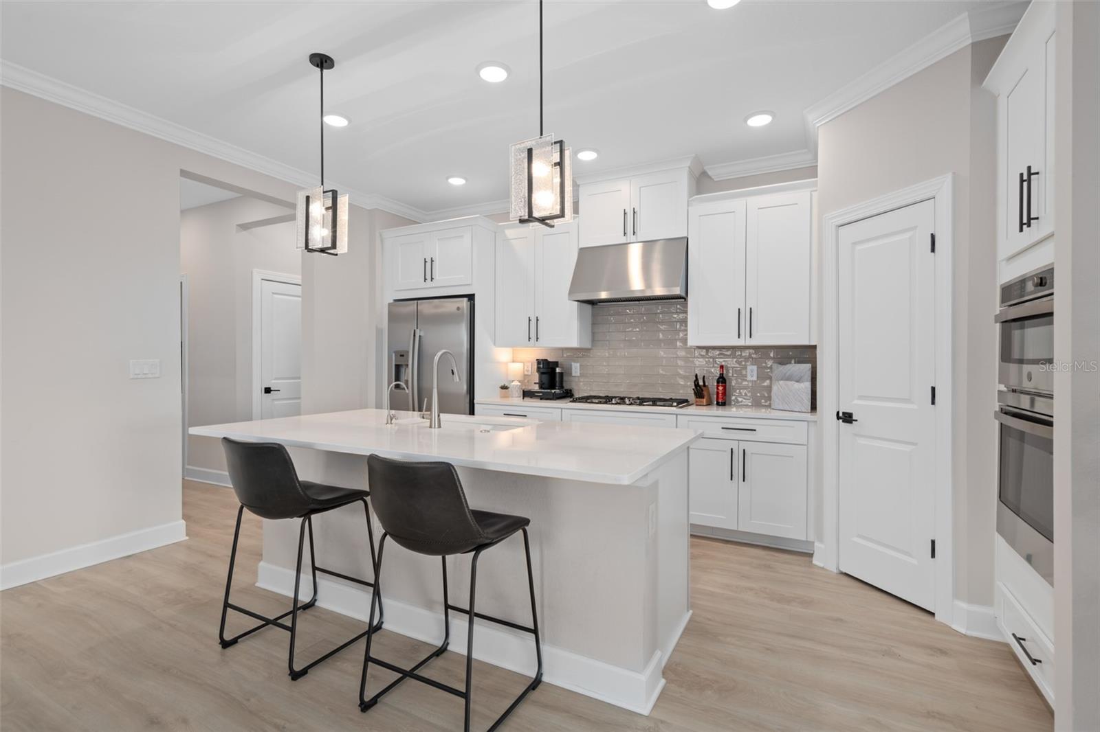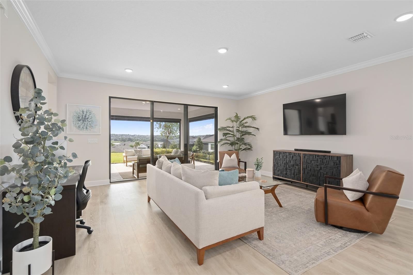 This Beautiful Matera model featuring an Upgraded Front Elevation with Stone Accents on a PREMIUM and ELEVATED LOT with BEAUTIFUL VIEWS and No Immediate Rear Neighbors will make you feel like you're home. Located in the Highly Sought after GATED 55+ Community of the Esplanade at Highland Ranch, this is surely a Home and Community you will be able to picture yourself being comfortable in. Once inside, the Neutral Color Palette Enhances the look of this 3 bedroom, 2.5 bath, 1, 829 sq ft ONE STORY home. The Open Floor Plan offers, GREAT room sizes, and many UPGRADES, all situated on a fabulous lot. You will appreciate the Wonderful GOURMET Kitchen Option with 42" Solid Wood Shaker Cabinetry offering Soft Close Drawers and Doors, Upgraded Cabinet Crown Molding, Under Counter Dual Trash Containers, Upgraded Stainless Steel Appliances, Ceramic Tile Backsplash, Quartz Countertops Throughout, Large Corner Pantry with Custom Organizational Shelves, Pendant Lighting over a BEAUTIFUL ISLAND with BREAKFAST BAR. Luxury Vinyl Plank Flooring is a beautiful Upgrade in the Main Living Area. The GENEROUS size of the Owners Suite offers a large WALK-IN SHOWER with a Seat, Frameless Glass Shower Enclosure, Comfort Height DOUBLE SINK Vanity, Separate Water Closet with a Comfort Height Toilet and WALK-IN CLOSET with a Fantastic Closet Organization System is sure to meet your needs. For convenience the LAUNDRY Room has Upper Storage. The Additional Two Bedrooms have Ample Space for Guests or a Private Office/Den. Other Included Features are 9'4" Ceilings, Additional Ceiling Lighting in the Family Room and Lanai, Crown Molding in the Main Living Areas and Primary Suite, Oversized Trim Throughout the Home, Window Blinds, Under Cover Front Porch Area, Under Roof Extended Lanai with Power Roll Down Shades, Energy Efficient Gas Tankless Hot Water Heater, R-38 Ceiling Insulation, Foam Filled Block Wall Insulation in the Living Areas, Rain Gutters and a PREMIUM Lot with Beautiful Views. The Garage is EXTENDED 4' and also has two Ceiling Storage Racks for your Convenience. COMMUNITY AMENITIES include an RESORT STYLE POOL, Clubhouse, Spa, Resistance Pool, Tennis, Pickle Ball and Bocce Courts (All of the Sports Courts are Lighted for Night time Play), Fire Pit, Movement Studio, Many Activities, Billiards & more. Don't forget the DOG PARK for your furry family members too! Close to SOUTH LAKE HOSPITAL, Advent Health Hospital is under construction, VA, Medical Offices, NTC (National Training Center), SHOPPING & DINING, Miles of Biking/Walking Trails for your Outdoor Endeavors, and a 15 minute drive to either Downtown Clermont or Winter Garden for more enjoyment and great Farmers Market's. For your traveling convenience, The Esplanade at Highland Ranch is a few minutes to the Florida Turnpike and Approximately 35 Minutes to Orlando International Airport (OIA) Attractions and Orlando's Dr Phillips Famed Restaurant Row. HOA includes Amenities, Lawn/Shrub Care, Fertilizing, and Irrigation Maintenance. The Esplanade at Highland Ranch DOES NOT have a CDD. Come and take a look at this GREAT HOME.