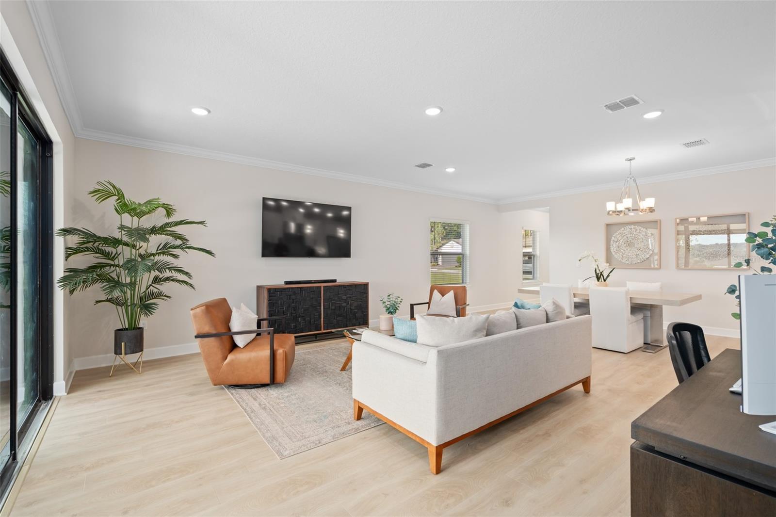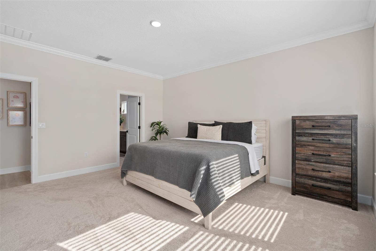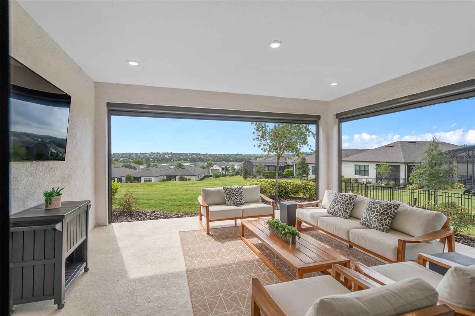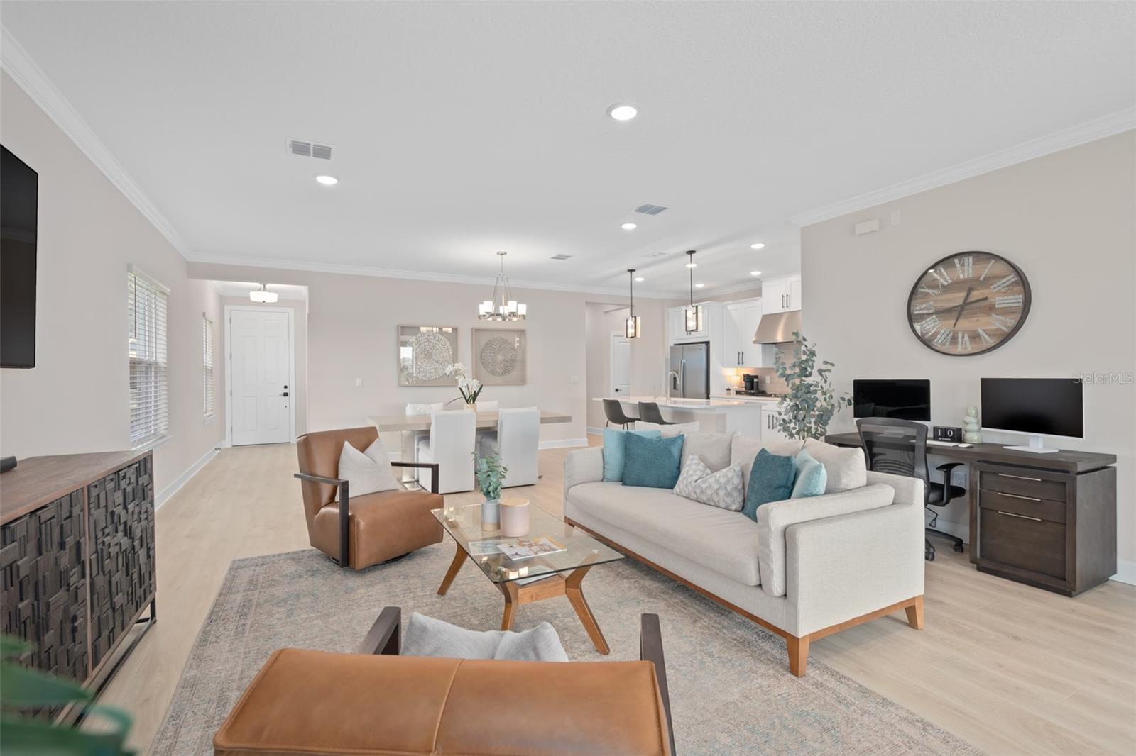 This Beautiful Matera model featuring an Upgraded Front Elevation with Stone Accents on a PREMIUM and ELEVATED LOT with BEAUTIFUL VIEWS and No Immediate Rear Neighbors will make you feel like you're home. Located in the Highly Sought after GATED 55+ Community of the Esplanade at Highland Ranch, this is surely a Home and Community you will be able to picture yourself being comfortable in. Once inside, the Neutral Color Palette Enhances the look of this 3 bedroom, 2.5 bath, 1, 829 sq ft ONE STORY home. The Open Floor Plan offers, GREAT room sizes, and many UPGRADES, all situated on a fabulous lot. You will appreciate the Wonderful GOURMET Kitchen Option with 42" Solid Wood Shaker Cabinetry offering Soft Close Drawers and Doors, Upgraded Cabinet Crown Molding, Under Counter Dual Trash Containers, Upgraded Stainless Steel Appliances, Ceramic Tile Backsplash, Quartz Countertops Throughout, Large Corner Pantry with Custom Organizational Shelves, Pendant Lighting over a BEAUTIFUL ISLAND with BREAKFAST BAR. Luxury Vinyl Plank Flooring is a beautiful Upgrade in the Main Living Area. The GENEROUS size of the Owners Suite offers a large WALK-IN SHOWER with a Seat, Frameless Glass Shower Enclosure, Comfort Height DOUBLE SINK Vanity, Separate Water Closet with a Comfort Height Toilet and WALK-IN CLOSET with a Fantastic Closet Organization System is sure to meet your needs. For convenience the LAUNDRY Room has Upper Storage. The Additional Two Bedrooms have Ample Space for Guests or a Private Office/Den. Other Included Features are 9'4" Ceilings, Additional Ceiling Lighting in the Family Room and Lanai, Crown Molding in the Main Living Areas and Primary Suite, Oversized Trim Throughout the Home, Window Blinds, Under Cover Front Porch Area, Under Roof Extended Lanai with Power Roll Down Shades, Energy Efficient Gas Tankless Hot Water Heater, R-38 Ceiling Insulation, Foam Filled Block Wall Insulation in the Living Areas, Rain Gutters and a PREMIUM Lot with Beautiful Views. The Garage is EXTENDED 4' and also has two Ceiling Storage Racks for your Convenience. COMMUNITY AMENITIES include an RESORT STYLE POOL, Clubhouse, Spa, Resistance Pool, Tennis, Pickle Ball and Bocce Courts (All of the Sports Courts are Lighted for Night time Play), Fire Pit, Movement Studio, Many Activities, Billiards & more. Don't forget the DOG PARK for your furry family members too! Close to SOUTH LAKE HOSPITAL, Advent Health Hospital is under construction, VA, Medical Offices, NTC (National Training Center), SHOPPING & DINING, Miles of Biking/Walking Trails for your Outdoor Endeavors, and a 15 minute drive to either Downtown Clermont or Winter Garden for more enjoyment and great Farmers Market's. For your traveling convenience, The Esplanade at Highland Ranch is a few minutes to the Florida Turnpike and Approximately 35 Minutes to Orlando International Airport (OIA) Attractions and Orlando's Dr Phillips Famed Restaurant Row. HOA includes Amenities, Lawn/Shrub Care, Fertilizing, and Irrigation Maintenance. The Esplanade at Highland Ranch DOES NOT have a CDD. Come and take a look at this GREAT HOME.