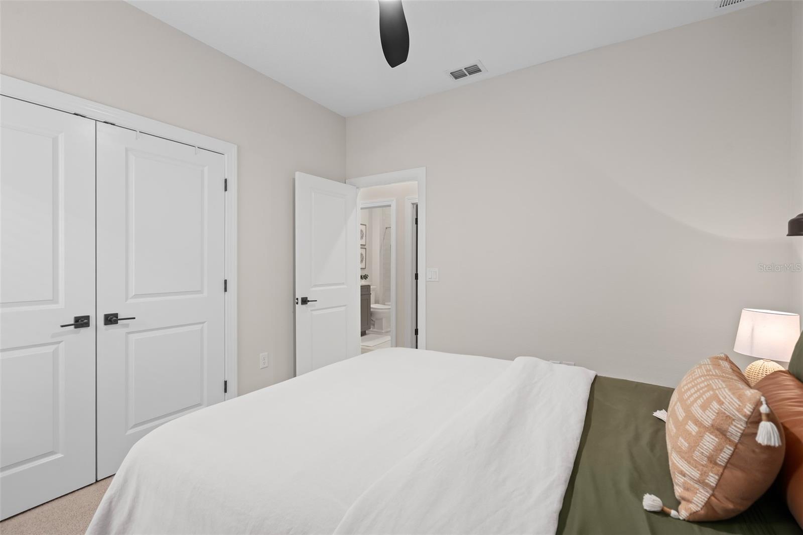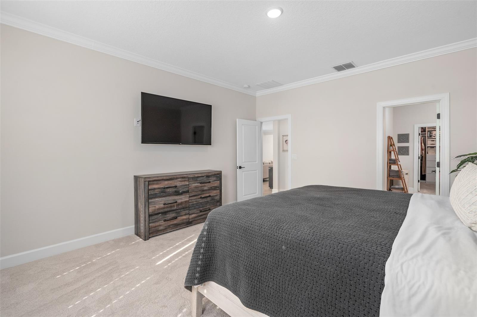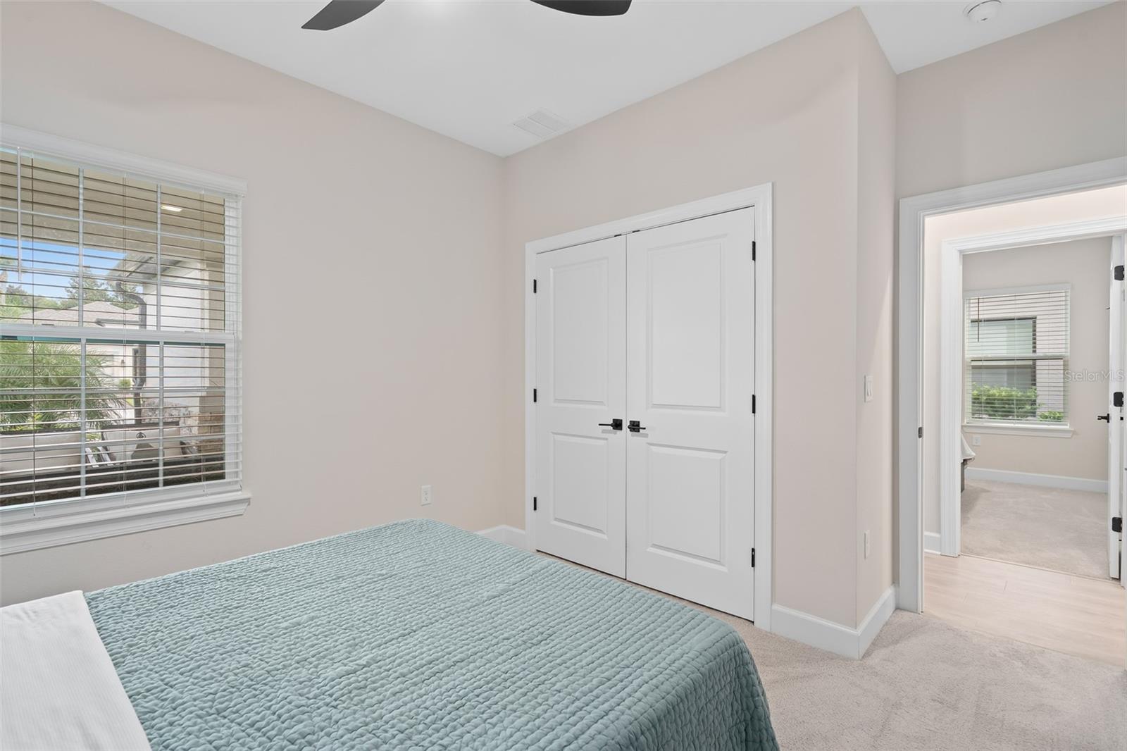 Ceiling Fans(s), Crown Molding, High Ceilings, Open Floorplan, Primary Bedroom Main Floor, Solid Wood Cabinets, Split Bedroom, Stone Counters, Thermostat, Walk-In Closet(s), Window Treatments