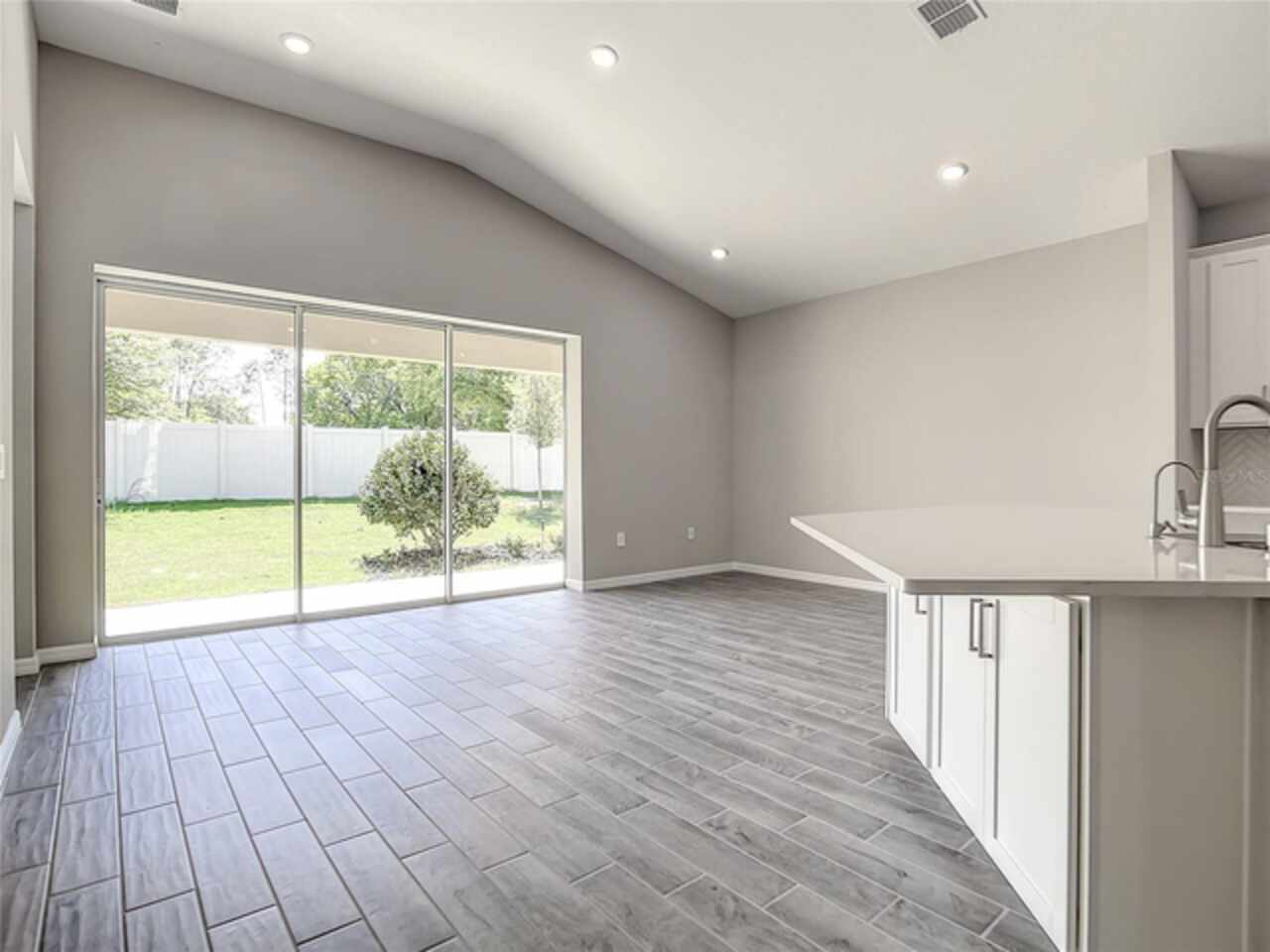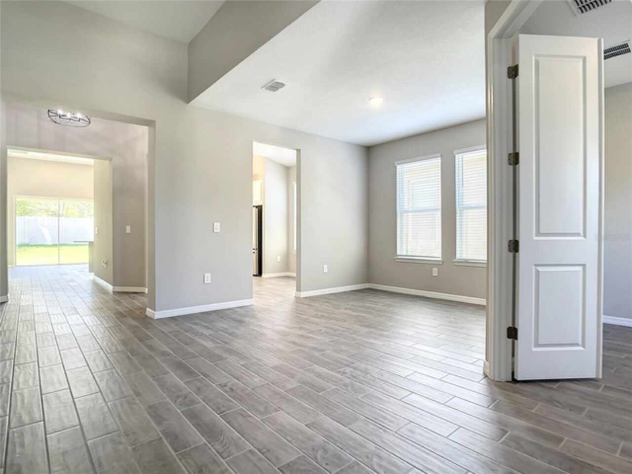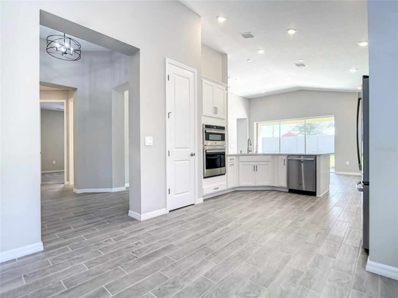 BRAND NEW CONSTRUCTION 2023! Securely located in the new construction gated community of Crestview, this contemporary craftsman is the epidemy of privacy, built on a peaceful cul-de-sac within the subdivision with no rear neighbors. An airy, vaulted foyer welcomes you into an open concept floor plan boasting consistent 14 FT ceilings and gorgeous yet durable wood plank tile throughout the main areas. With a study/flex space upon entry, it’s perfect for a home office or gym. A formal dining room is illuminated by tons of natural light and can easily seat a table for 8. The living room/kitchen combination is a relaxation dream, outfit with enhanced surround sound wiring, upgraded AV connections, and recessed can lighting it can easily turn into the perfect game day or party forum as the collapsible sliding glass doors open an unencumbered 12 FT wide out to the backyard patio for additional indoor/outdoor floor space. You’ll have plenty of room to prep treats and entertain in the chef’s kitchen, featuring an eat-in breakfast area, stone countertops, upgraded stainless steel appliances, modern shaker cabinets with elegant herringbone backsplash, abundant storage, and tons of seating space around the oversized peninsula bar top. Featuring 2 secondary bedrooms with a full 3-piece bath near the front of the house, the split plan is an added indulgence. Leaving no detail out, the principal bedroom showcases a serene view of the backyard and features an ensuite bath with dual-sink stone vanity, separate walk-in shower, relaxing spa tub, private lavatory room, and 2 plentiful walk-in closet spaces. Centrally located off Highway 50 and Florida’s Turnpike, you can travel with ease to the ever-popular Sand Lake/I-Drive and Restaurant Row areas or commute quick to the vibrant shopping plazas of Winter Garden. This perfect location is also just minutes from Historic Downtown Clermont and is surrounded by a multitude of medical facilities affiliated with Advent and Orlando Health on the way. Washer and Dryer included. All MEP and window systems are brand new with warranty. Security Alarm wiring is included. Electronic front door lock is included. Subdivision amenities include Mail Kiosk, Community Pool with water-side cabanas, and ample walking/jogging paths. Showings by Appointment Only.
