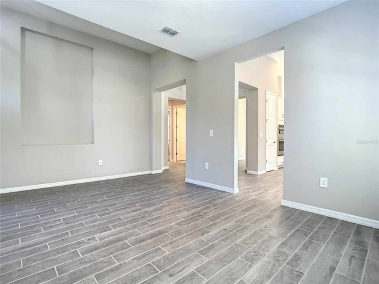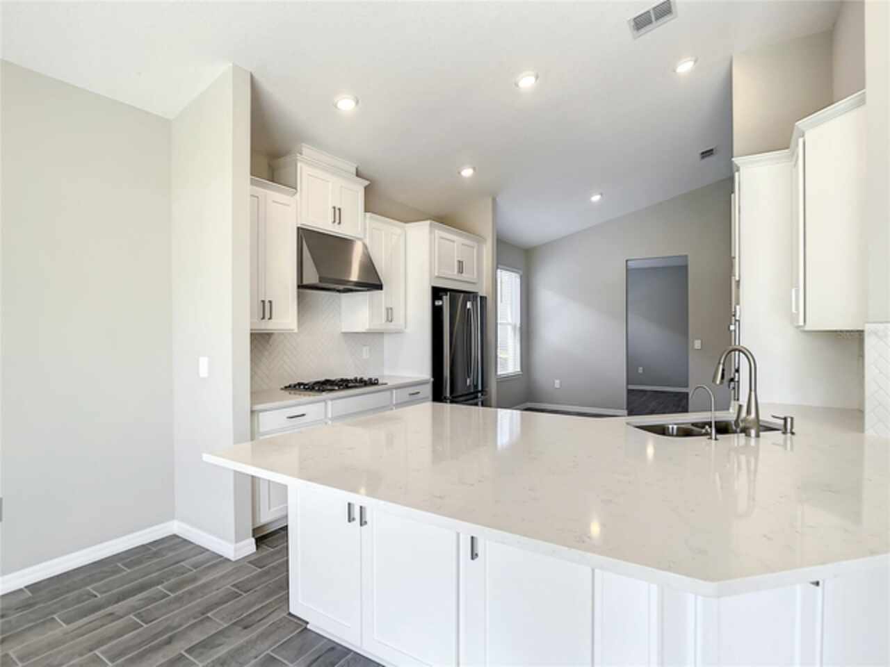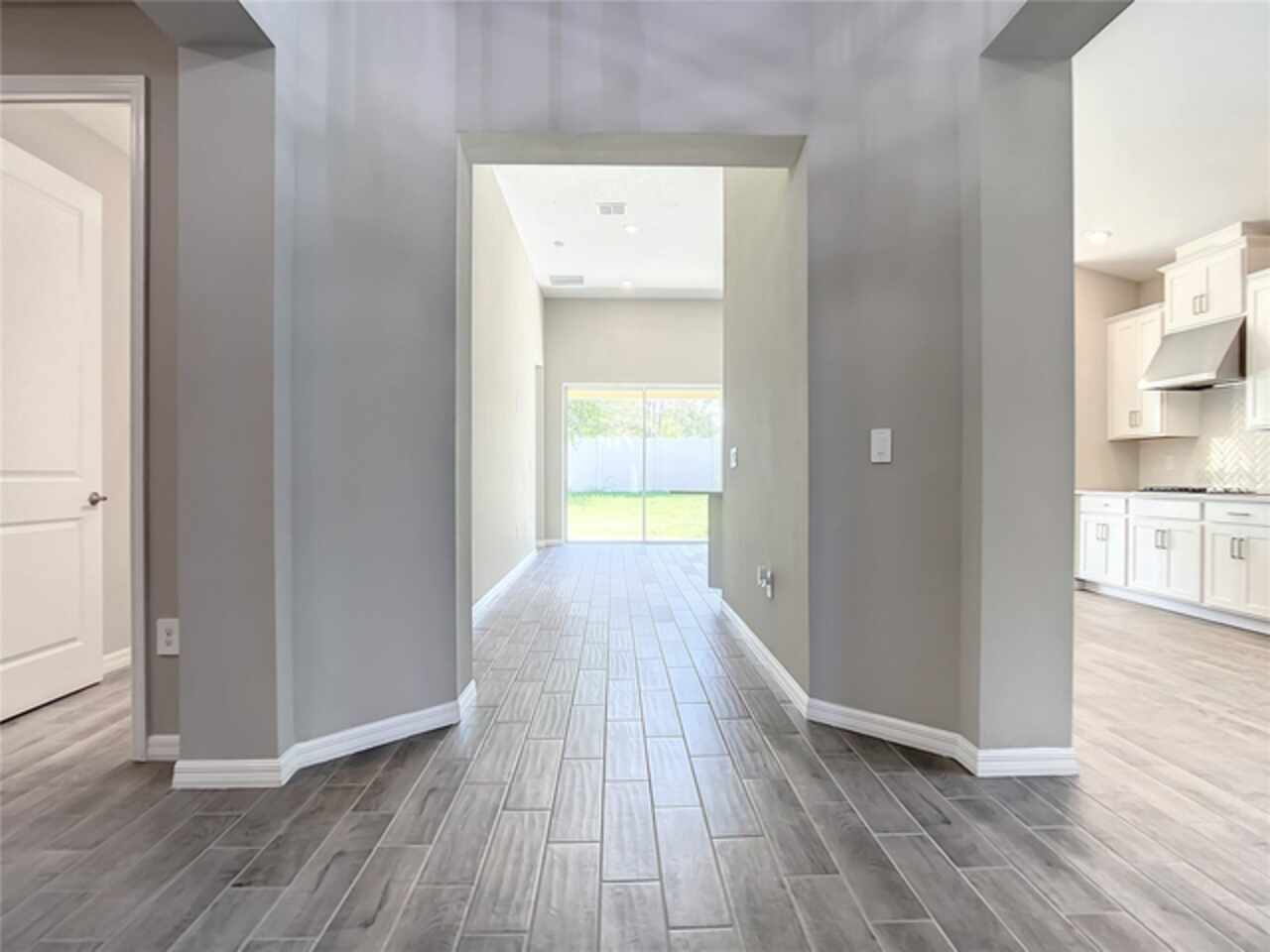BRAND NEW CONSTRUCTION 2023! Securely located in the new construction gated community of Crestview, this contemporary craftsman is the epidemy of privacy, built on a peaceful cul-de-sac within the subdivision with no rear neighbors. An airy, vaulted foyer welcomes you into an open concept floor plan boasting consistent 14 FT ceilings and gorgeous yet durable wood plank tile throughout the main areas. With a study/flex space upon entry, it’s perfect for a home office or gym. A formal dining room is illuminated by tons of natural light and can easily seat a table for 8. The living room/kitchen combination is a relaxation dream, outfit with enhanced surround sound wiring, upgraded AV connections, and recessed can lighting it can easily turn into the perfect game day or party forum as the collapsible sliding glass doors open an unencumbered 12 FT wide out to the backyard patio for additional indoor/outdoor floor space. You’ll have plenty of room to prep treats and entertain in the chef’s kitchen, featuring an eat-in breakfast area, stone countertops, upgraded stainless steel appliances, modern shaker cabinets with elegant herringbone backsplash, abundant storage, and tons of seating space around the oversized peninsula bar top. Featuring 2 secondary bedrooms with a full 3-piece bath near the front of the house, the split plan is an added indulgence. Leaving no detail out, the principal bedroom showcases a serene view of the backyard and features an ensuite bath with dual-sink stone vanity, separate walk-in shower, relaxing spa tub, private lavatory room, and 2 plentiful walk-in closet spaces. Centrally located off Highway 50 and Florida’s Turnpike, you can travel with ease to the ever-popular Sand Lake/I-Drive and Restaurant Row areas or commute quick to the vibrant shopping plazas of Winter Garden. This perfect location is also just minutes from Historic Downtown Clermont and is surrounded by a multitude of medical facilities affiliated with Advent and Orlando Health on the way. Washer and Dryer included. All MEP and window systems are brand new with warranty. Security Alarm wiring is included. Electronic front door lock is included. Subdivision amenities include Mail Kiosk, Community Pool with water-side cabanas, and ample walking/jogging paths. Showings by Appointment Only.