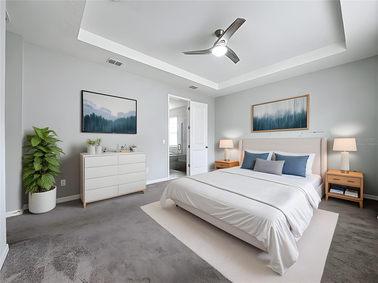 Welcome to Crestview Gated Community! Enjoy living in this upgraded 2399 sf home, built in 2020. The home features a spacious open floor plan with four bedrooms, three full bathrooms, office, gourmet kitchen and covered lanai. The kitchen features quartz countertops, stainless steel appliances, walk in pantry, breakfast bar and butlers pantry. The flooring consists of ceramic tile in all the common areas and carpet in the bedrooms. The primary suite features a tray ceiling, large walk in closet, large bathroom with a garden soaking tub, walk in shower, dual sinks with quartz counter tops. The beautiful open floor plan overlooks the 15x23 covered lanai and fenced rear yard and is ideal for family entertaining. The Community offers gated entry, club house, community pool and playground. The home is conveniently located near major roadways, restaurants, shopping plazas, fitness trails, city parks, health care facilities, movie theatres and area attractions.