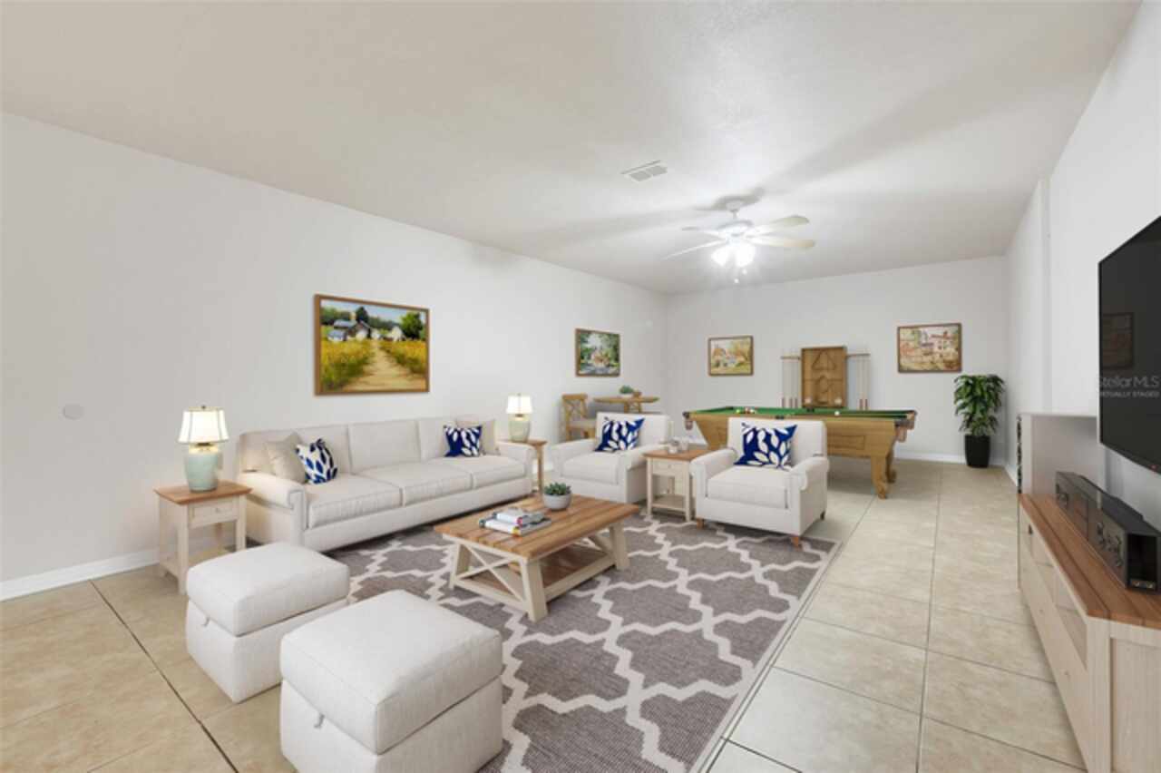 One or more photo(s) has been virtually staged. SPACIOUS 2 STORY CLERMONT HOME. A place to grow, play and call home in this desirable Clermont community of The Reserve at Lost Lake. Nestled in the rolling hills of beautiful Clermont, this expansive 5 bedroom, 3 bath home offers the perfect blend of space, style, and functionality, ideal for growing families or multi-generational living. As you approach, you will find a home that feels both grand and welcoming. The main level offers thoughtful convenience with a separate living room, dining area, kitchen and family room—perfect for gathering, entertaining, or just enjoying everyday moments. The primary bedroom suite is tucked away for privacy and features a spacious en-suite bathroom for your own peaceful retreat. You'll also find two additional bedrooms, a full bath, and a laundry room all on the main floor—ideal for families who prefer single-level living. On the lower level, you’ll find a dedicated office for remote work, a game room or home theater OR BOTH for entertainment with 2 bedrooms and a bath. The oversized 4 car garage provides ample space for vehicles, storage, or hobby space. Set on a gently hilly lot in a peaceful neighborhood, this home is part of a low-HOA community with amenities the whole family will enjoy, like a community pool and playground just around the corner. With convenient access to top-rated schools, shopping, and major roadways, this home offers the lifestyle you’ve been looking for. Don’t miss your chance to own this exceptional property in one of Clermont’s most sought after neighborhoods!