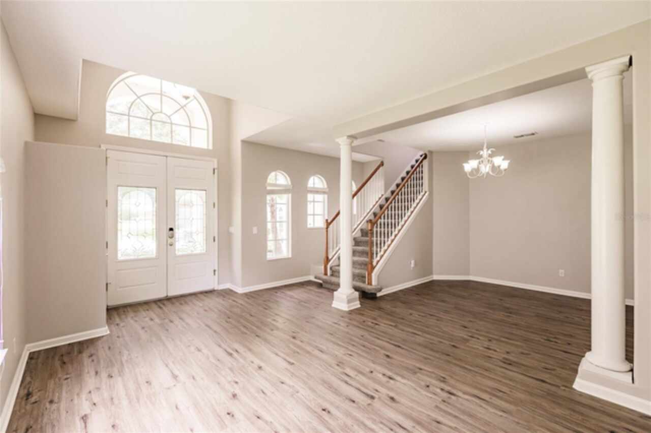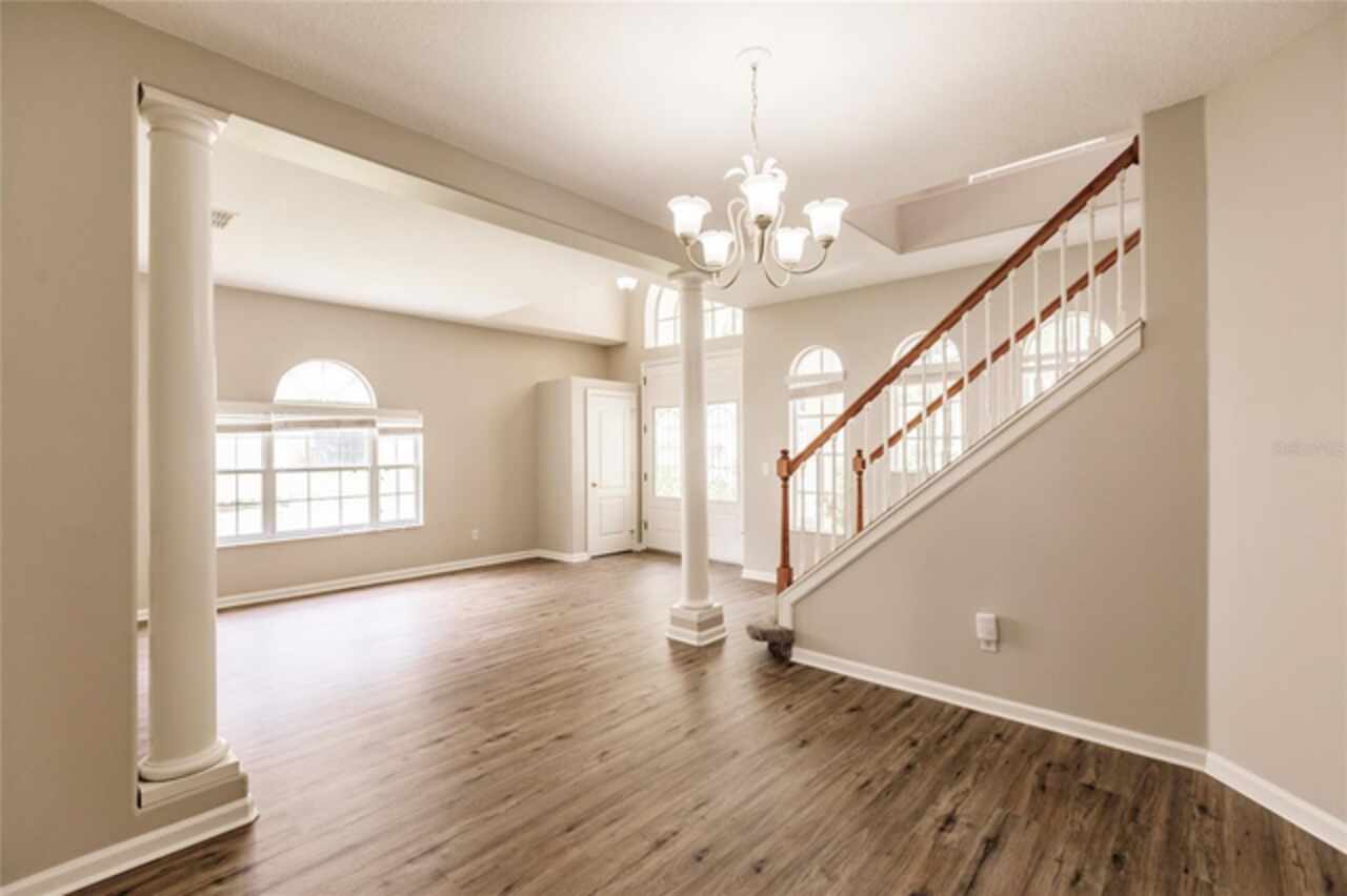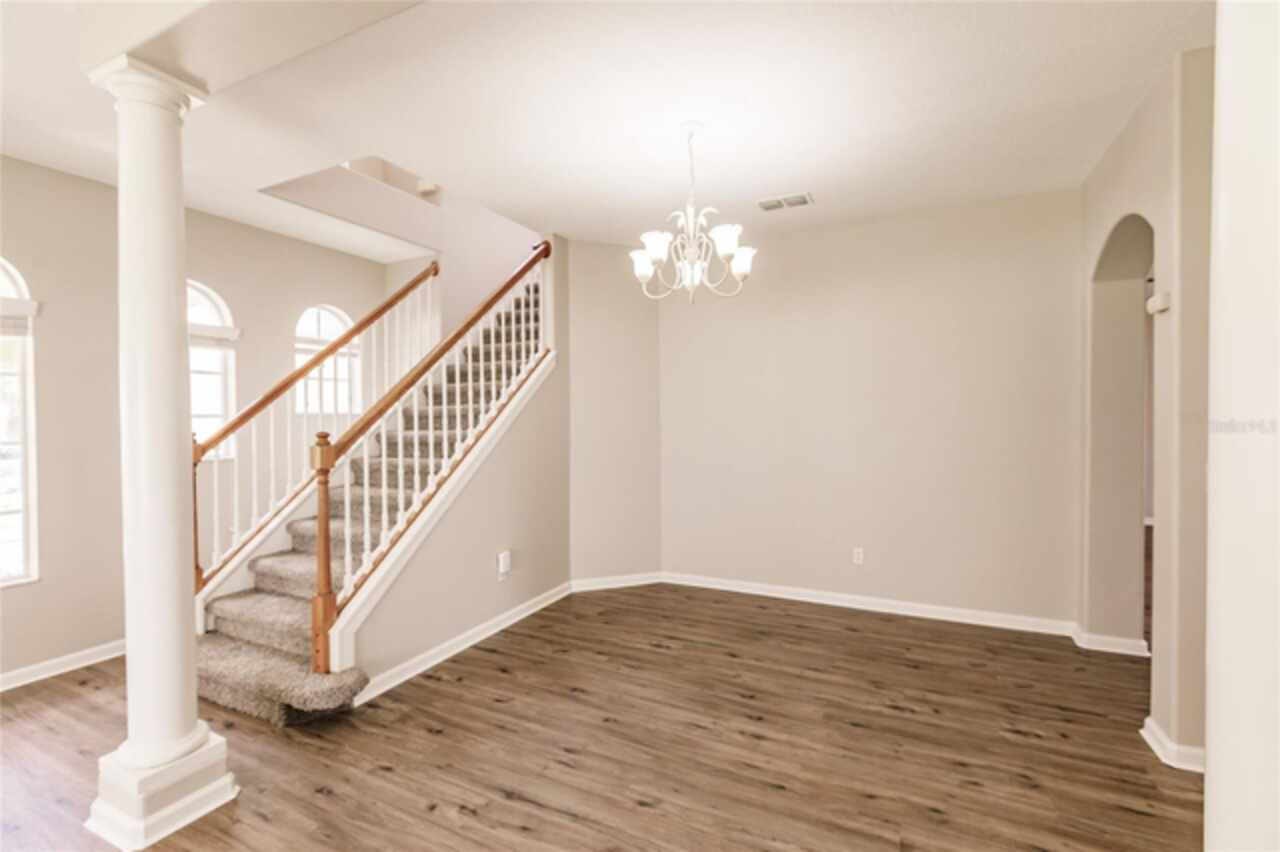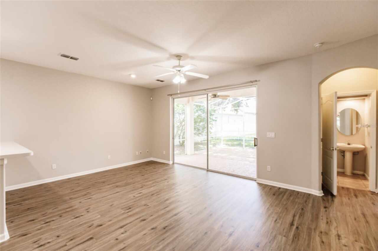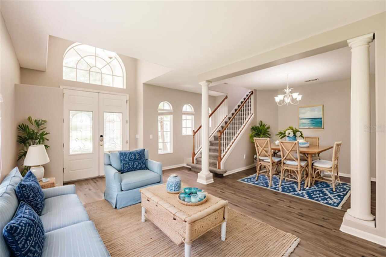 One or more photo(s) has been virtually staged. Nestled within a well-established, gated community just minutes from schools, local shopping, dining, and easy highway access, this charming residence features a smart floorplan designed for everyday living and effortless entertaining. The home showcases luxury vinyl planking floors across the main living areas, a spacious formal dining room, and a cozy family room adjacent to the kitchen — a seamless layout perfect for both casual evenings and hosting guests. The efficient kitchen is equipped with stainless steel appliances and a breakfast bar. The ensuite primary suite is thoughtfully tucked away on the main level, offering privacy and easy access, while additional bedrooms upstairs and large den provide versatile space. Step outside onto the oversized screened patio and relax in a fully fenced yard—a serene oasis for outdoor living. Come and discover why this property stands out as a true gem in the neighborhood.