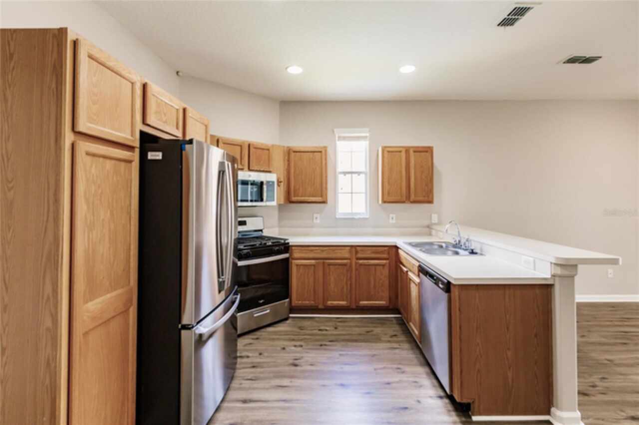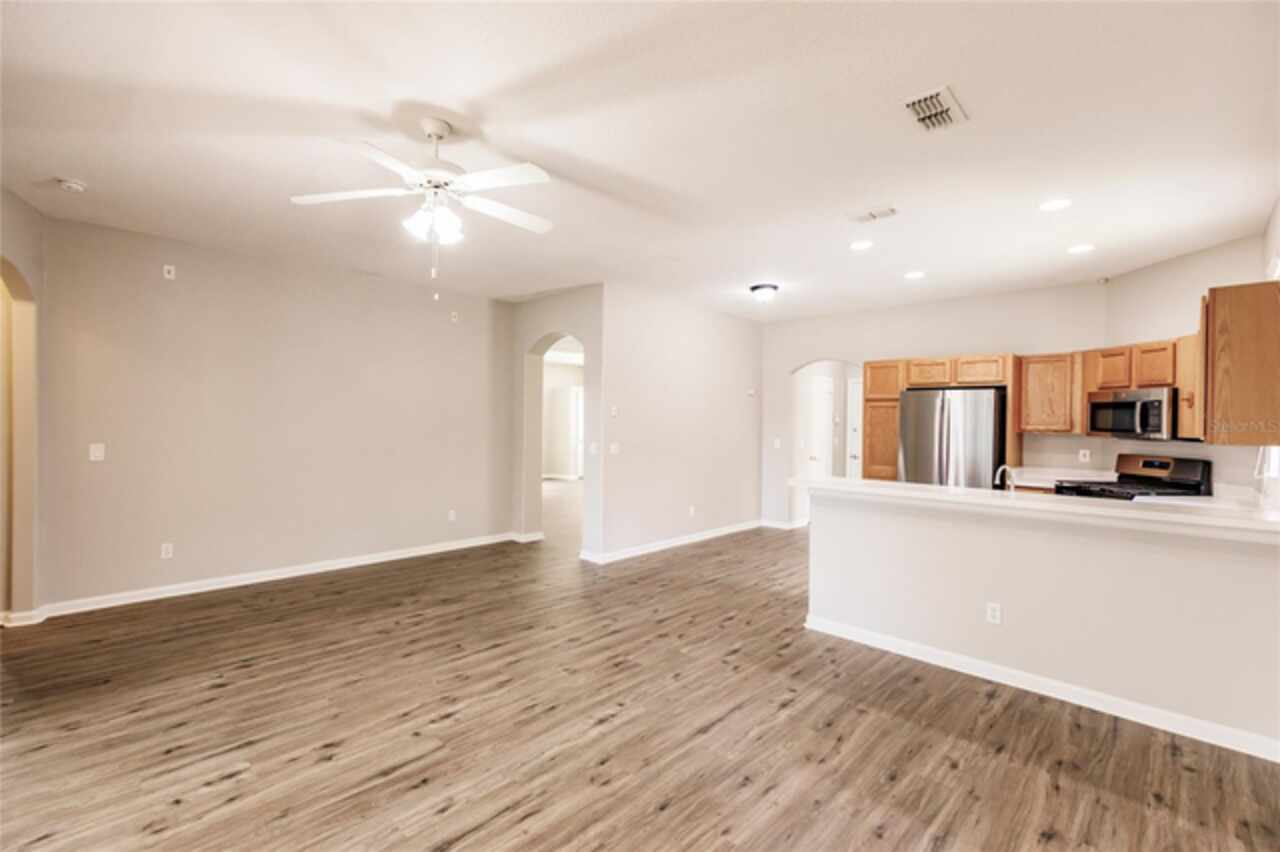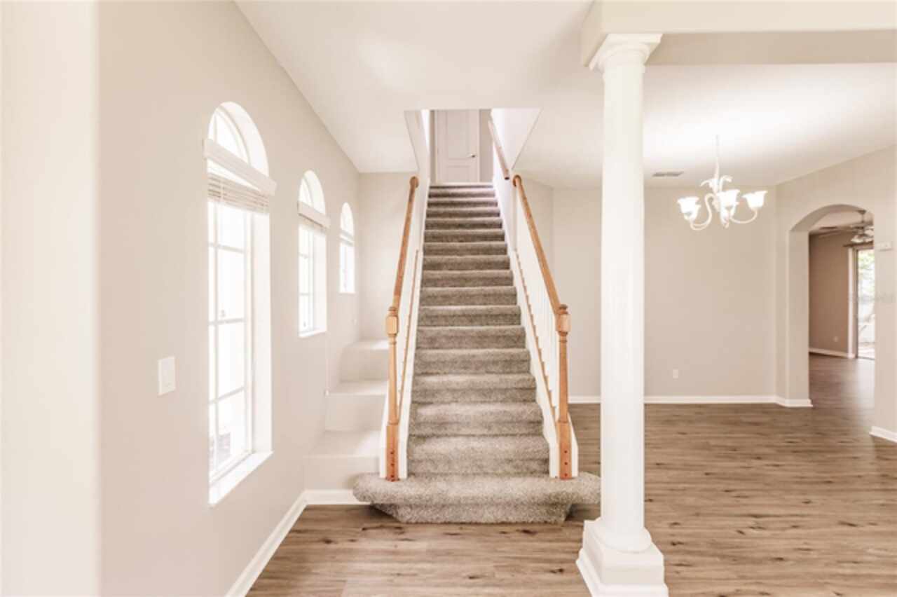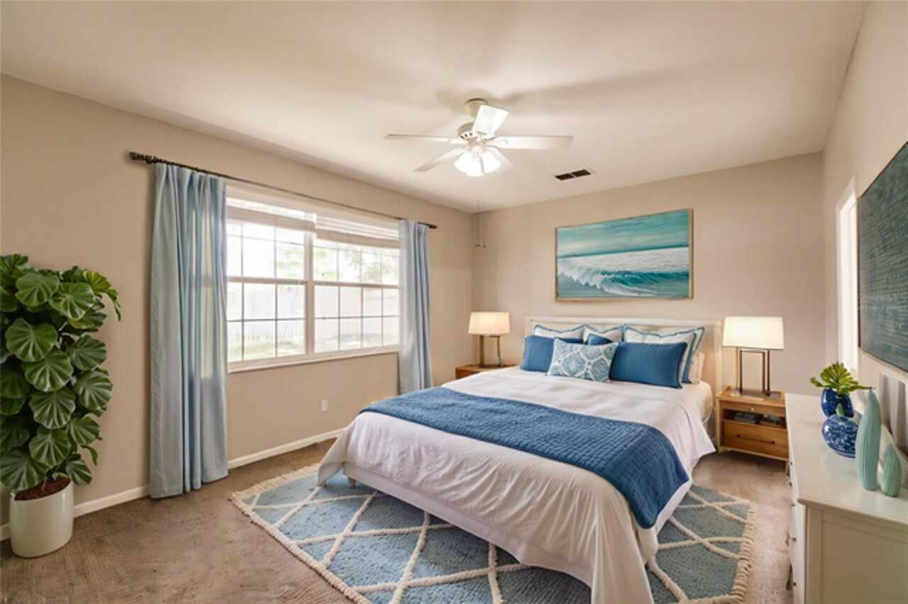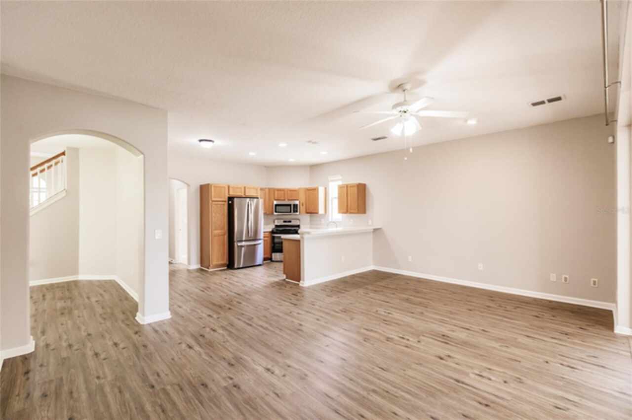 One or more photo(s) has been virtually staged. Nestled within a well-established, gated community just minutes from schools, local shopping, dining, and easy highway access, this charming residence features a smart floorplan designed for everyday living and effortless entertaining. The home showcases luxury vinyl planking floors across the main living areas, a spacious formal dining room, and a cozy family room adjacent to the kitchen — a seamless layout perfect for both casual evenings and hosting guests. The efficient kitchen is equipped with stainless steel appliances and a breakfast bar. The ensuite primary suite is thoughtfully tucked away on the main level, offering privacy and easy access, while additional bedrooms upstairs and large den provide versatile space. Step outside onto the oversized screened patio and relax in a fully fenced yard—a serene oasis for outdoor living. Come and discover why this property stands out as a true gem in the neighborhood.