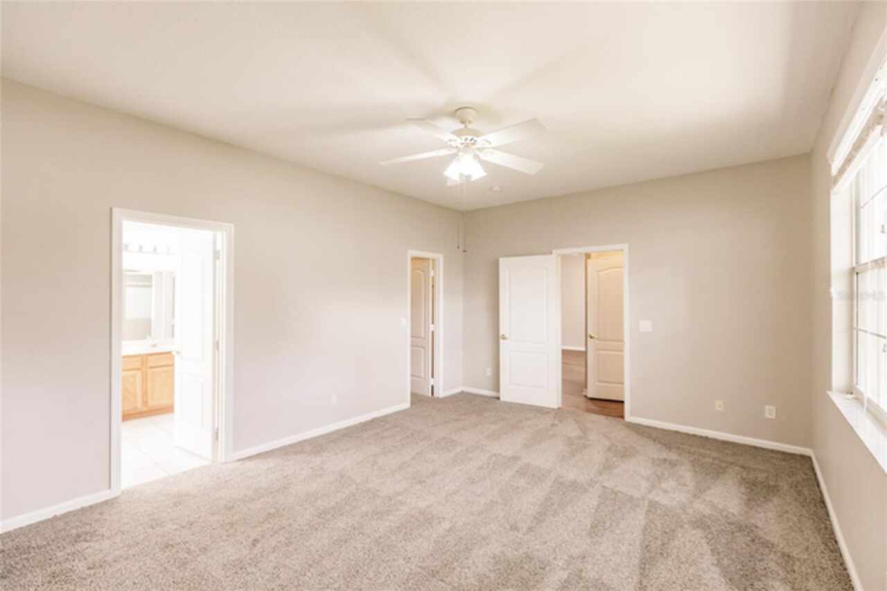 Ceiling Fans(s), Eat-in Kitchen, High Ceilings, Open Floorplan, Primary Bedroom Main Floor, Solid Surface Counters, Solid Wood Cabinets, Walk-In Closet(s), Window Treatments