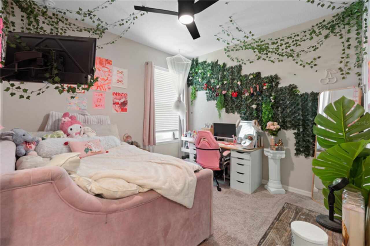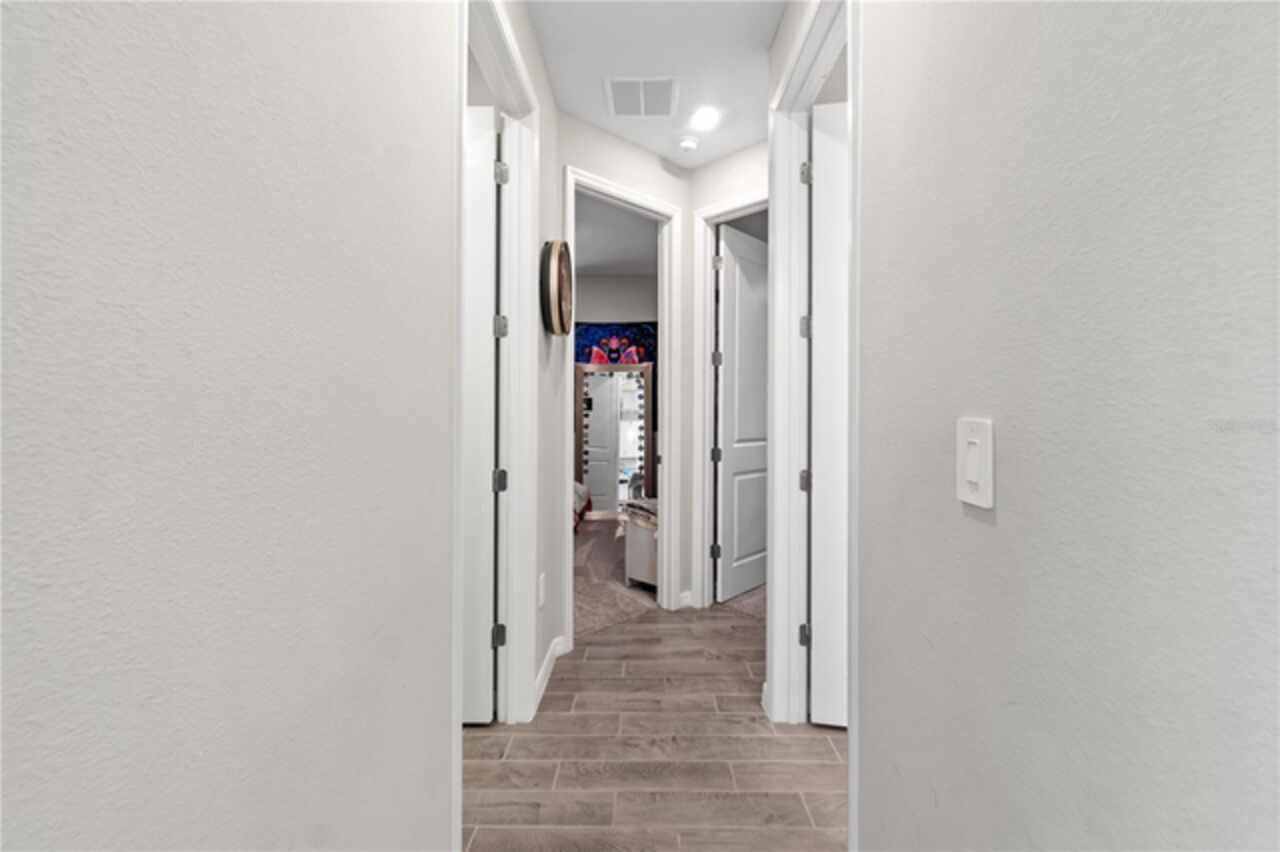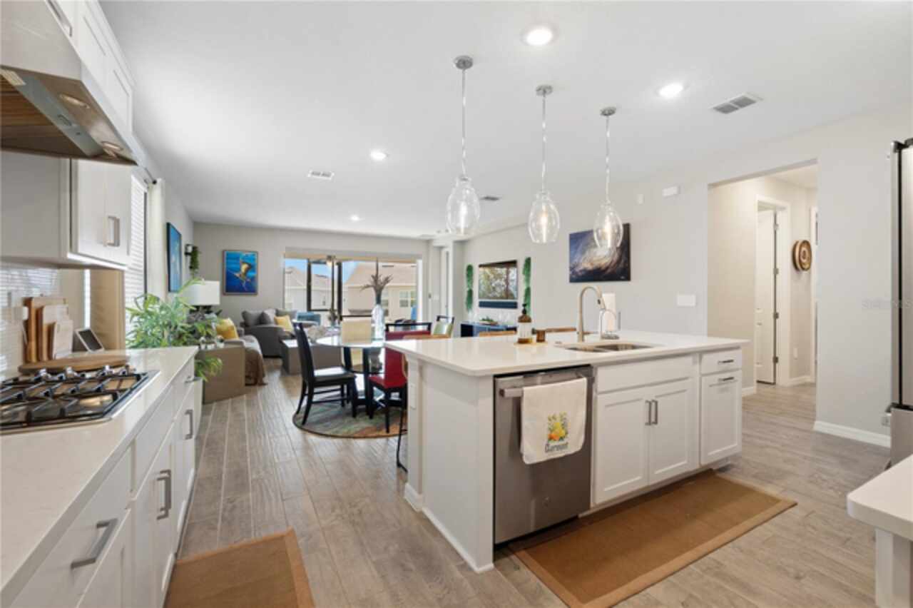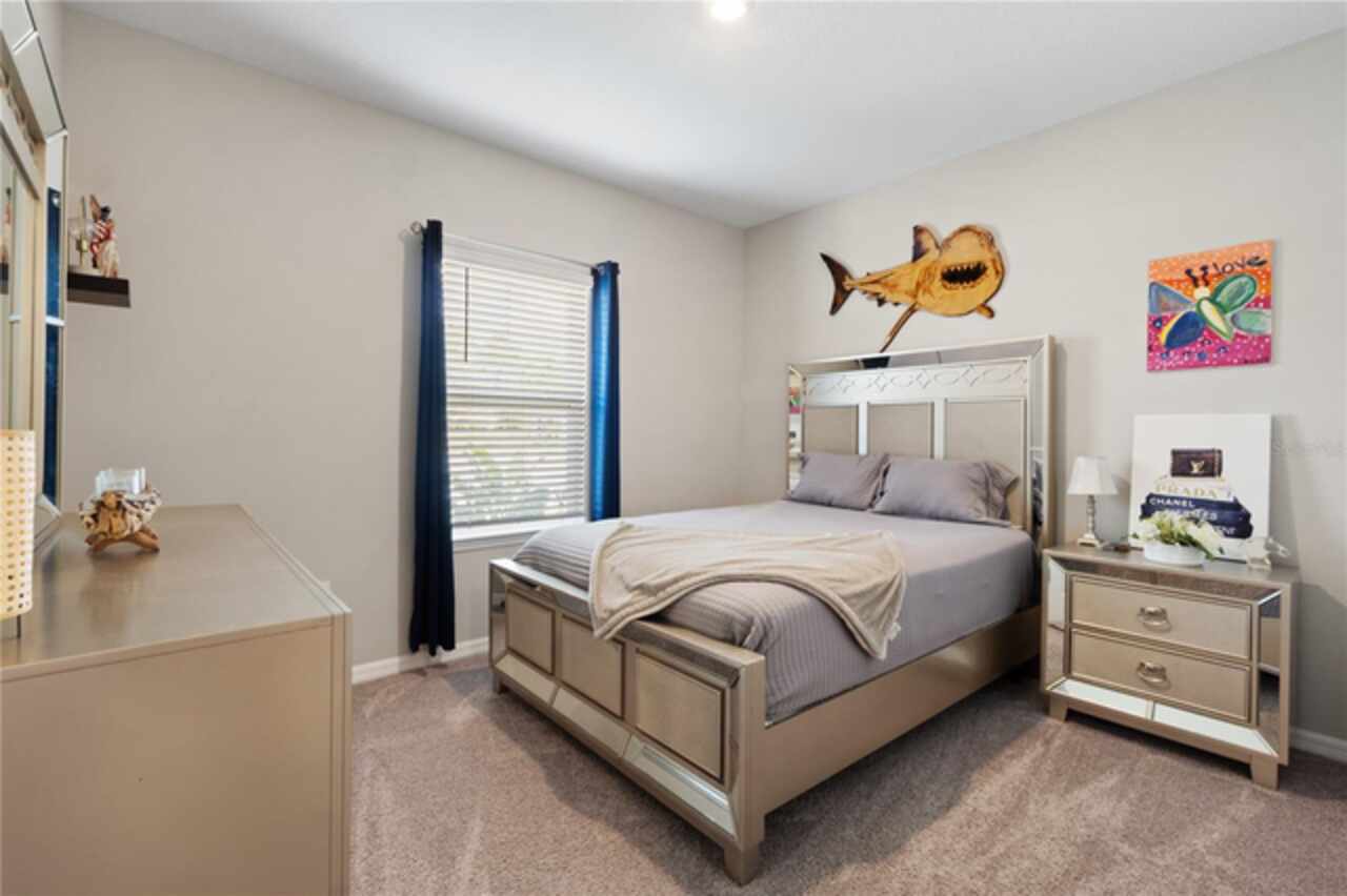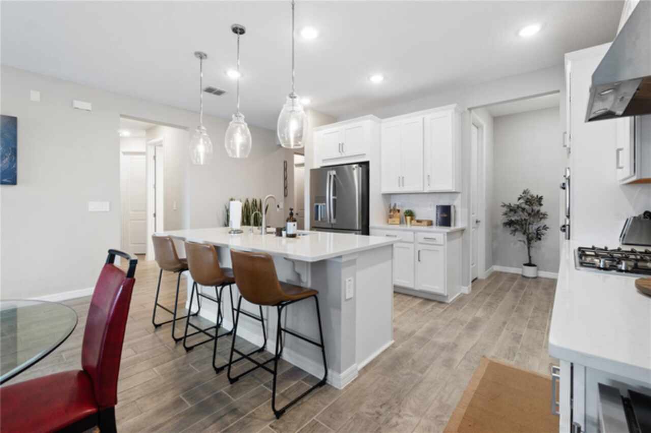 Discover this immaculate 2, 399 sq ft residence perfectly located in one of Clermont’s most sought-after neighborhoods. This spacious and beautifully appointed home in a culdesac features 4 bedrooms and 3 bathrooms and a private study with glass French doors, ideal for home office or quiet reading space. Step inside to find high ceilings, abundant natural light, and a flowing open floor plan that effortlessly connects the formal living and dining area to a spacious family room and modern kitchen. The gourmet kitchen offer stainless steel appliances, quartz countertops, a breakfast bar, , and plenty of cabinetry perfect for both everyday living and entertainment. A standout feature is the pocket -style sliding glass door that fully retracts, creating a seamless transition to the outdoors. Outfitted with built in automatic blinds that leads to a large screened in lanai, offering the perfect space for relaxing, dining or enjoying Florida’s year round sunshine in comfort and privacy. The primary suite is generally sized and includes a walk in closet and luxurious en-suite bathroom with dual vanities, a soaking tub, and a separate walk in shower. Situated just minutes from top notch schools, shopping, dining, and Clermont’s beautiful chain of lakes, this home offers the perfect balance of convenience and tranquility. With easy access to major highways, you’re just a short drive from Orlando’s theme parks, airport, and downtown attractions. Don’t wait. Make this home yours today!!!!