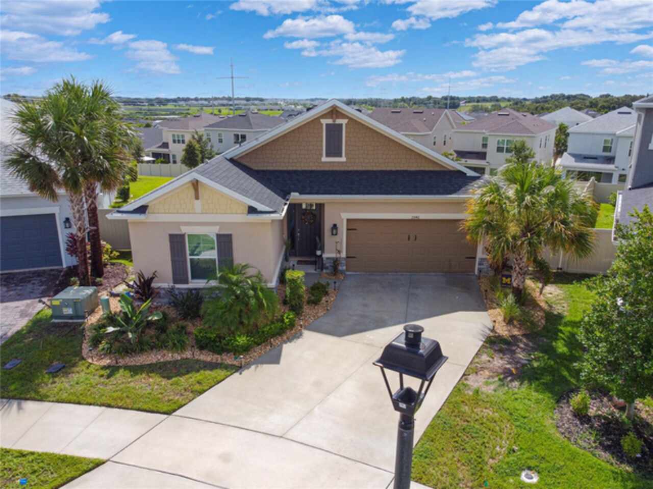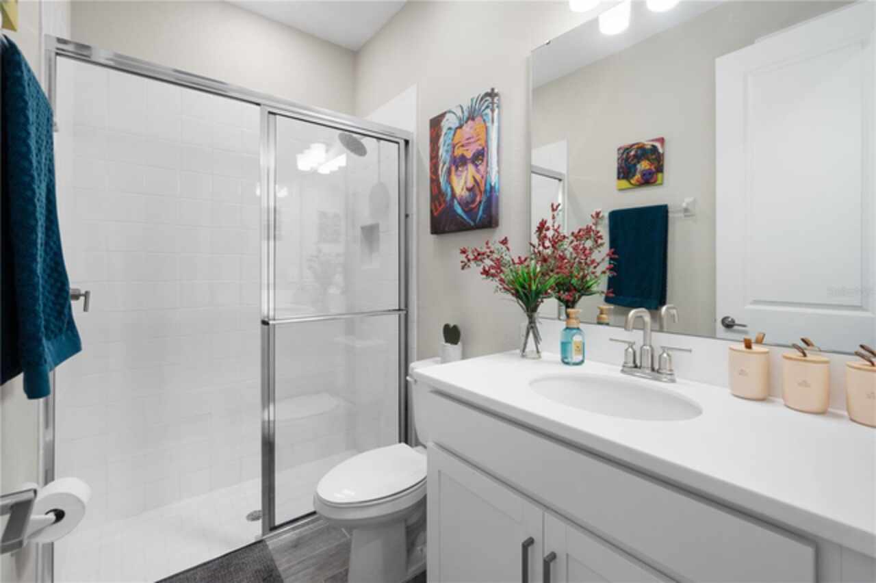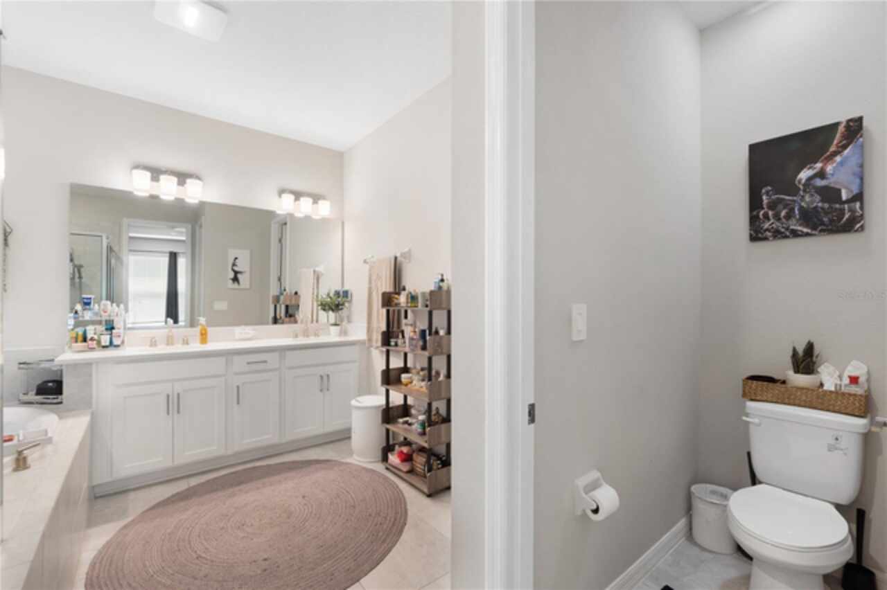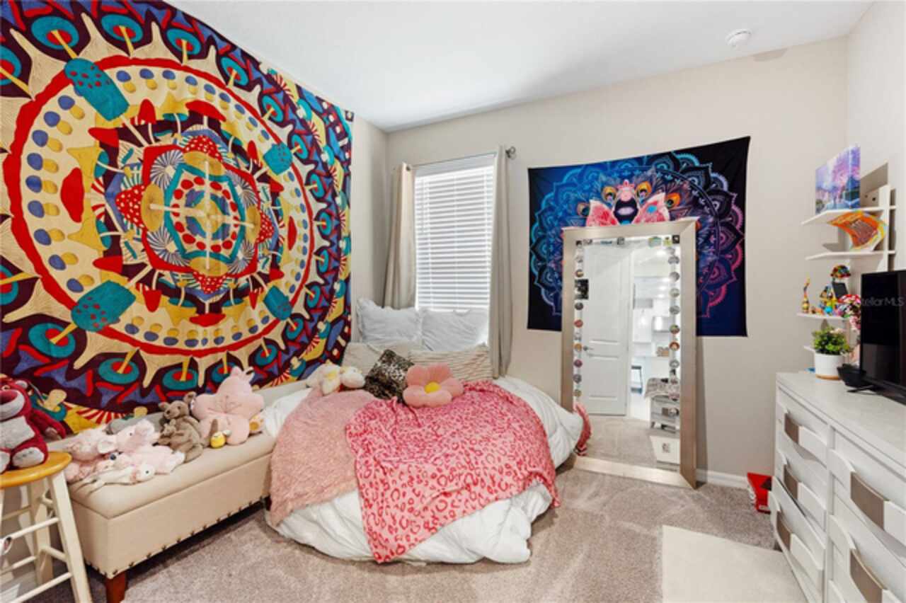 Discover this immaculate 2, 399 sq ft residence perfectly located in one of Clermont’s most sought-after neighborhoods. This spacious and beautifully appointed home in a culdesac features 4 bedrooms and 3 bathrooms and a private study with glass French doors, ideal for home office or quiet reading space. Step inside to find high ceilings, abundant natural light, and a flowing open floor plan that effortlessly connects the formal living and dining area to a spacious family room and modern kitchen. The gourmet kitchen offer stainless steel appliances, quartz countertops, a breakfast bar, , and plenty of cabinetry perfect for both everyday living and entertainment. A standout feature is the pocket -style sliding glass door that fully retracts, creating a seamless transition to the outdoors. Outfitted with built in automatic blinds that leads to a large screened in lanai, offering the perfect space for relaxing, dining or enjoying Florida’s year round sunshine in comfort and privacy. The primary suite is generally sized and includes a walk in closet and luxurious en-suite bathroom with dual vanities, a soaking tub, and a separate walk in shower. Situated just minutes from top notch schools, shopping, dining, and Clermont’s beautiful chain of lakes, this home offers the perfect balance of convenience and tranquility. With easy access to major highways, you’re just a short drive from Orlando’s theme parks, airport, and downtown attractions. Don’t wait. Make this home yours today!!!!