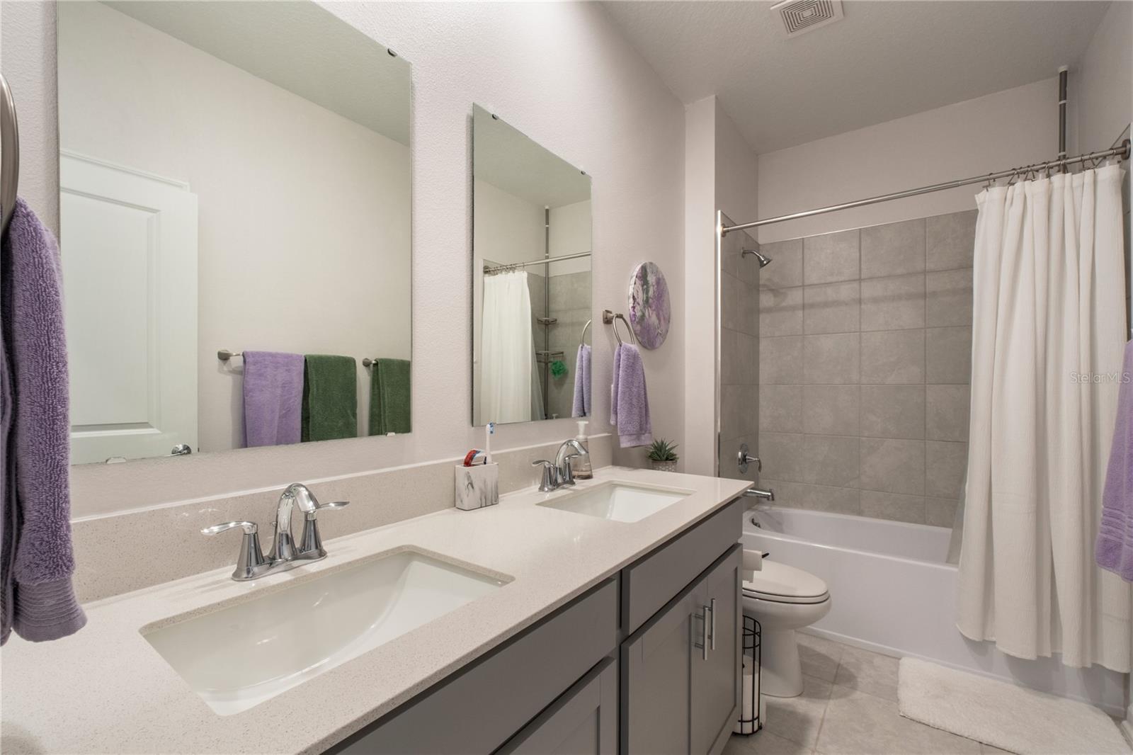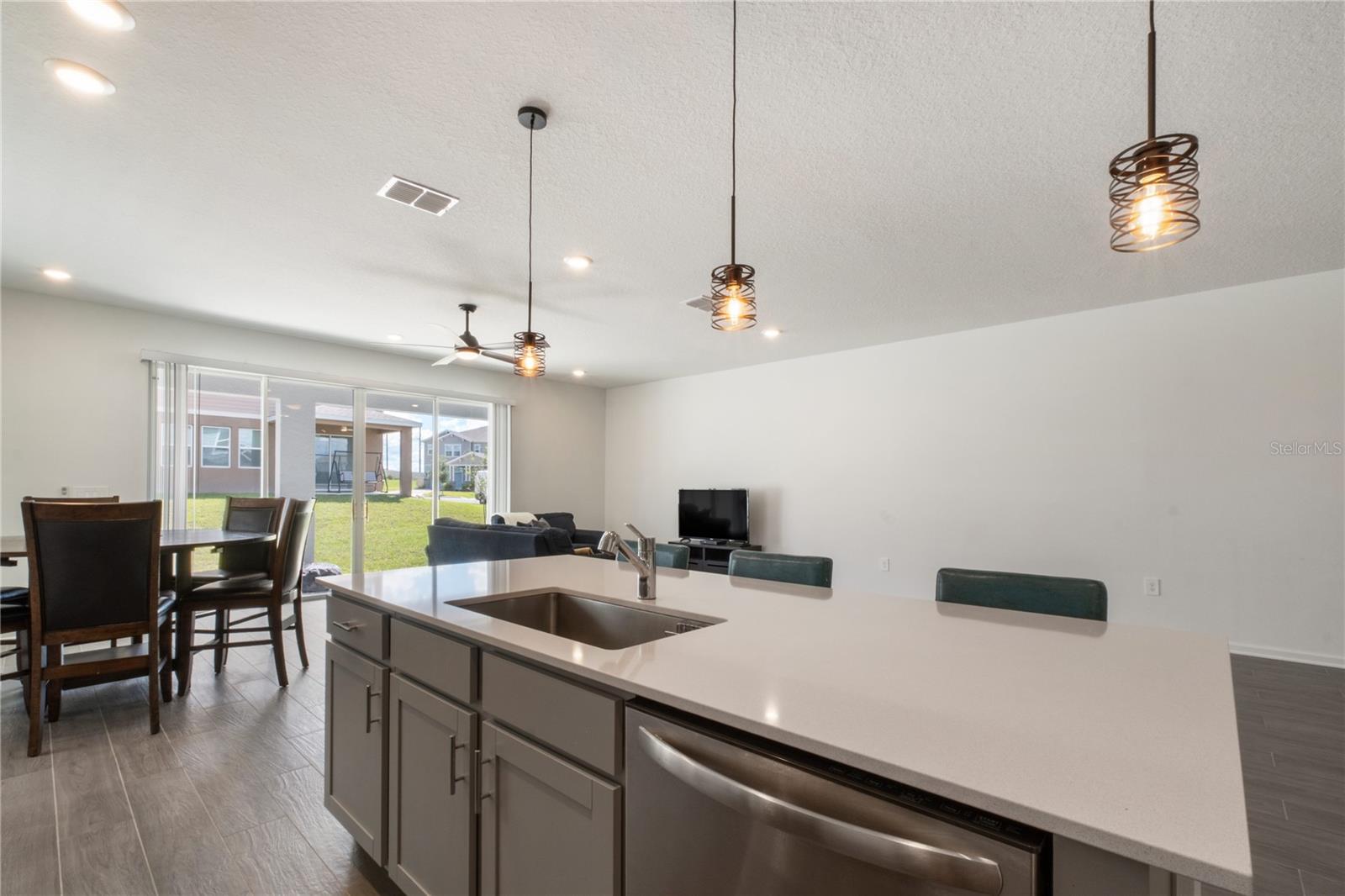 Your new homes awaits! Check out this lovely and spacious home including a separate Mother-in-law suite. As you enter, you'll walk into common space that boasts a large entertaining space that includes a huge kitchen with a grand island. Plenty of storage in the pantry and many cabinets. Decorator lights over the island add elegance and ambiance. Nest your family in the ever-present living room. There is another living space next to the downstairs living area. It includes a bedroom, private bathroom, kitchenette and living room all with a separate entrance for your grandparents, as a rental or office. There is an adjoining door too. The floors are covered with grey plank titles, but all bedrooms are carpeted to keep your toes cozy out of bed. All bedrooms have ceiling fans. Walk out your large patio doors into the back yard, just waiting for your special touches. The house is situated on a corner lot that is maintained by the HOA. Upstairs you'll find 4 bedrooms including a master with ensuite, that includes a double vanity, linen closet and very large walk-in closet, with a soaking tub and shower. The kid's bathroom also has a double vanity and linen closet and all, but one bedroom is spacious enough to fit two queen-size beds and dresses, not to mention the closets, although not walk-in they are very spacious. The loft area is a great space for your hang and watch tv or playing devices. The laundry room also has a linen closet along with a newer Samsung washer and dryer. All appliances stay with this house. The garage is suited for 3 cars or lots of storage. Some built-in storage options will also remain. Coming soon is the Olympus development, with pickle-ball, tennis, pools, basketball and much more. You won't want to miss the opportunity to won a Independence model home. It's ready for you.