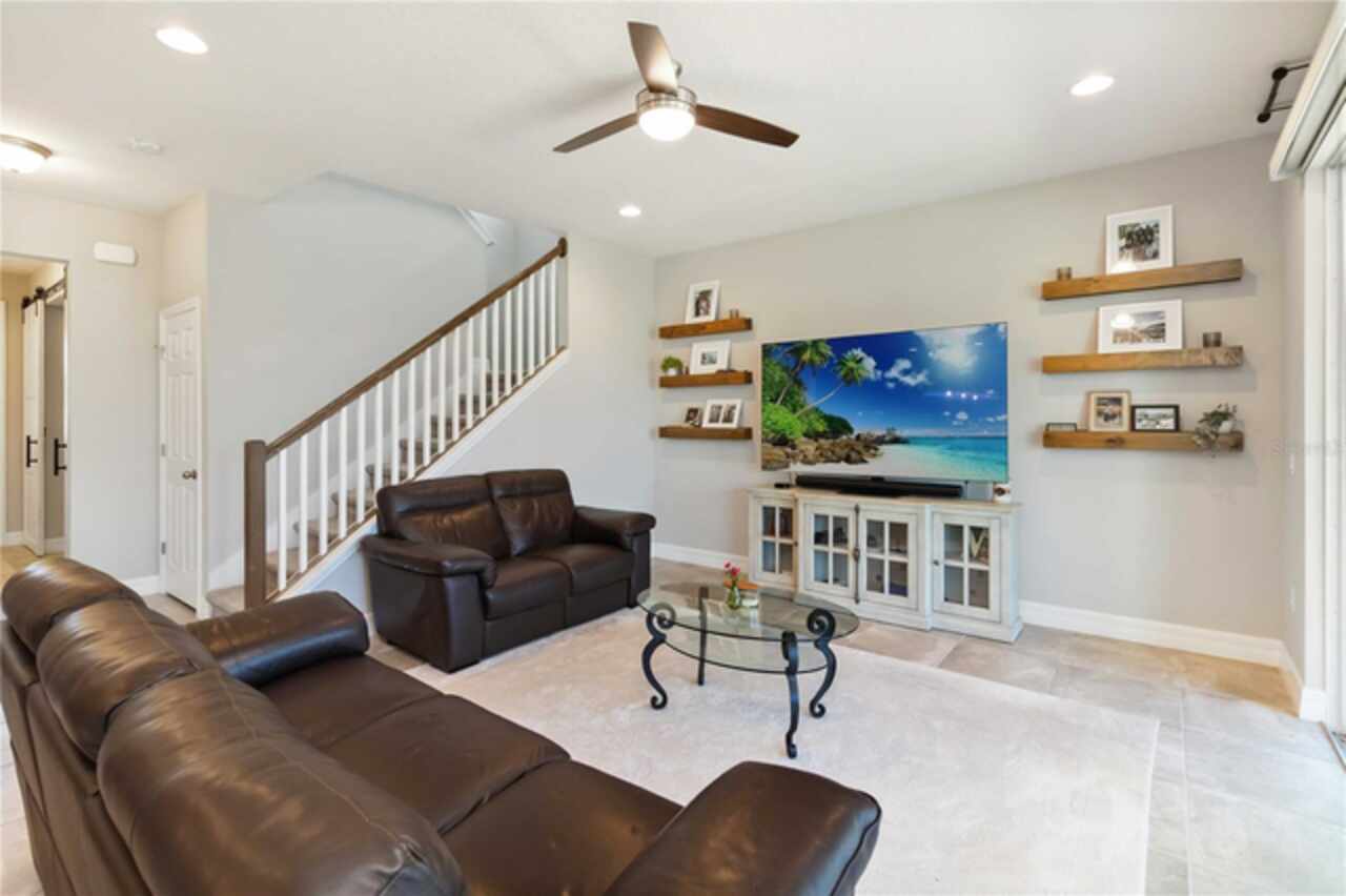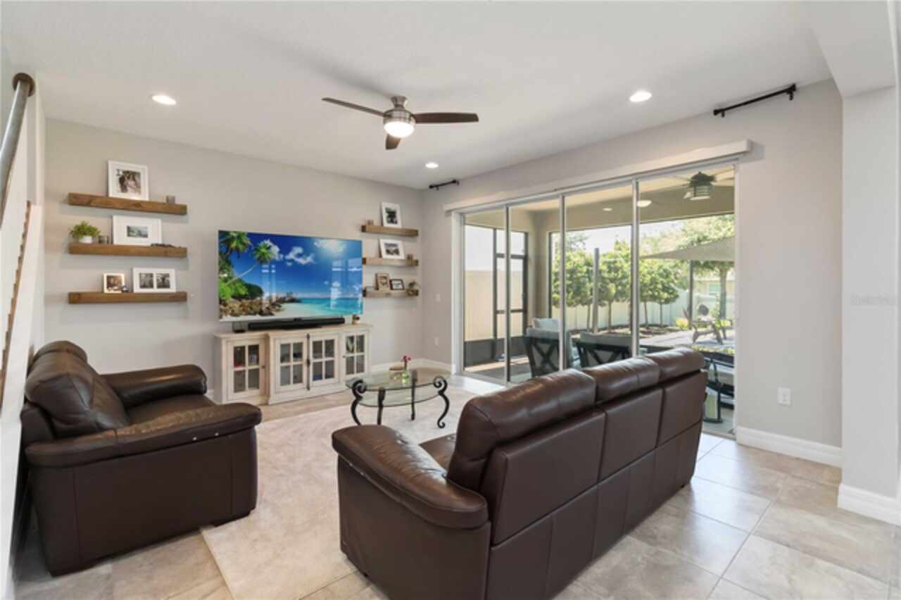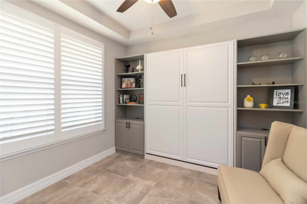 PERFECT PRICE IMPROVEMENT AND UP TO $8, 000.00 IN SELLER CONCESSIONS TO THE BUYERS!!!! WELCOME HOME! A perfect blend of modern comfort and craftsman charm awaits you in this upgraded Waterbrooke gem. Offering over 2, 400 sq. ft., this impeccably maintained transitional craftsman-style home boasts an open floor plan designed for today’s lifestyle. The inviting front porch opens to a bright foyer and a versatile flex room—perfect for a home office, gym, or playroom—complete with a built-in Murphy bed and custom barn doors. The expansive great room is filled with natural light and flows seamlessly into the gourmet kitchen, featuring a massive island, quartz countertops, farmhouse sink, and walk-in pantry, all with upgraded finishes. Plantation shutters and motorized blinds on the 4-panel sliding doors add both style and function. Step outside to the oversized screened lanai and beautifully designed backyard oasis with professional landscaping, hardscaping, lighting, and a paver patio with sun sail—perfect for outdoor entertaining. The yard is fully enclosed with low-maintenance vinyl fencing, providing privacy and peace of mind. Additional highlights on the first floor include a drop zone, and a built-in shelves near the garage entry. The garage also features a 220-volt charging outlet for electric vehicles, offering added convenience for eco-friendly living. Upstairs, a cheerful loft provides more flexible living space. The luxurious primary suite showcases a tray ceiling, spa-like bath with dual vanities, and a generous walk-in closet. Two additional bedrooms, each with custom shiplap feature walls, with great closet space and beautiful natural light. A convenient upstairs laundry room completes the layout. Residents of Waterbrooke enjoy resort-style amenities, including a lakeside pool, fitness center, dog park, walking trails, playground, and a gated entrance for added peace of mind. Conveniently located near top-rated schools, shopping, dining, hospitals, and major theme parks. This gem is a must-see schedule your showing today!