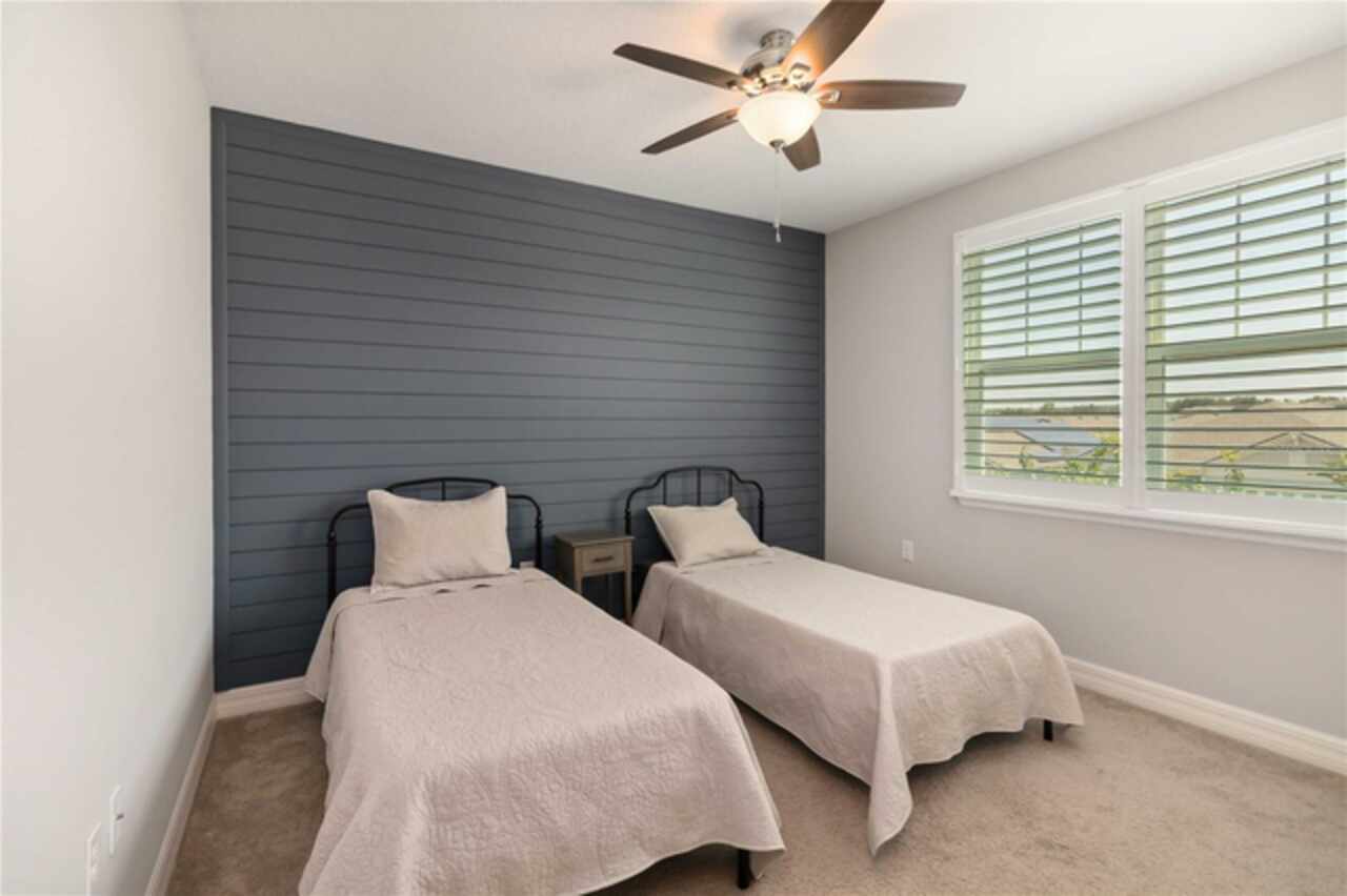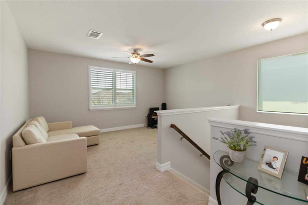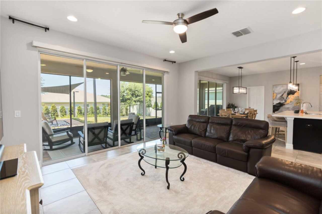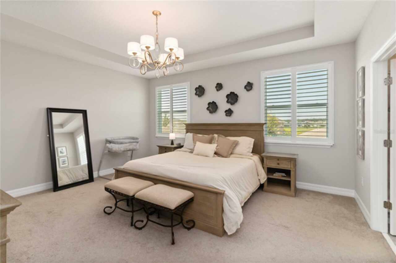 PERFECT PRICE IMPROVEMENT AND UP TO $8, 000.00 IN SELLER CONCESSIONS TO THE BUYERS!!!! WELCOME HOME! A perfect blend of modern comfort and craftsman charm awaits you in this upgraded Waterbrooke gem. Offering over 2, 400 sq. ft., this impeccably maintained transitional craftsman-style home boasts an open floor plan designed for today’s lifestyle. The inviting front porch opens to a bright foyer and a versatile flex room—perfect for a home office, gym, or playroom—complete with a built-in Murphy bed and custom barn doors. The expansive great room is filled with natural light and flows seamlessly into the gourmet kitchen, featuring a massive island, quartz countertops, farmhouse sink, and walk-in pantry, all with upgraded finishes. Plantation shutters and motorized blinds on the 4-panel sliding doors add both style and function. Step outside to the oversized screened lanai and beautifully designed backyard oasis with professional landscaping, hardscaping, lighting, and a paver patio with sun sail—perfect for outdoor entertaining. The yard is fully enclosed with low-maintenance vinyl fencing, providing privacy and peace of mind. Additional highlights on the first floor include a drop zone, and a built-in shelves near the garage entry. The garage also features a 220-volt charging outlet for electric vehicles, offering added convenience for eco-friendly living. Upstairs, a cheerful loft provides more flexible living space. The luxurious primary suite showcases a tray ceiling, spa-like bath with dual vanities, and a generous walk-in closet. Two additional bedrooms, each with custom shiplap feature walls, with great closet space and beautiful natural light. A convenient upstairs laundry room completes the layout. Residents of Waterbrooke enjoy resort-style amenities, including a lakeside pool, fitness center, dog park, walking trails, playground, and a gated entrance for added peace of mind. Conveniently located near top-rated schools, shopping, dining, hospitals, and major theme parks. This gem is a must-see schedule your showing today!
