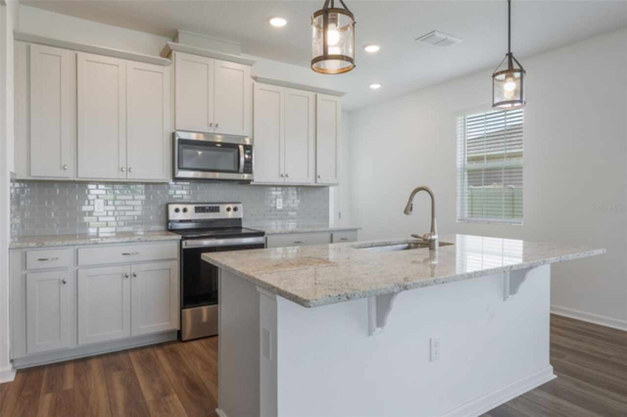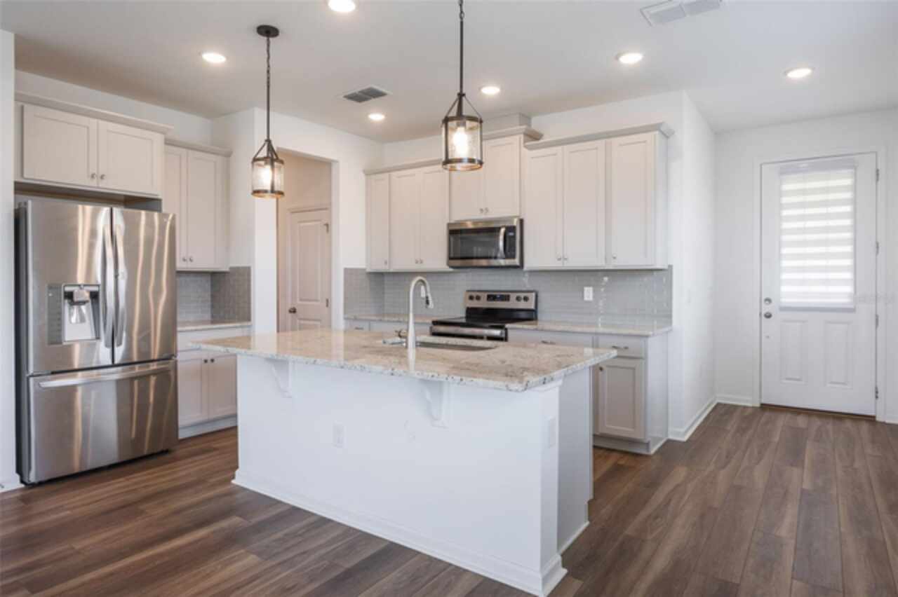 BRING YOUR BEST PRICE! SELLER MOTIVATED. Welcome to your new forever home! This beautifully designed 3-bedroom, 3-bathroom end-unit villa offers 1, 851 sq ft of stylish living in the heart of Clermont. A spacious driveway and manicured lawn with a charming covered front porch set the tone for the warm welcome waiting inside. Step into an open-concept layout where the living room, dining room, and kitchen seamlessly connect—flooded with natural light and finished with sleek, modern touches. The kitchen is a chef’s dream, boasting a large island with breakfast bar, stainless steel appliances, crown-molded cabinetry, and a stunning tile backsplash, perfect for everything from casual meals to entertaining. The first-floor primary suite is a true retreat with a generous walk-in closet and en suite bathroom featuring a dual sink vanity and oversized walk-in shower. A second bedroom and full bath downstairs provides flexible space for guests, little ones, or multi-generational living. Upstairs, a versatile loft provides endless possibilities as a home office, media room, or play space, along with an additional private bedroom and full bathroom—ideal for older little ones, guests, or a quiet work-from-home setup. Step out back to enjoy serene pond views and a spacious, well-kept backyard. Sip your morning coffee from the covered patio or unwind after a long day in the warm Florida weather. You can have an extra sense of peace of mind knowing this home has truly been cared for and is in pristine condition! Enjoy the tranquil community, with perks such as a resort-style pool, splash pad, fitness center, and clubhouse, adding fun and function just steps from your door! With close proximity to top-rated schools, scenic parks, beautiful lakes, and just 25 minutes to Disney World and Universal Studios, this home has everything you need to live your best Florida lifestyle. Don’t miss your chance to own this amazing home, schedule a private showing TODAY!!!