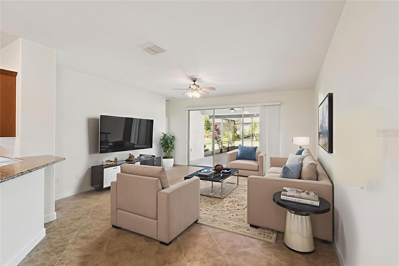 One or more photo(s) has been virtually staged. Sought after 55 plus community of Heritage Hills featuring this popular Kennedy II model! Back on the market! Buyer fell through. NEW PRICE! This home sits on a 1/4 acre corner lot! With 4 bedrooms and 3 full baths you will love this floor plan. The spacious kitchen features a center island, breakfast bar, breakfast nook, walk in pantry, granite counter tops and tons of cabinets space. The laundry room is conveniently located off the kitchen and the washer and dryer stay. The formal dining room and family room are open to the kitchen creating a spacious open floor plan perfect for entertaining! Primary bedroom suite has an oversized walk in closet, large tiled walk in shower, garden tub, dual sink counter top and linen closet. All tile flooring throughout the home! NEW ROOF in 2024! Wait until you see the extended screened lanai with NEW screens and NEW door! This is the perfect place to relax and enjoy the outdoors! Front entry screen door is NEW, all tile cleaned and sealed, exterior painted in 2025, interior freshly painted, and more. You will enjoy this quiet neighborhood! Heritage Hills amenities include a heated pool and spa, pickle ball, tennis, basketball, bocce ball, shuffleboard, clubhouse with planned activities, lots of clubs to join, fitness center, art and crafts room, billiard room, card room and ballroom for holding events. Exterior is painted every 6 years and yard maintenance is included in the HOA fee! There is a 5 mile walking trail around the community. Call today for your private showing!
