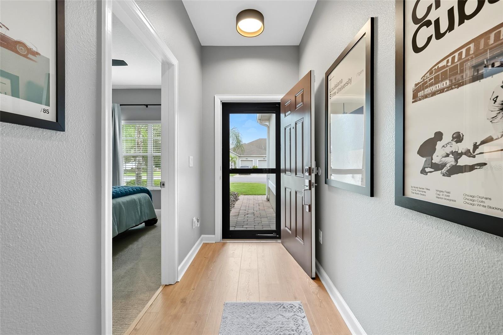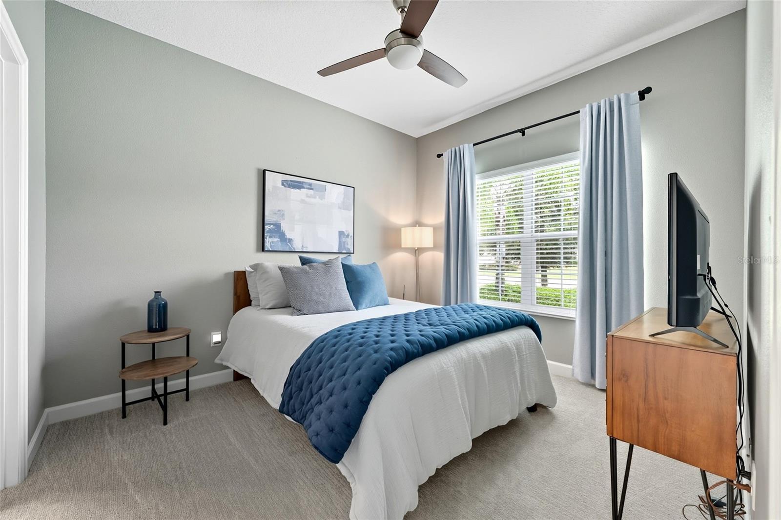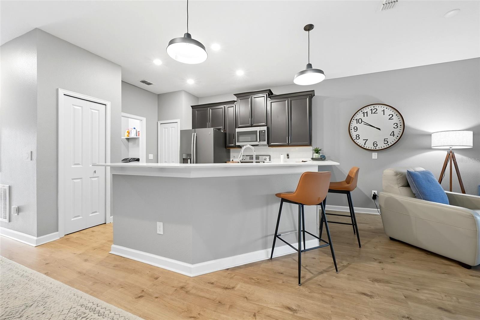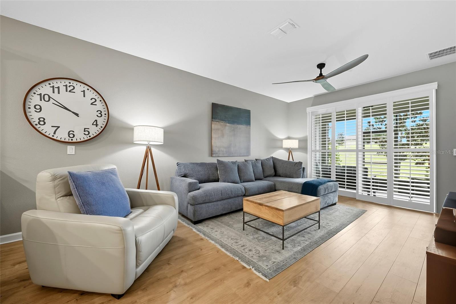 Nestled within the vibrant 55+ gated community of Heritage Hills in Clermont, this delightful St. Lucia Villa offers approximately 1374 square feet of thoughtfully designed living space. Constructed in 2018, the home features 2 bedroom, 2 bathrooms and a versatile flex room- an ideal space for an office or a private retreat, Step into a bright and efficient kitchen with stainless steel/GE appliances, quartz countertops and ample cabinetry for modern convenience. The open floor plan flows seamlessly into a screened lanai, where you can savor peaceful mornings under the warm Florida sun. Brand new flooring graces the newly painted home, while cozy new carpeted bedrooms and smart home features enhance comfort and functionality. Additional garage storage, pantry space and plantation shutters add polished touches throughout including new light fixtures and fans in all bedrooms and lanai. Beyond the doorstep, enjoy and array of resort caliber amenities; a pool and spa, courts for tennis, shuffleboard, bocce, horseshoes, a fitness center, arts and crafts studio, billiards, card room, ballroom and walking trails. With a convenience of lawn care, an on-site concierge and secure gated access, this home embodies active, maintenance-free living in a serene setting.