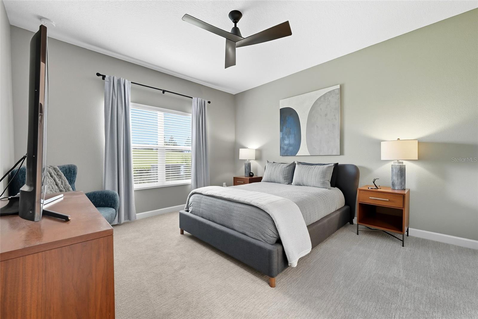 Ceiling Fans(s), Kitchen/Family Room Combo, Open Floorplan, Primary Bedroom Main Floor, Solid Surface Counters, Stone Counters, Walk-In Closet(s), Window Treatments