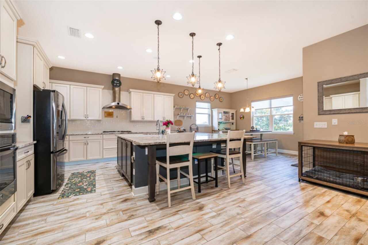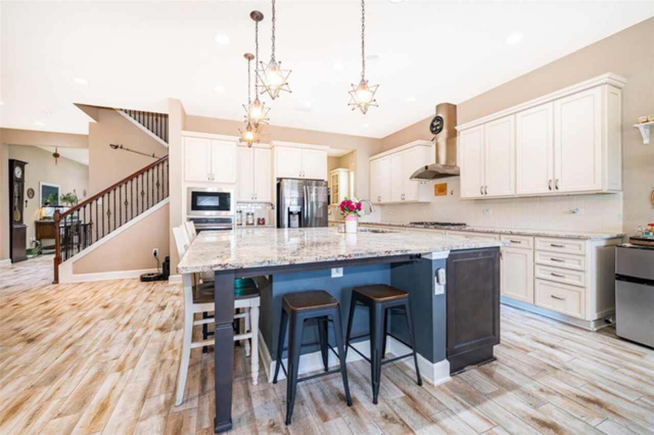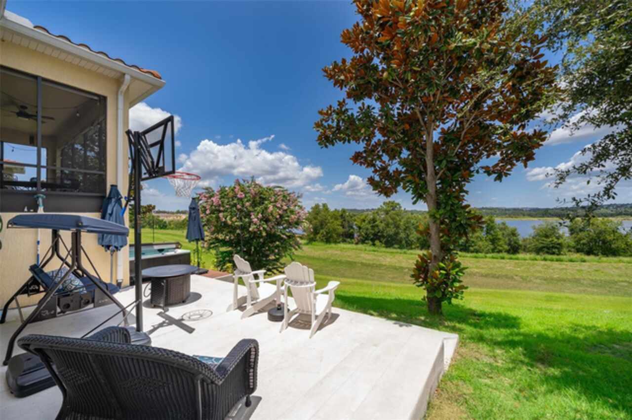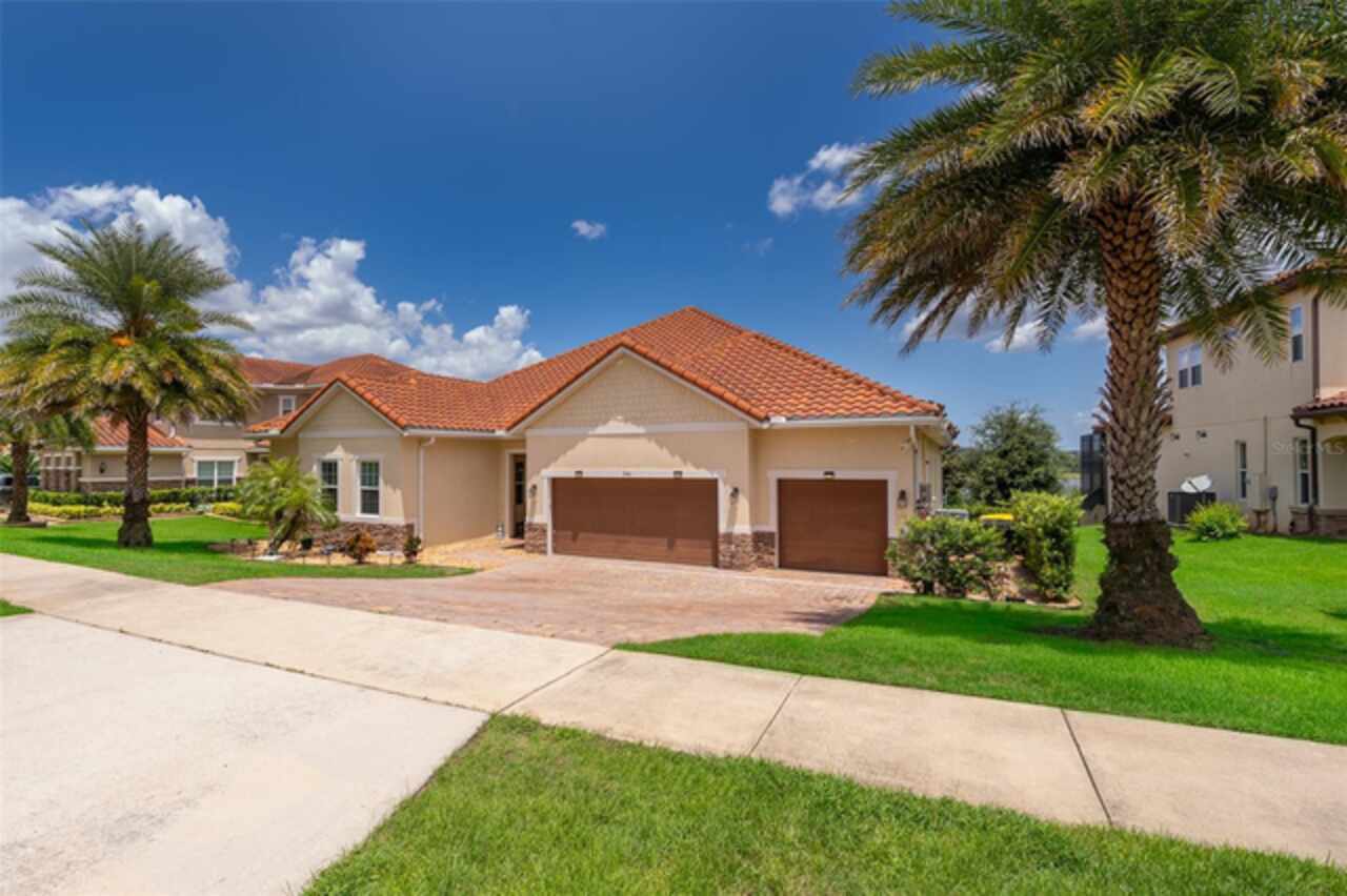Welcome to Lakeside Luxury Living! This stunning lake-view home in Bella Lago offers nearly 4, 000 square feet of elegant living space, featuring 4-bedrooms, 3.5-bathrooms, a 3-car garage, and a host of high-end upgrades. From the tile roof to the Tuscan-style paved driveway, every detail of this property is thoughtfully designed for style and comfort. Step through the grand entrance into a bright and spacious foyer. To the left, double doors open into a formal dining room—perfect for hosting dinner parties. Continue into the open concept living area, where you'll find an elegant kitchen with tall cabinetry, granite countertops, and a large center island ideal for both casual dining and entertaining. A butler's pantry connects the kitchen to the dining room for added convenience. Just off the kitchen, a charming dinette area leads through French doors to the screened-in lanai—your personal outdoor retreat. Enjoy al fresco dining with breathtaking views of Lake Felter. The primary suite offers a private sanctuary with his-and-her walk-in closets and a spa-like en suite bath. The Jack-and-Jill suite at the front of the home is perfect for privacy. Upstairs, a massive bonus room loft with a full bath and wet bar plumbing provides the perfect flex space for a game room, home theater, or guest suite. Additional features include: Ceramic tile floors throughout main living areas, Wrought iron staircase, Spacious laundry room, Plumbed for gas grill, 3-car garage and above ground hot tub that seats 6. Community amenities include a private playground, lakefront gazebo, and dock access to Lake Felter. Just minutes away, residents can indulge in excellent shopping opportunities, dine at a variety of luxury and casual eateries, and explore nearby theme parks for entertainment. The neighborhood benefits from proximity to brand-new, state-of-the-art hospitals and a top notch school system, providing peace of mind for residents seeking quality healthcare services and high end education. Whether it's shopping, dining or entertainment this vibrant community offers an abundance of options to suit every lifestyle. Don't miss the chance to own this beautifully styled home with serene lake views—schedule your private showing today!