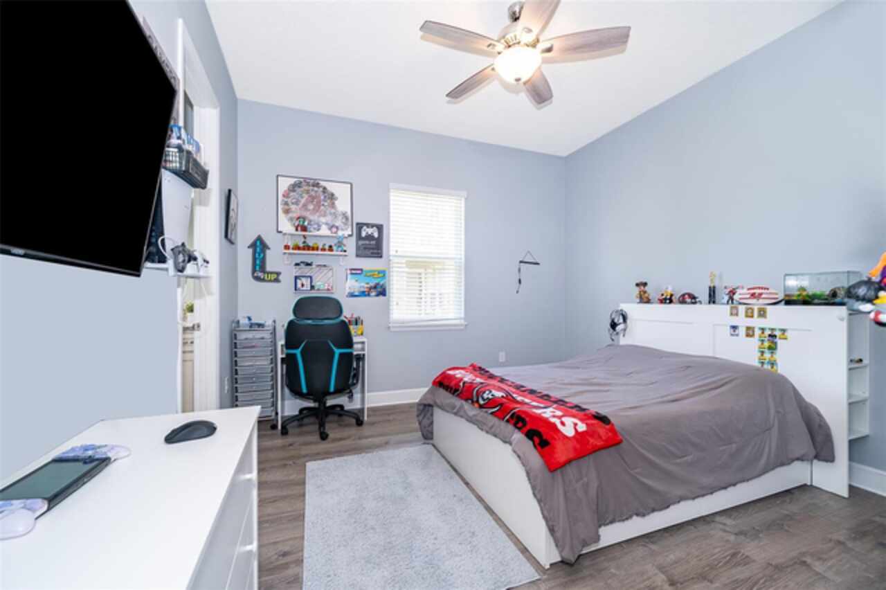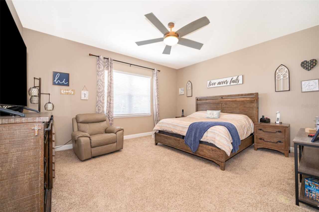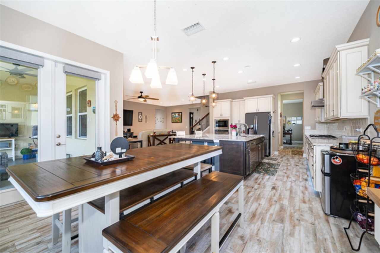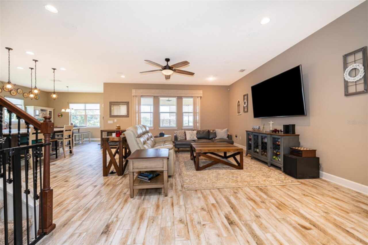 Welcome to Lakeside Luxury Living! This stunning lake-view home in Bella Lago offers nearly 4, 000 square feet of elegant living space, featuring 4-bedrooms, 3.5-bathrooms, a 3-car garage, and a host of high-end upgrades. From the tile roof to the Tuscan-style paved driveway, every detail of this property is thoughtfully designed for style and comfort. Step through the grand entrance into a bright and spacious foyer. To the left, double doors open into a formal dining room—perfect for hosting dinner parties. Continue into the open concept living area, where you'll find an elegant kitchen with tall cabinetry, granite countertops, and a large center island ideal for both casual dining and entertaining. A butler's pantry connects the kitchen to the dining room for added convenience. Just off the kitchen, a charming dinette area leads through French doors to the screened-in lanai—your personal outdoor retreat. Enjoy al fresco dining with breathtaking views of Lake Felter. The primary suite offers a private sanctuary with his-and-her walk-in closets and a spa-like en suite bath. The Jack-and-Jill suite at the front of the home is perfect for privacy. Upstairs, a massive bonus room loft with a full bath and wet bar plumbing provides the perfect flex space for a game room, home theater, or guest suite. Additional features include: Ceramic tile floors throughout main living areas, Wrought iron staircase, Spacious laundry room, Plumbed for gas grill, 3-car garage and above ground hot tub that seats 6. Community amenities include a private playground, lakefront gazebo, and dock access to Lake Felter. Just minutes away, residents can indulge in excellent shopping opportunities, dine at a variety of luxury and casual eateries, and explore nearby theme parks for entertainment. The neighborhood benefits from proximity to brand-new, state-of-the-art hospitals and a top notch school system, providing peace of mind for residents seeking quality healthcare services and high end education. Whether it's shopping, dining or entertainment this vibrant community offers an abundance of options to suit every lifestyle. Don't miss the chance to own this beautifully styled home with serene lake views—schedule your private showing today!