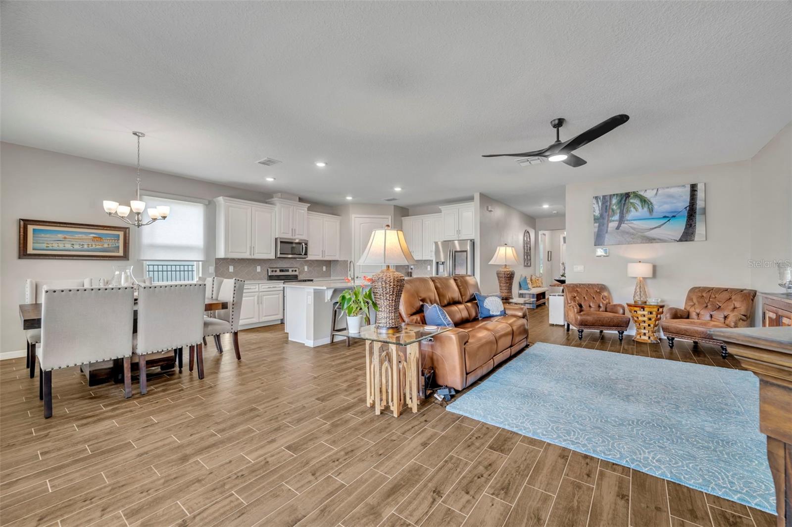 Accessibility Features, Ceiling Fans(s), Dry Bar, Eat-in Kitchen, High Ceilings, Kitchen/Family Room Combo, Living Room/Dining Room Combo, Open Floorplan, Primary Bedroom Main Floor, Smart Home, Solid Wood Cabinets, Stone Counters, Thermostat, Walk-In Closet(s), Window Treatments