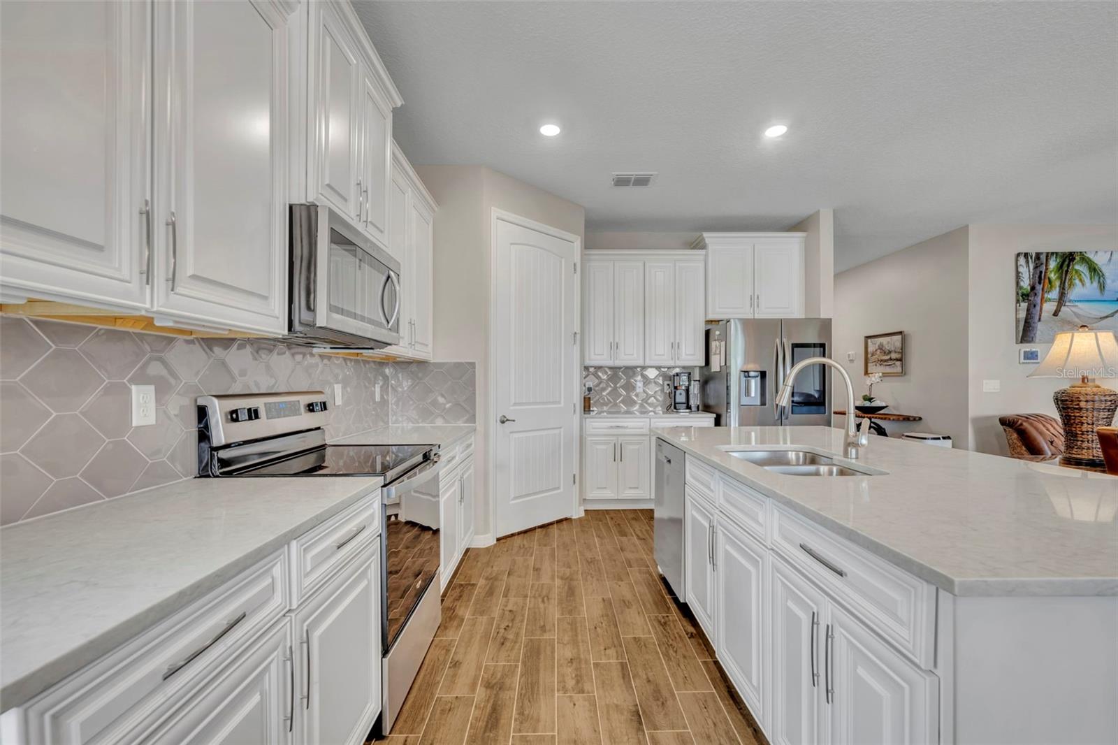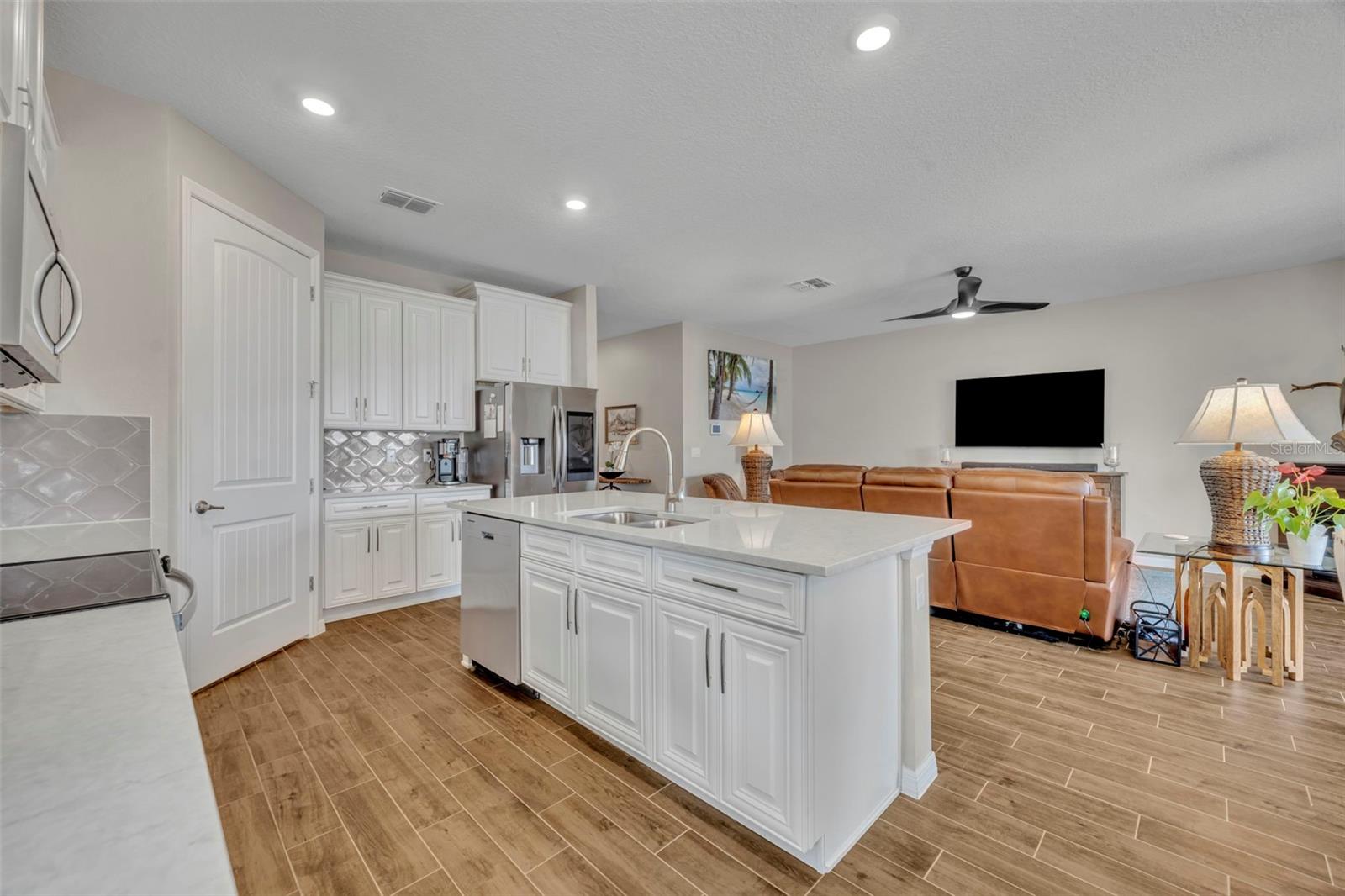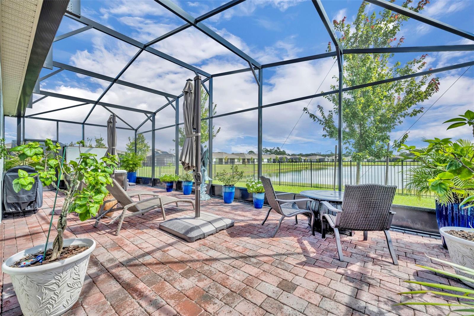Located in the gated, golf cart friendly 55+ community of The Palms at Serenoa in Clermont, Florida! This exceptional 4-bedroom, 2-bathroom home was built in 2023 sits on a standout waterfront premier lot overlooking a peaceful pond and fountain. Designed for elegance and ease with an open floor plan for comfort and privacy. The home has been thoughtfully updated with the following features: -620 sq ft screened, extended paver lanai for outdoor living & entertaining while watching Disney fireworks- A grand kitchen island with quartz countertops, custom pantry shelving & thoughtful storage - A spacious laundry area with collapsible laundry drying system - Black aluminum fencing to secure the backyard without blocking your view - Security cameras for your safety in mind - Garage with epoxy floor, attic ventilation via solar, retractable attic stairs, and plywood sheeting for extra storage - Generator hook-up directly to the main panel - Whole-house surge protection - Extended paver driveway - So many additional upgrades by the seller (ask for the full list when you tour) The community has much to provide to entertain the social and active residents: Resort-style heated pool (including zero-entry & lap features) community patio with gas firepit area. Walking trails and 16+ acres of natural/open space. Courts & lawn areas for pickleball, bocce ball, and other active pursuits. Two dog parks & dog-friendly walking paths. Clubhouse with fitness center and activity rooms Pickleball and bocce ball courts Walking trails, open green space, and dog parks The community is close to shopping, dining, Lake Louisa State Park, and Downtown Clermont, with convenient access to Orlando attractions. The home is 17 miles from Disney World, 18 miles from Universal, 15 miles from Epcot and 28 mins from MCO Airport!