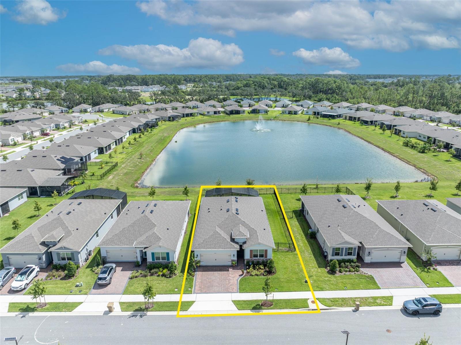 The home is located on a prime waterfront lot towards the center of the pond w/ beautiful fountain view.