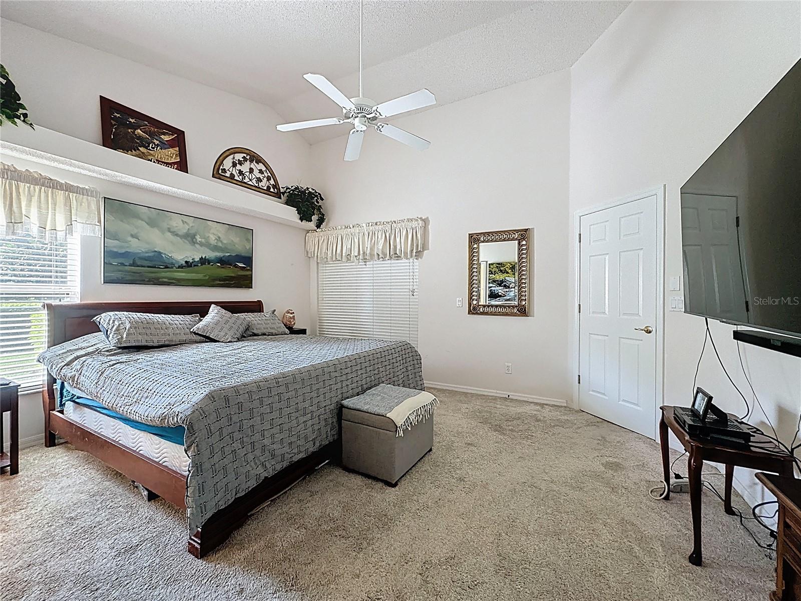 Cathedral Ceiling(s), Ceiling Fans(s), Eat-in Kitchen, Kitchen/Family Room Combo, Living Room/Dining Room Combo, Open Floorplan, Primary Bedroom Main Floor, Thermostat, Walk-In Closet(s), Window Treatments