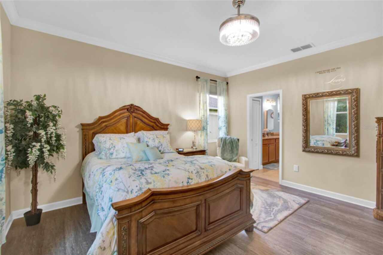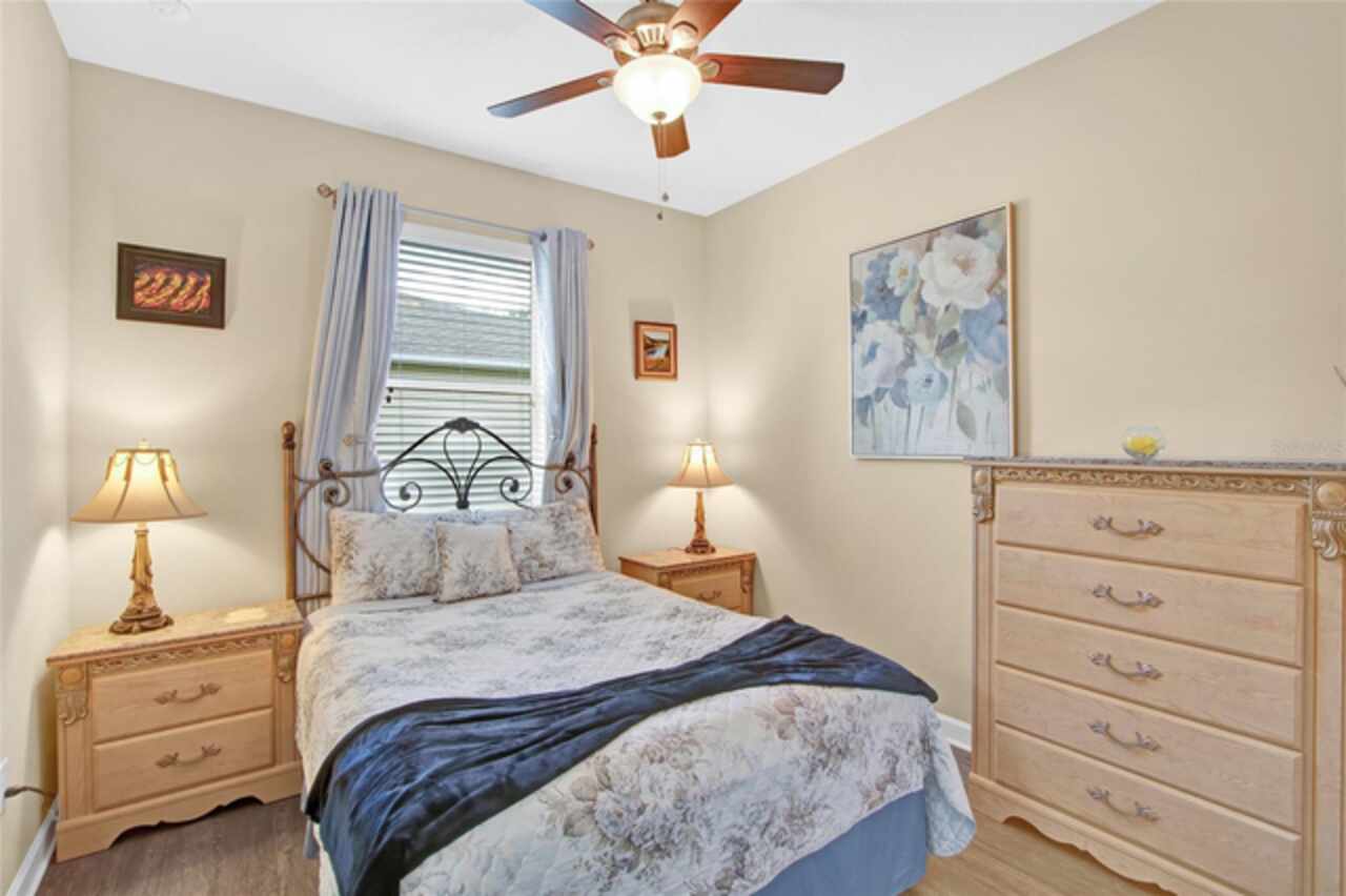 Welcome to 3604 Corsica Ln, Clermont, FL This stunning 3-bedroom, 3-bathroom home, nestled on a prime corner lot in the vibrant Heritage Hills 55+ community, offers luxury and low-maintenance living. Freshly painted and impeccably maintained, the Hamilton floor plan features an open-concept design with ceramic tile and luxury vinyl plank flooring throughout. The guest bedroom includes an ensuite bathroom, perfect for visitors, while a dedicated study/den offers versatile space for work or relaxation. The Primary Bedroom is a serene retreat with two large walk-in closets and a spa-like bathroom with a soaking tub, separate shower, and dual sinks. Upgrades like pull-out kitchen shelves, crown molding in the Great Room, and a crystal-accented fandelier add elegance. The 20x19 screened lanai with paver stones is ideal for morning coffee or evening gatherings, and all window treatments are included for a seamless move-in. The HOA covers lawn care, annual garden mulching, and exterior painting every 5-6 years, freeing you to enjoy Heritage Hills’ resort-style amenities. Heritage Hills Community Heritage Hills, a gated 55+ community in Clermont, developed by Lennar, blends Mediterranean-inspired architecture with a Tuscan-like ambiance across 1, 154 homes. Set amid rolling hills and wooded preserves, it’s designed for active adults seeking a vibrant lifestyle. Clubhouse Amenities: The 19, 000-sq.-ft. clubhouse features a 500-seat ballroom, 24-hour fitness center, aerobics studio, billiards room, card rooms, library, and arts and crafts studio with a kiln. Outdoor Recreation: Enjoy a heated pool and spa, lighted tennis and pickleball courts, basketball, bocce, shuffleboard, a putting green, and a 5-mile walking/biking trail, plus a half-mile fitness trail. Unique offerings include a golf simulation room, and a dog park. Social Scene: An activities director organizes clubs like Latin dance, pickleball, poker, and water aerobics, fostering a lively community where residents can create or join groups. Location and Lifestyle Located off Hancock Road, Heritage Hills offers easy access to U.S. Route 27 and the Florida Turnpike, with Disney World, Universal Studios, and downtown Orlando 30-45 minutes away. Nearby, explore Lake Louisa State Park, Lakeridge Winery, or downtown Clermont’s farmers’ market and dining. The back gate provides a quick route to Winter Garden’s shops and restaurants. Residents love the well-maintained grounds, friendly neighbors, and walkable environment. At 3604 Corsica Ln, you’ll enjoy modern upgrades, a spacious lanai, and a low-maintenance lifestyle in a community packed with amenities. Perfect for active adults, this home offers proximity to Central Florida’s attractions and Clermont’s charm.