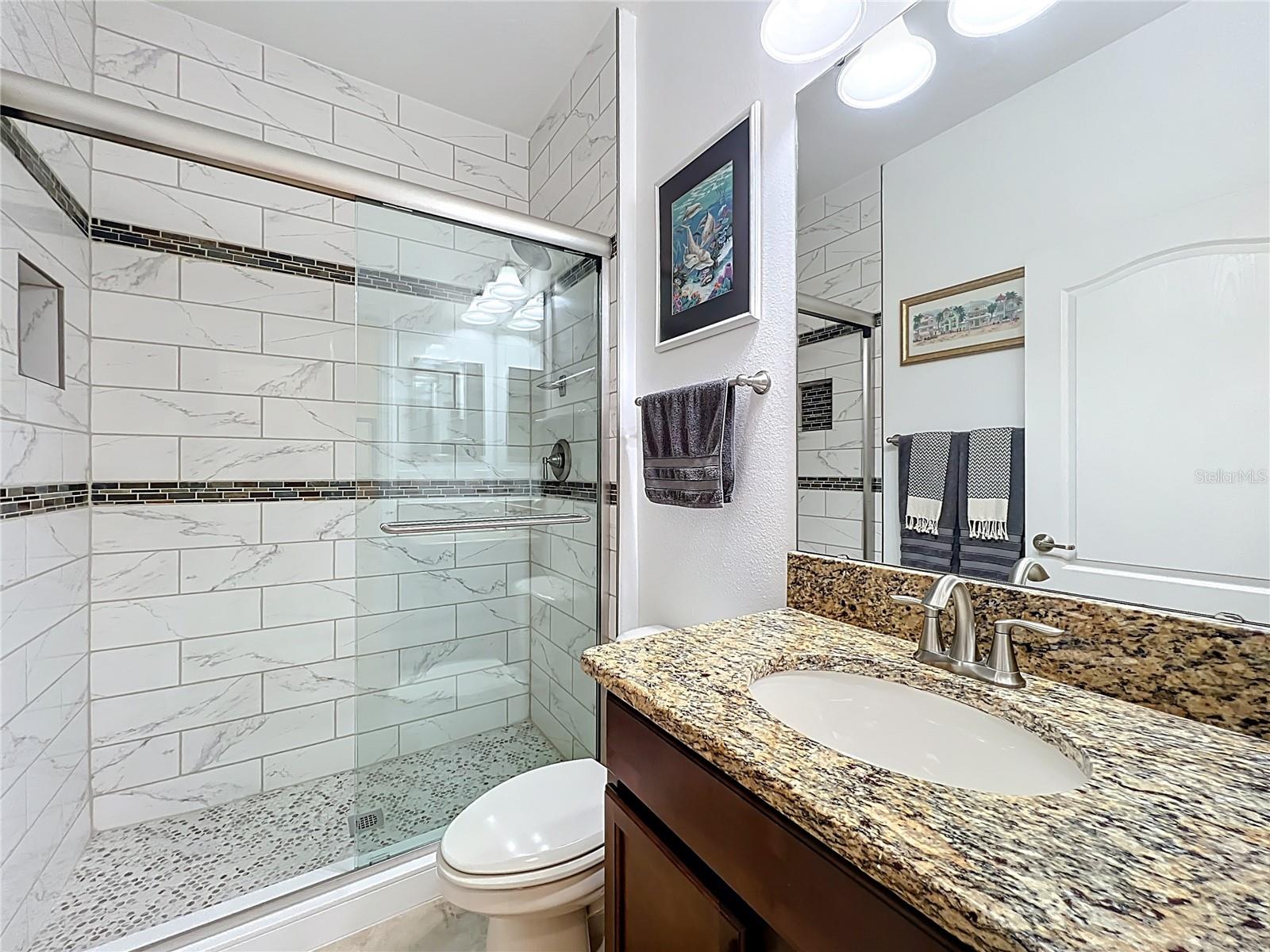 Located in the sought-after Heritage Hills 55+ gated community in beautiful Clermont! This popular Bonita model offers 3 bedrooms, 2 baths, and a bright open layout with one bedroom ideal as a home office or flex space. The kitchen features granite countertops, stainless steel appliances, tile backsplash, and a sunny breakfast nook. The spacious living area boasts a tray ceiling and opens through sliding doors to a 31x14 screened lanai with tile flooring, perfect for relaxing or entertaining. The primary suite offers two walk-in closets, a sitting area, and lanai access, plus an ensuite bath with garden tub, walk-in shower, and dual vanities. Additional highlights include a screened front entry, landscape curbing, and well-kept landscaping for great curb appeal. Heritage Hills residents enjoy resort-style amenities: heated pool and spa, tennis, pickleball, bocce, shuffleboard, fitness center, clubhouse, walking trails, and a calendar full of social events. A perfect blend of comfort, style, and active adult living in one of Clermont’s most desirable communities!